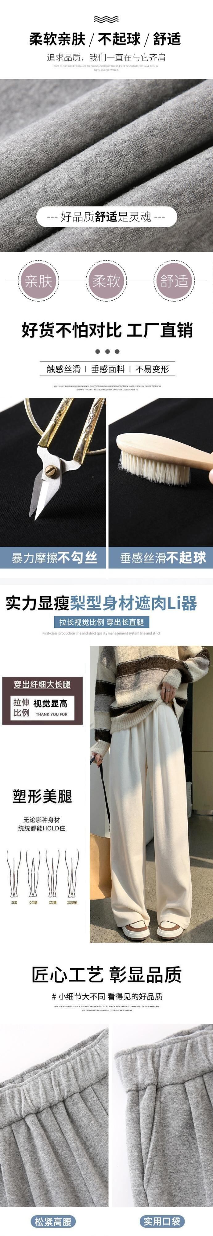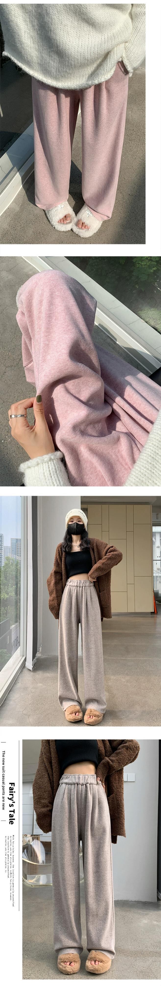 グレーベルベット肥厚ソフトもち米パンツ女性の秋と冬の狭いもち米パンツカジュアルストレートハイウエストドレープワイドレッグパンツ ハイウェスト オータム 秋物 ウィンター 冬物 ワイドパンツ 7460050308864250 | framboise21