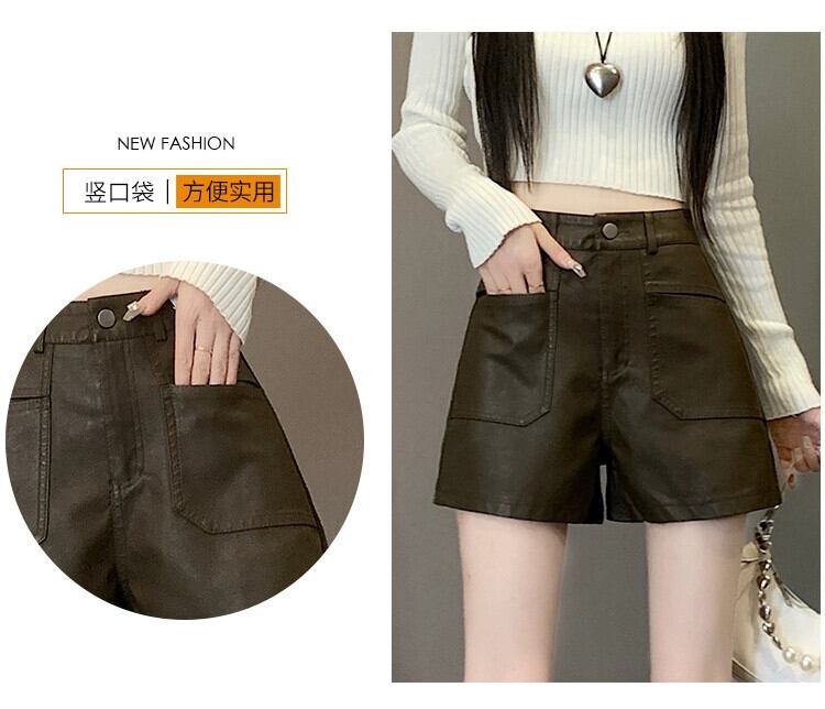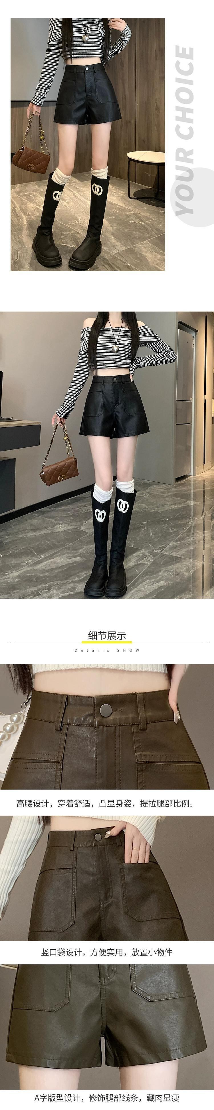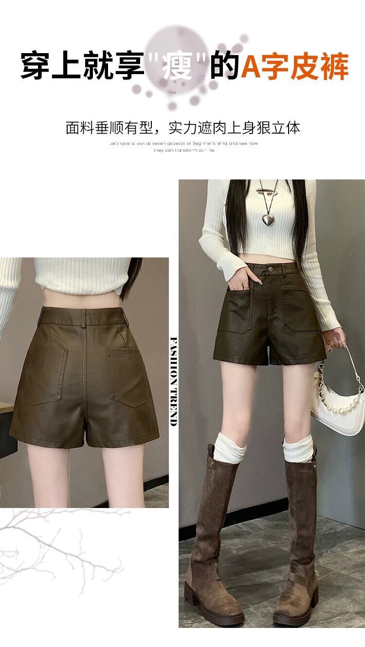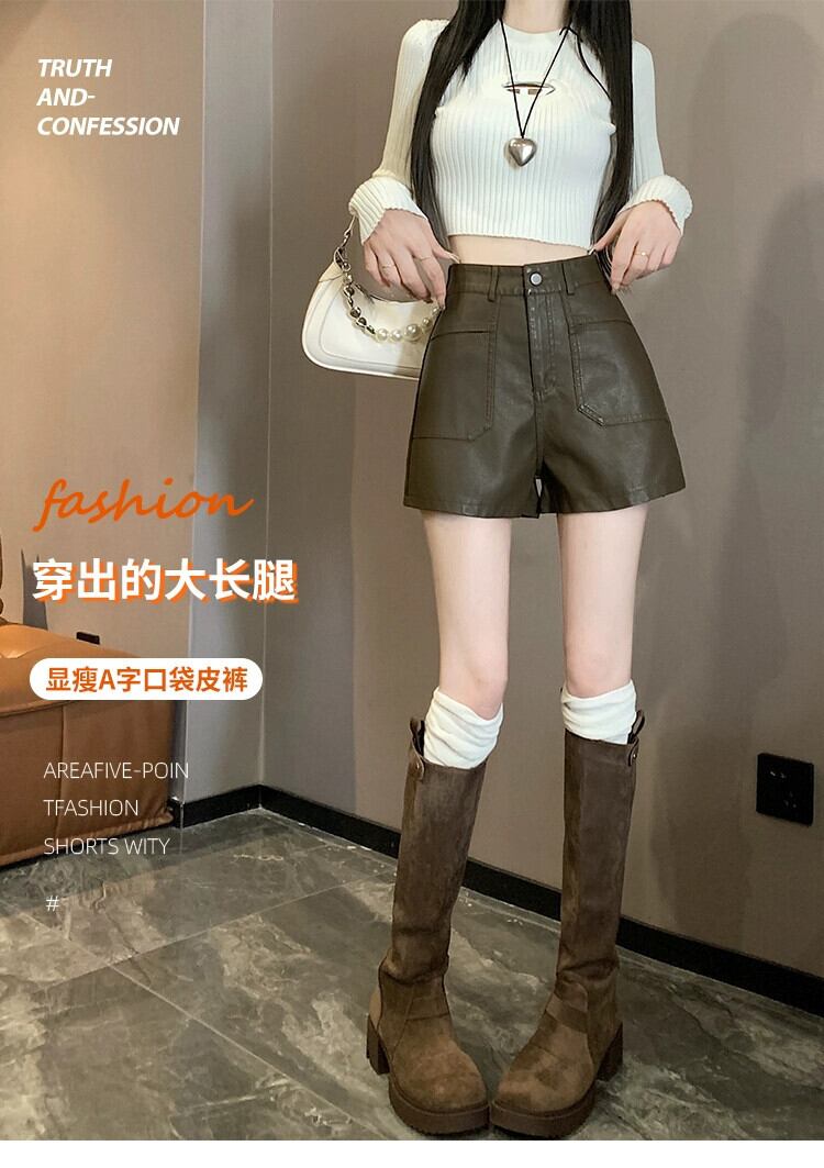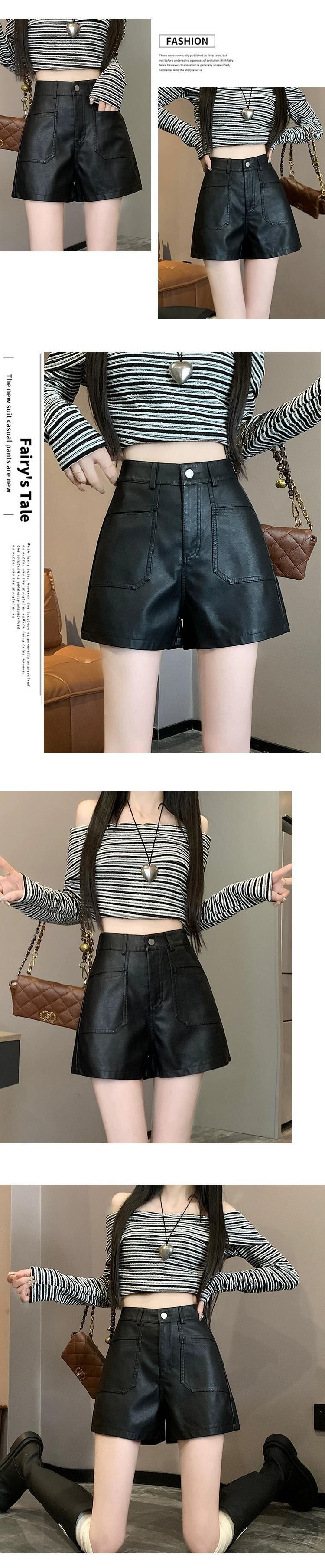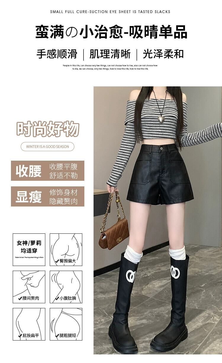 -ウエスト PU レザー パンツ ショートパンツ レディース 秋冬 2023 新しいハイエンド アウター A ライン ワイドレッグ ブーツ パンツ カジュアル パンツ ブラック オータム 秋物 ウィンター 冬物 ショーツ ブルマー Aライン 7460041342288973 | framboise21