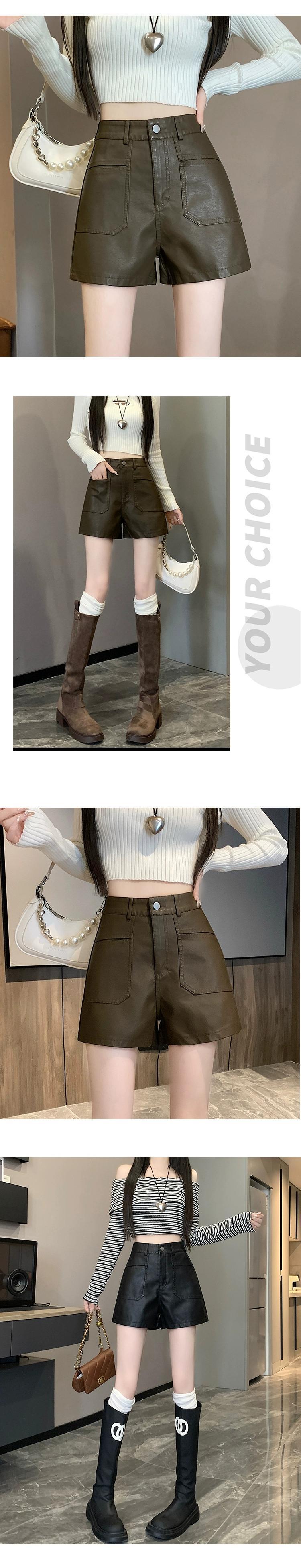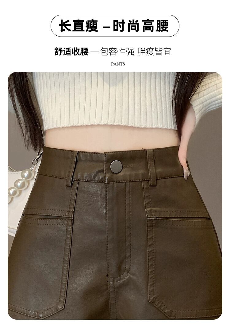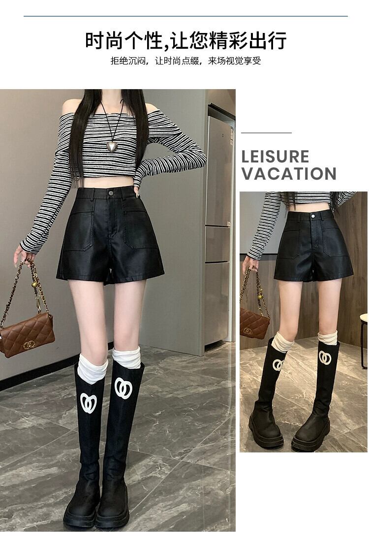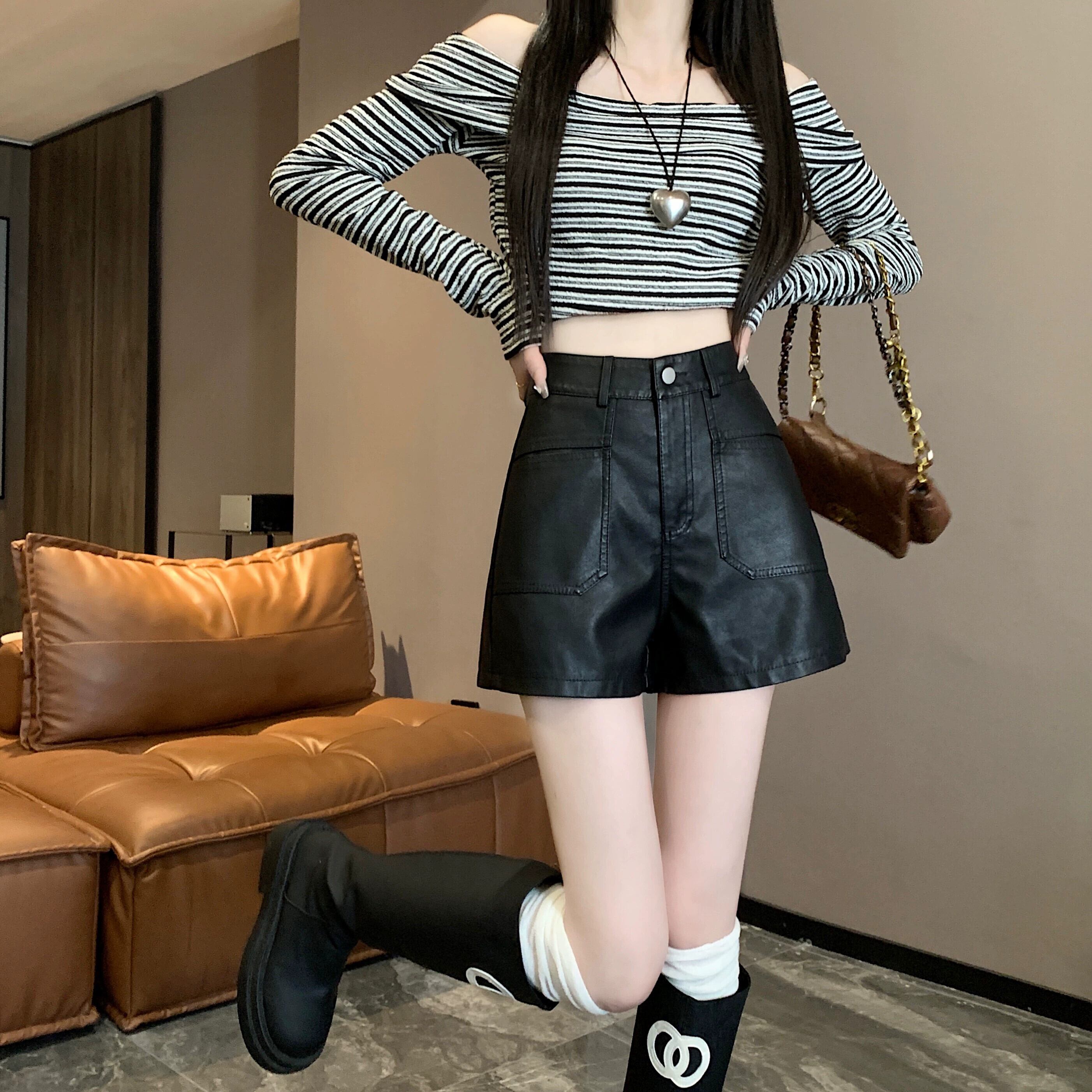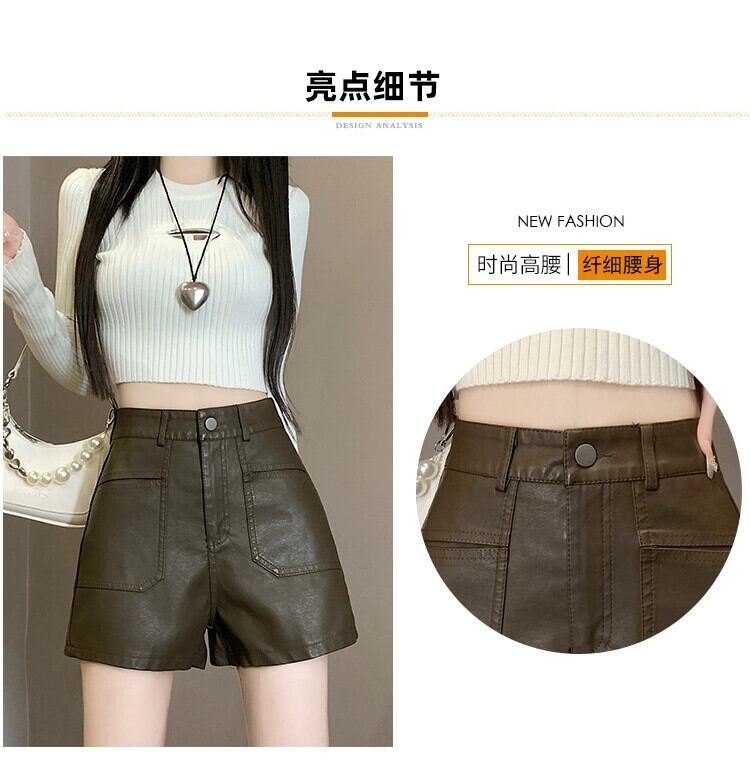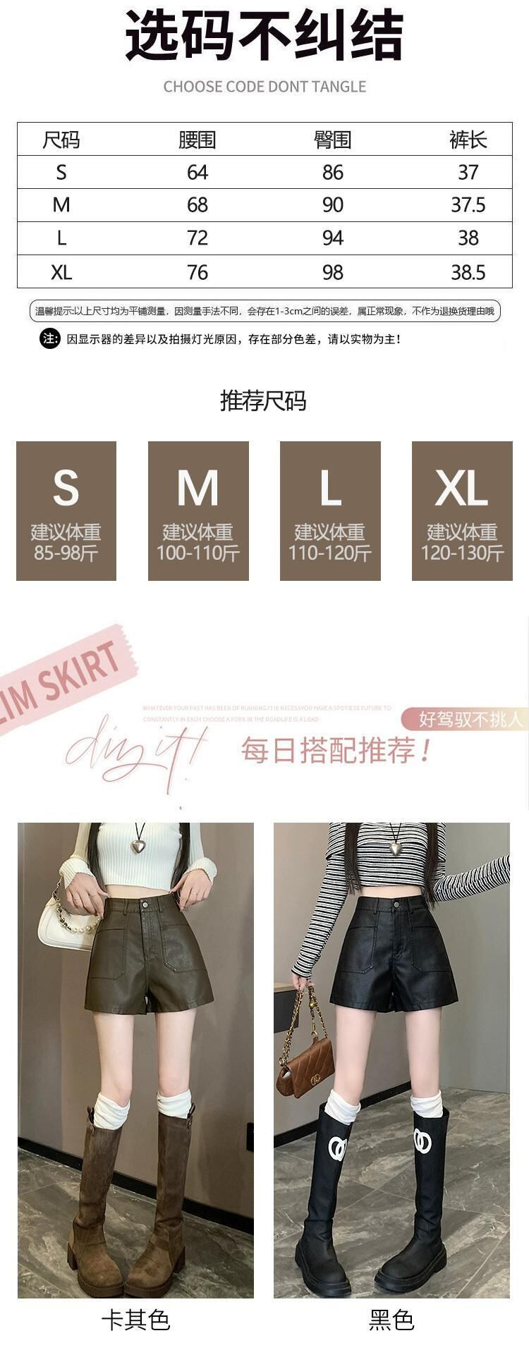 -ウエスト PU レザー パンツ ショートパンツ レディース 秋冬 2023 新しいハイエンド アウター A ライン ワイドレッグ ブーツ パンツ カジュアル パンツ ブラック オータム 秋物 ウィンター 冬物 ショーツ ブルマー Aライン 7460041342288973 | framboise21