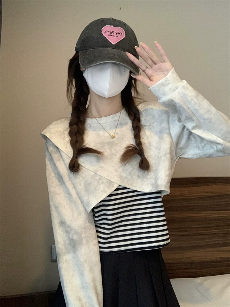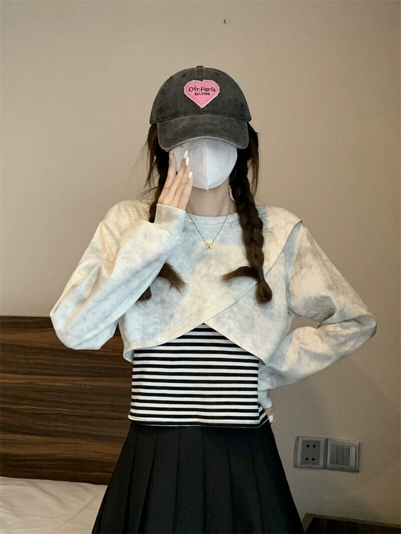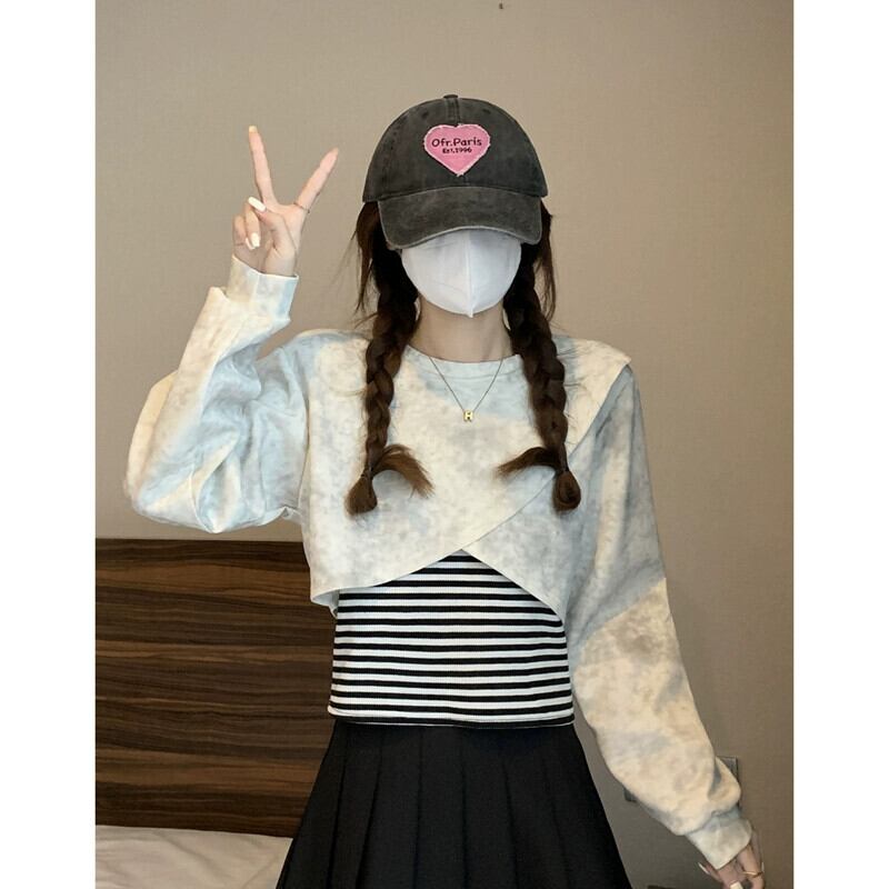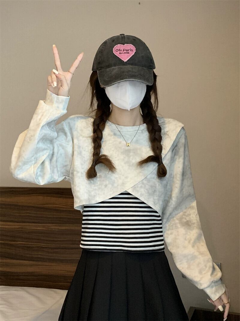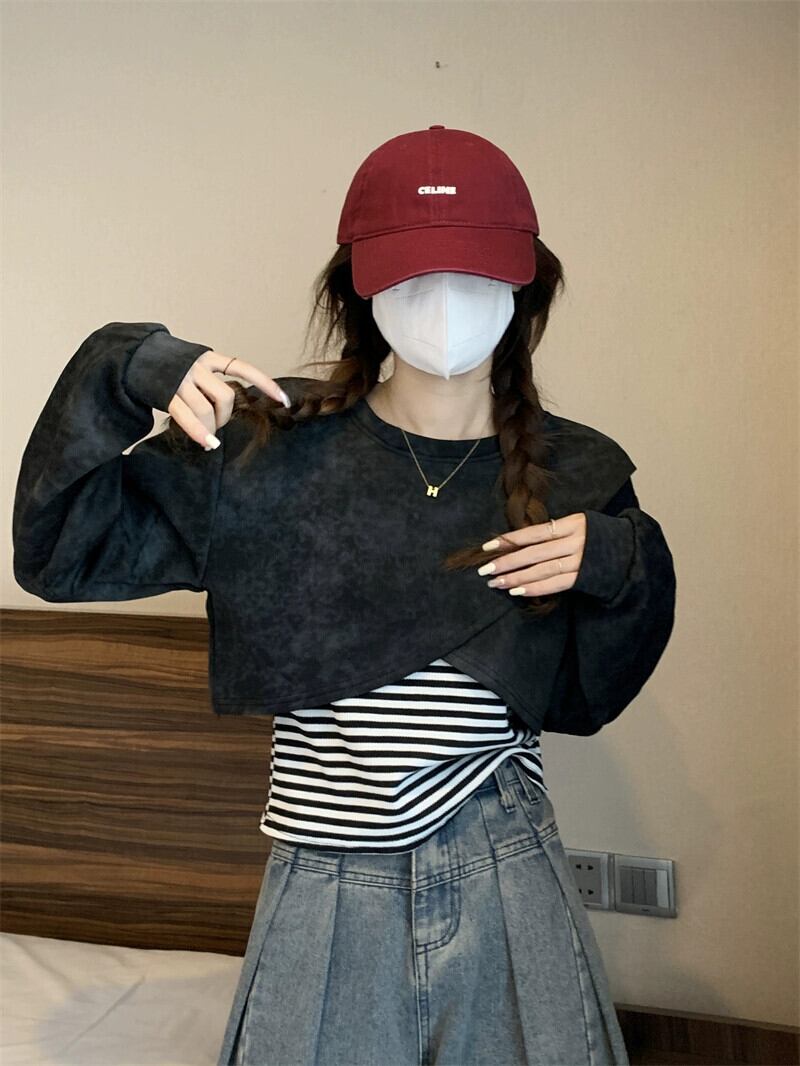 秋冬の不規則なショートスウェットシャツの女性。ゆったりとスリムに。万能なクロスプルオーバーの長袖トップス2点セット。 ロング オータム 秋物 ウィンター 冬物 7460011277548098 | framboise21