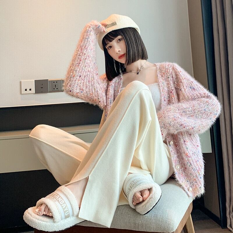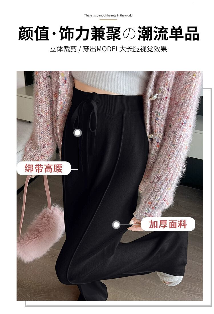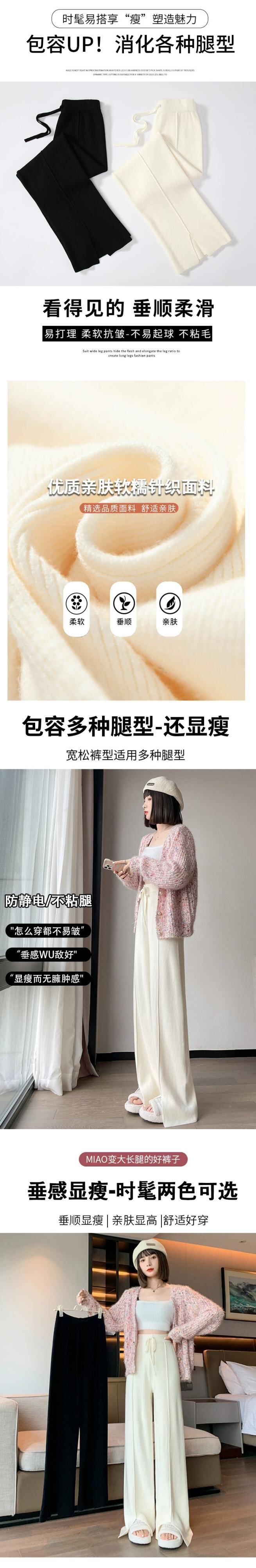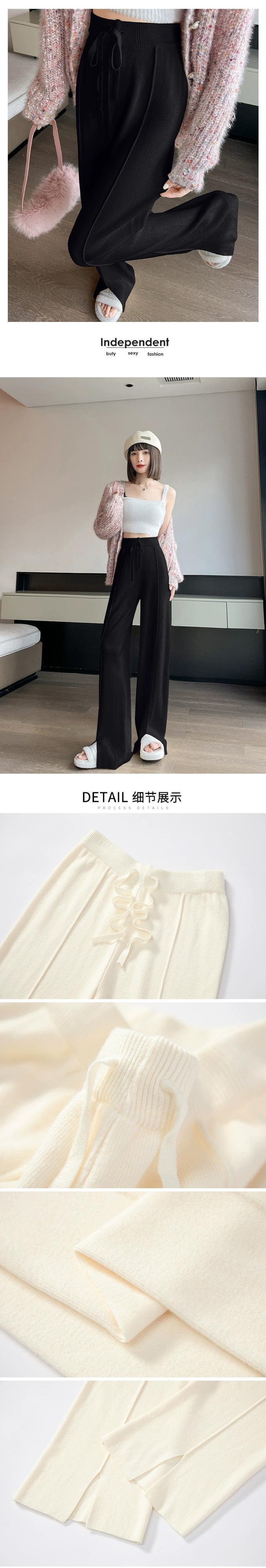 スリットニットワイドレッグパンツレディース、秋と冬のソフトでワックスのようなドレープパンツ、ハイウエスト、スリム、多用途のフロアレングスのストレートカジュアルパンツ オータム 秋物 ウィンター 冬物 7460047054251833 | framboise21
