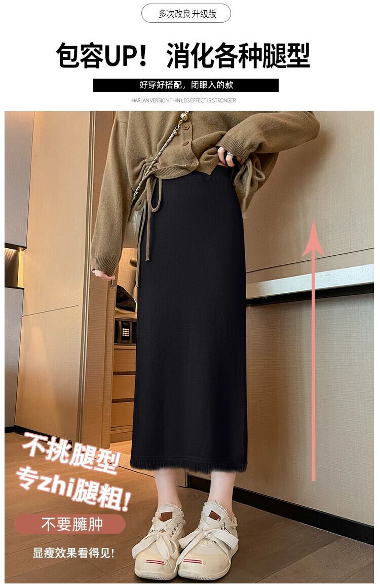 Tel ニットスカート レディース 2023秋冬 バックスリット ヒップカバースカート 着痩せ万能ウエストワンステップロングスカート オータム 秋物 ウィンター 冬物 7460060625787206 | framboise21