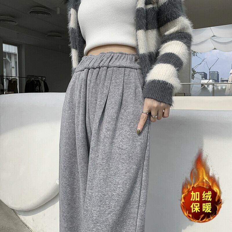 秋冬のタオルワイドレッグパンツの女性のナローバージョンハイウエストもち米パンツルーズストレートプラスベルベット厚みのあるカジュアルパンツ オータム 秋物 ウィンター 冬物 7460041048574342 | framboise21