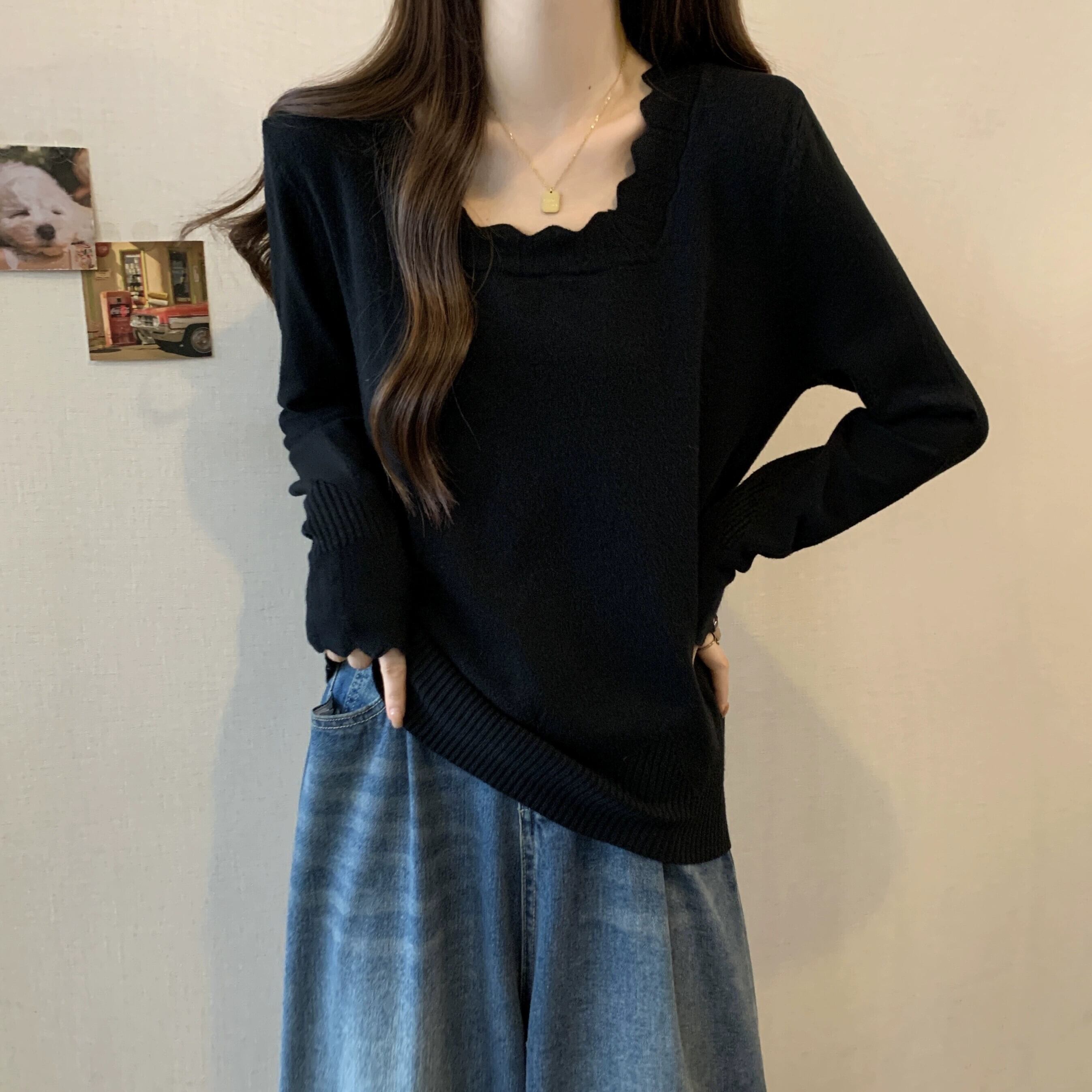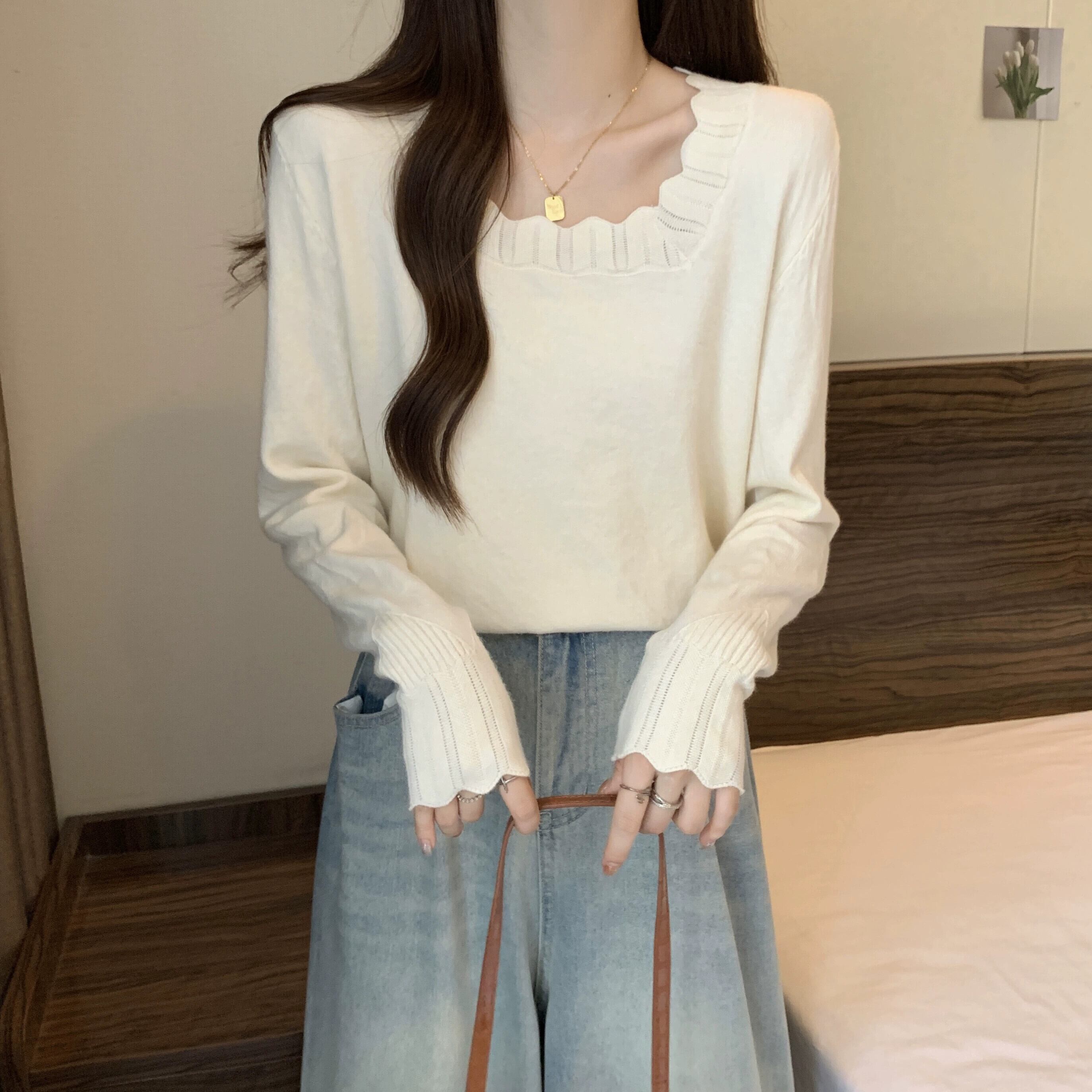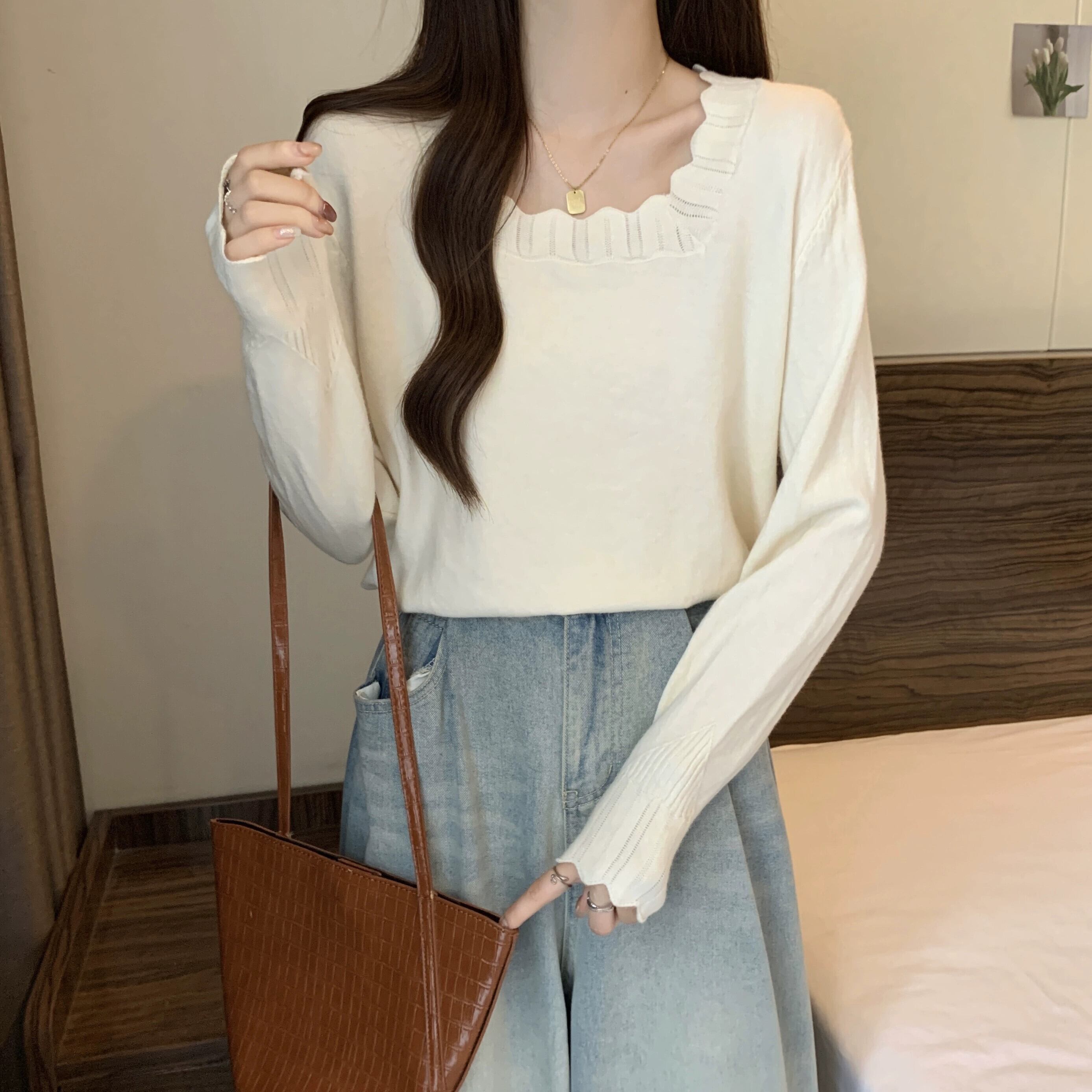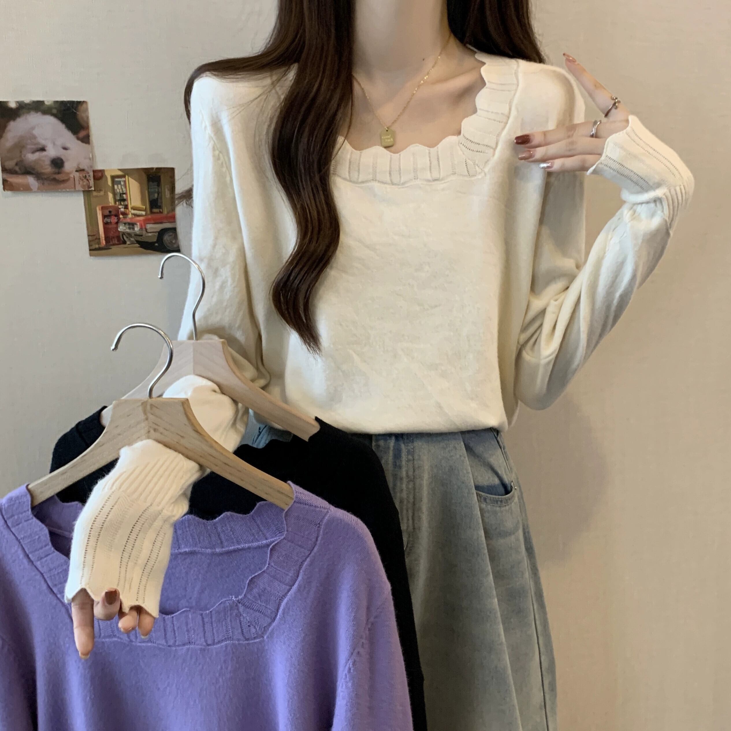 レーススクエアネックボトミングシャツ 2023 新しい女性の秋冬フレンチスタイルインナールーズ痩身長袖セーター ロング オータム 秋物 ウィンター 冬物 スクウェア 7460037781615928 | framboise21