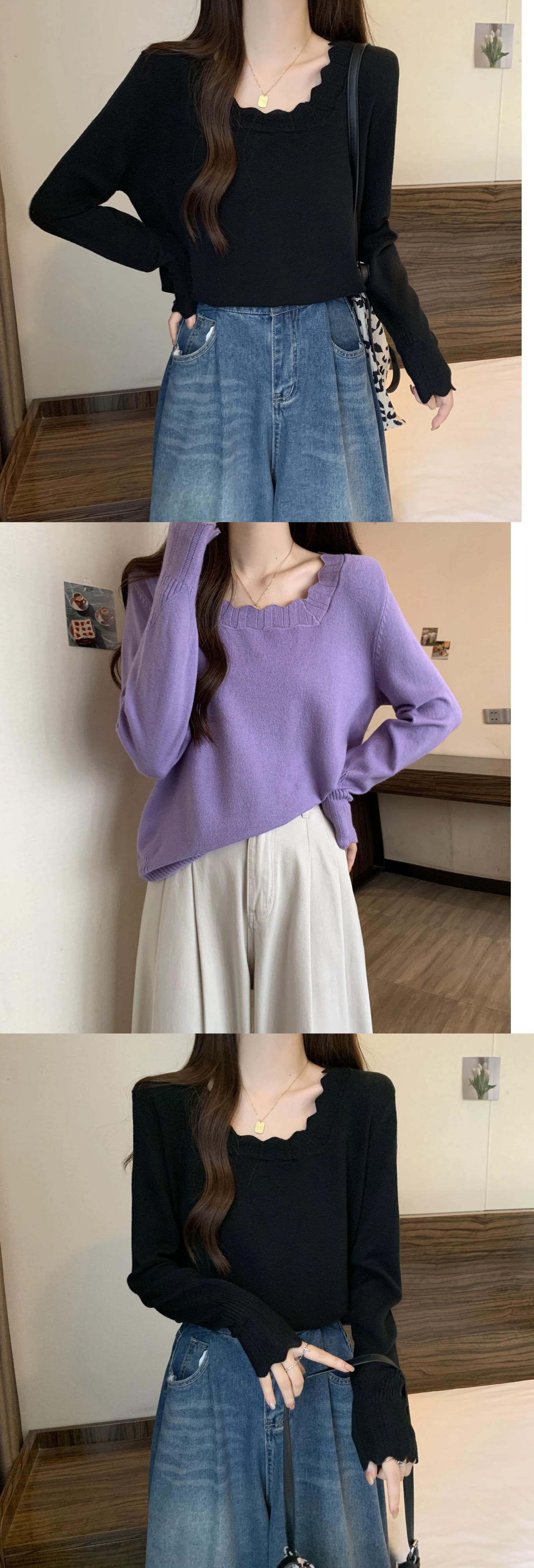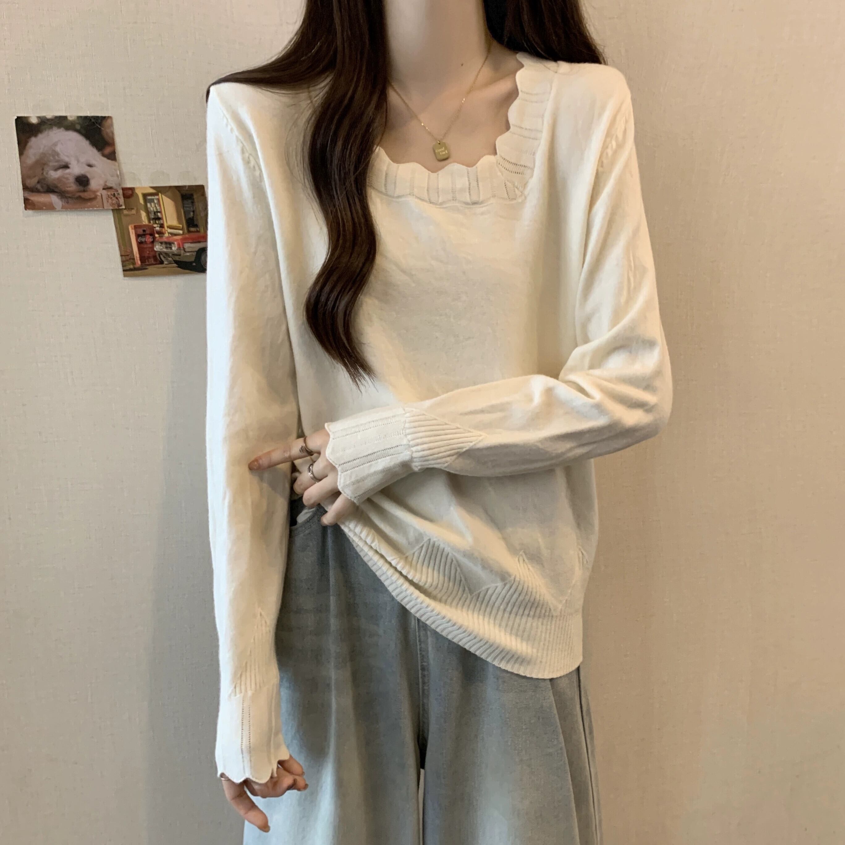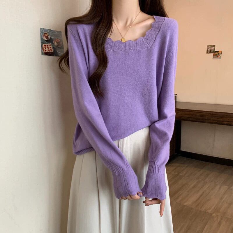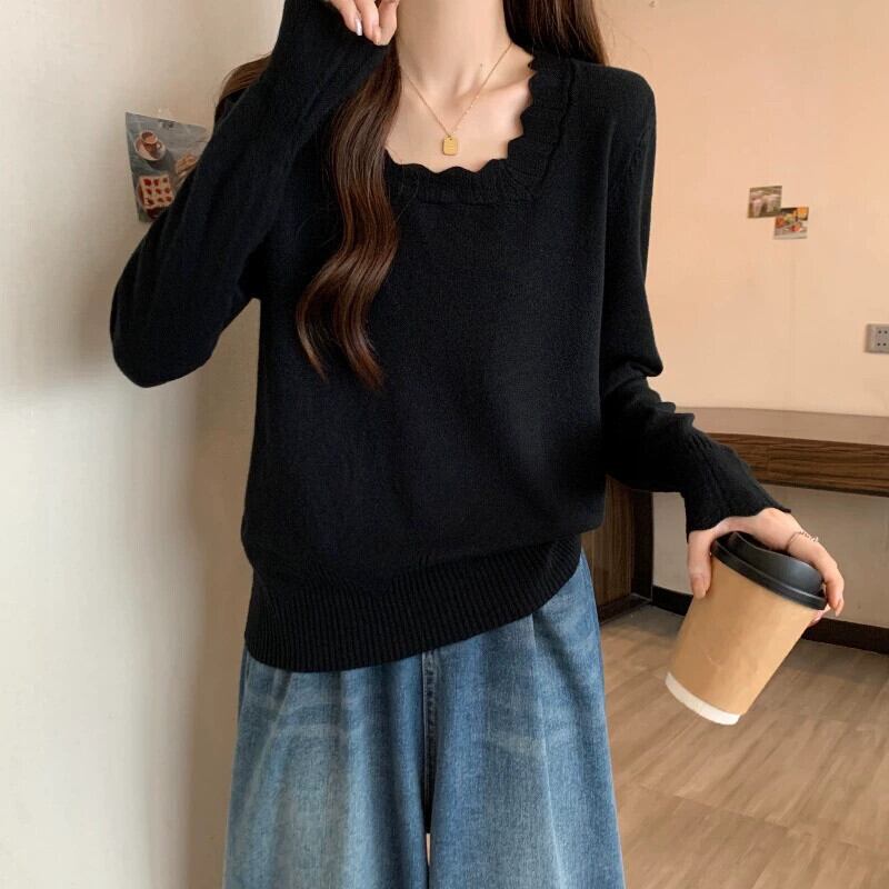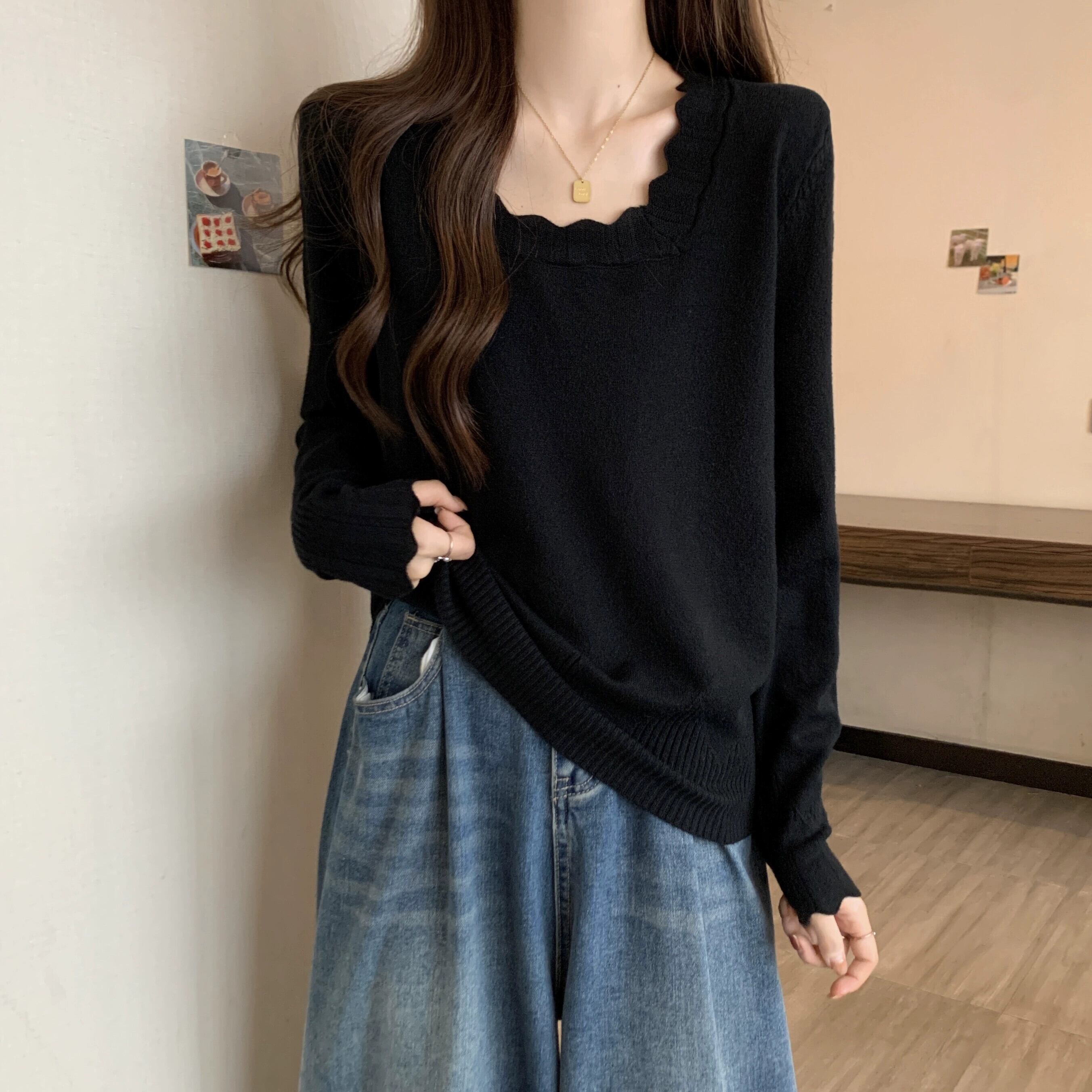 レーススクエアネックボトミングシャツ 2023 新しい女性の秋冬フレンチスタイルインナールーズ痩身長袖セーター ロング オータム 秋物 ウィンター 冬物 スクウェア 7460037781615928 | framboise21