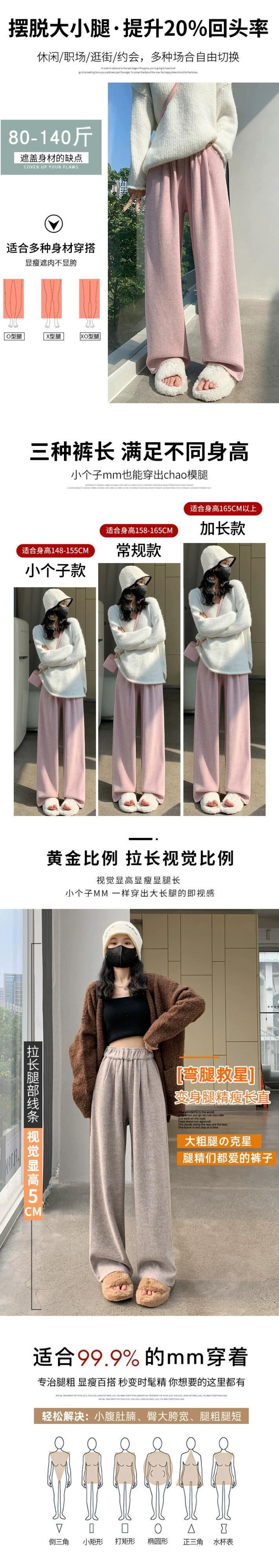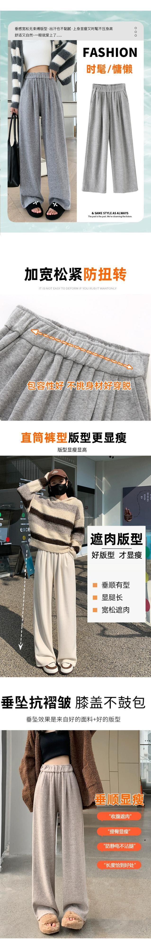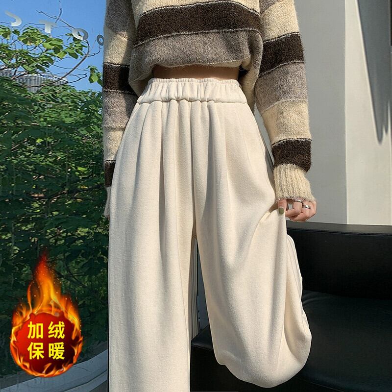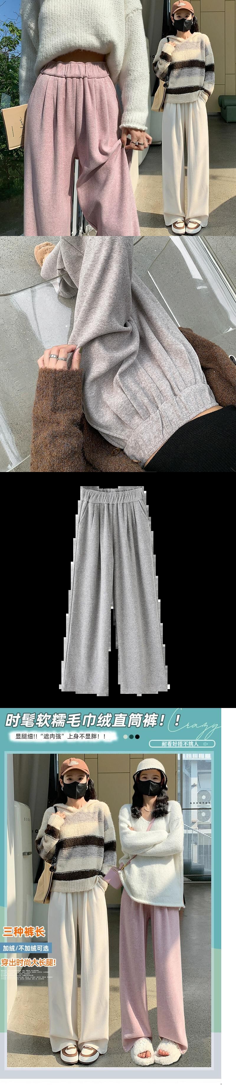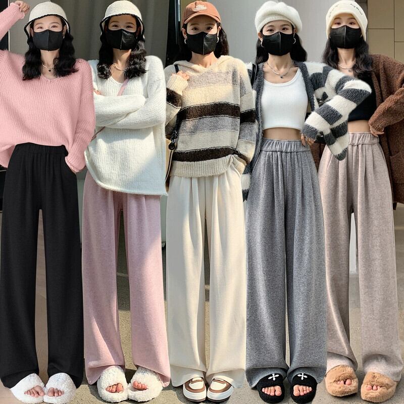 秋冬ベルベットワイドレッグパンツレディース、ハイウエスト、ソフトもちもちパンツ、ルーズでスリム、もち米パンツのカジュアルストレートレッグナローバージョン オータム 秋物 ウィンター 冬物 7460072626752951 | framboise21