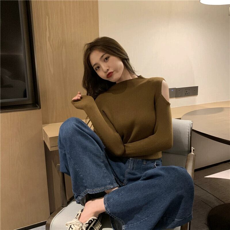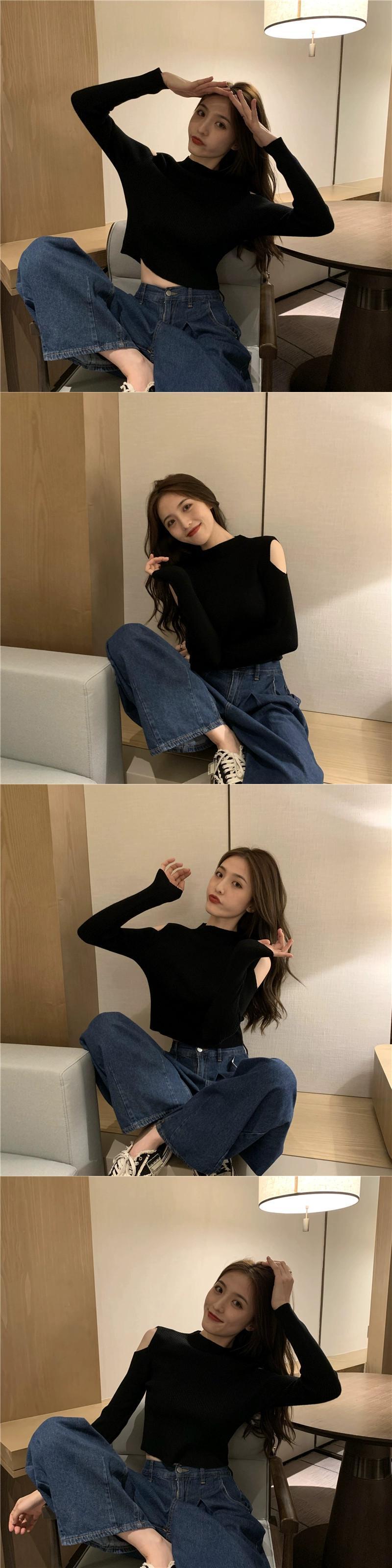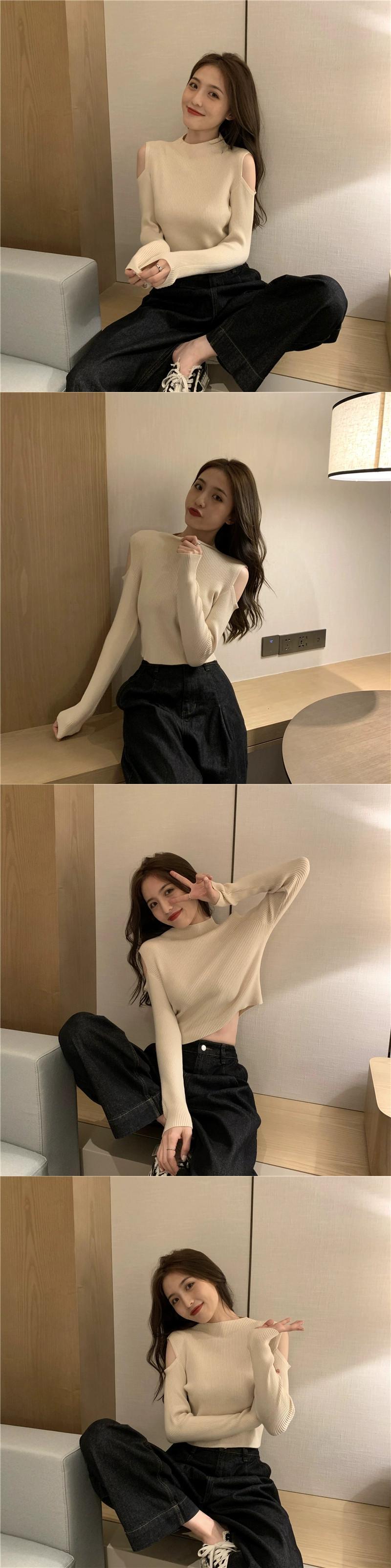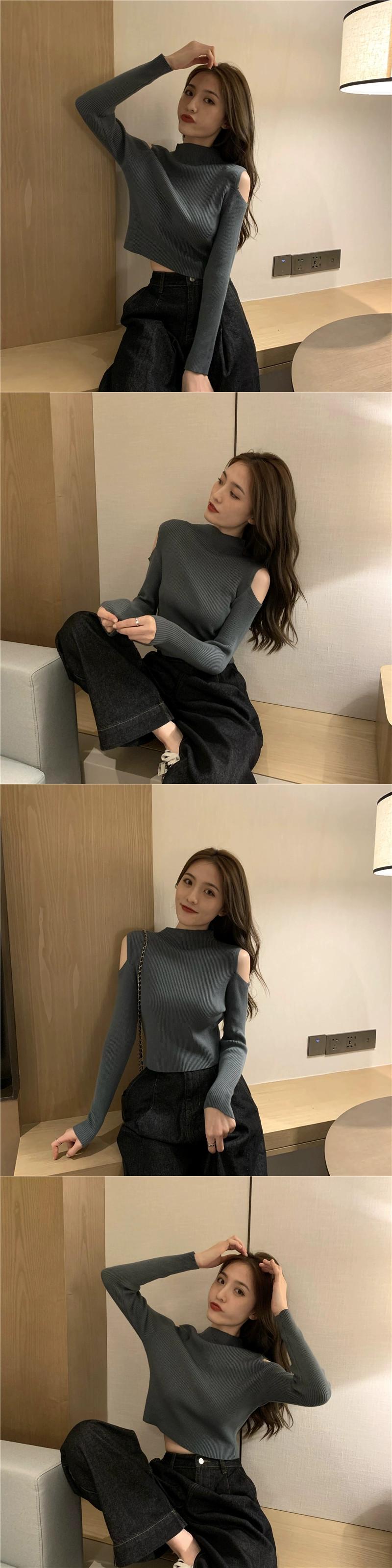 秋冬のショートハーフタートルネックボトムシャツレディース、ファッショナブルでスリムフィット、オフショルダーセーター、丁寧な長袖ニットトップ ロング オータム 秋物 ウィンター 冬物 7460030631501809 | framboise21