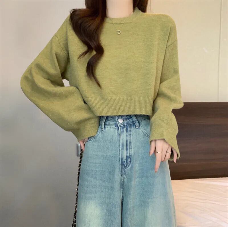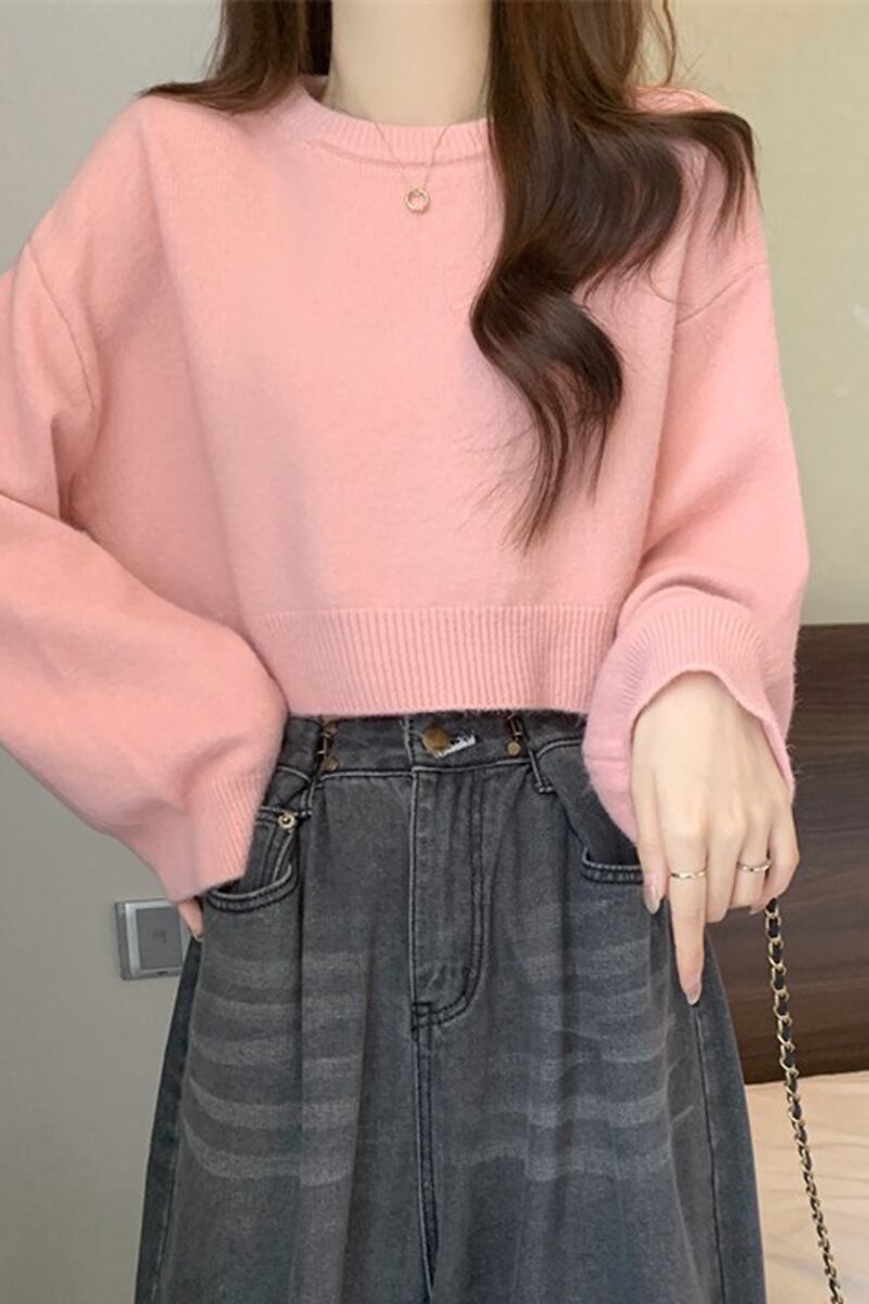 ピンクのショートセーターの女性の秋と冬の2023新しいアウターウェアルーズ痩身肥厚長袖セーター小人 ロング オータム 秋物 ウィンター 冬物 7460072688687002 | framboise21