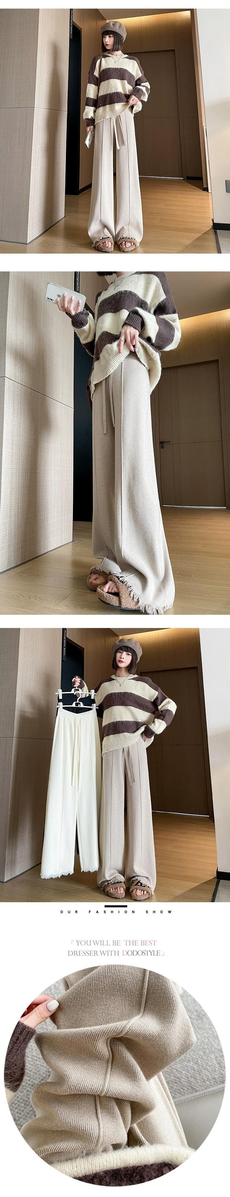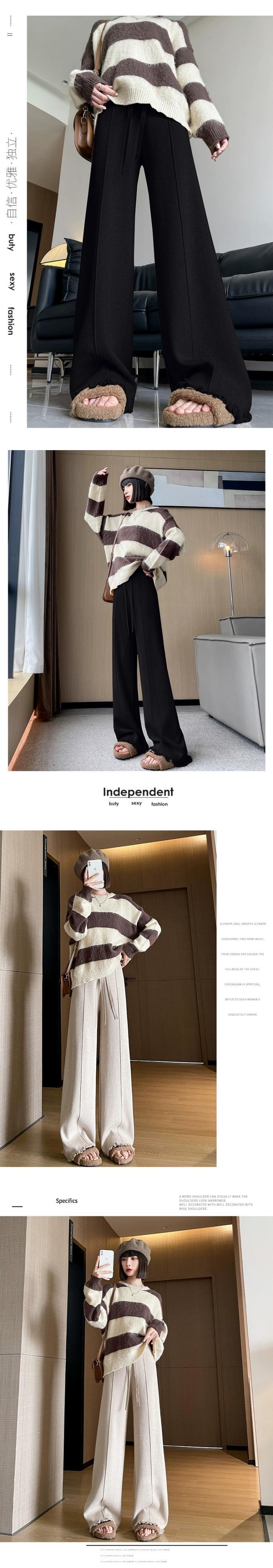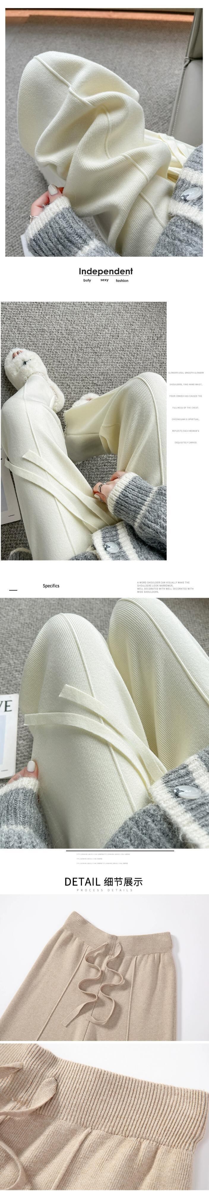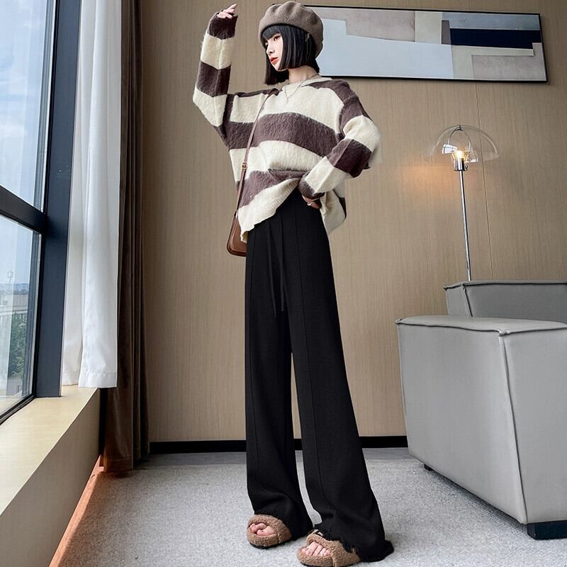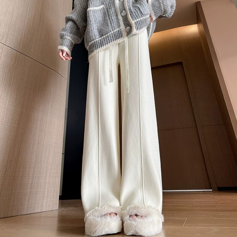 柔らかいもちフリンジニットワイドレッグパンツ女性の秋と冬のハイウエストもち米タオルパンツルーズストレートカジュアルフロアモップパンツ オータム 秋物 ウィンター 冬物 7460061588548481 | framboise21