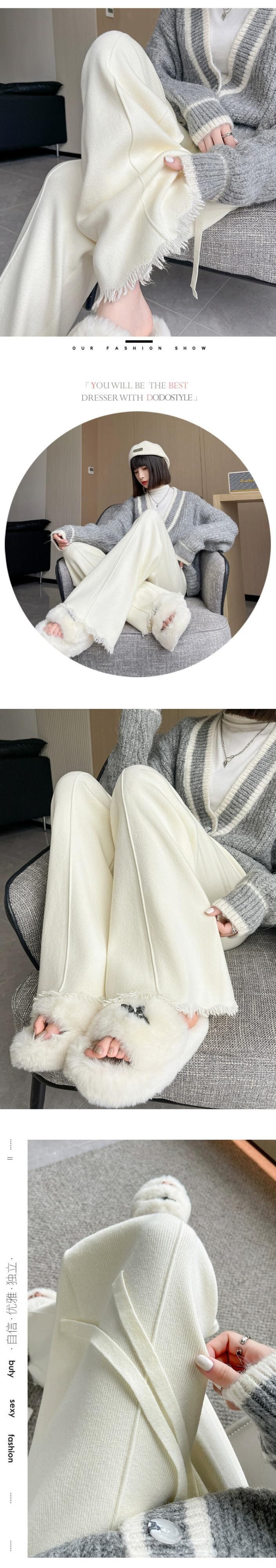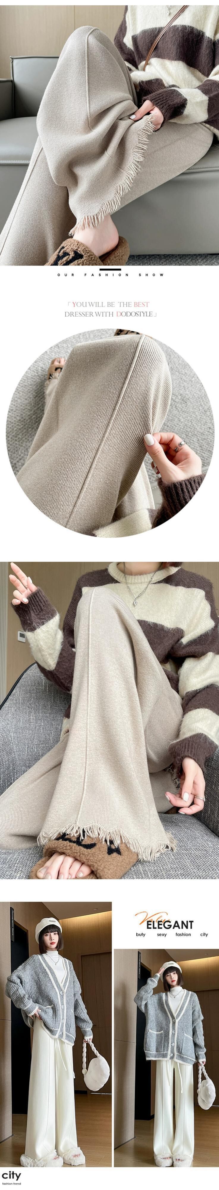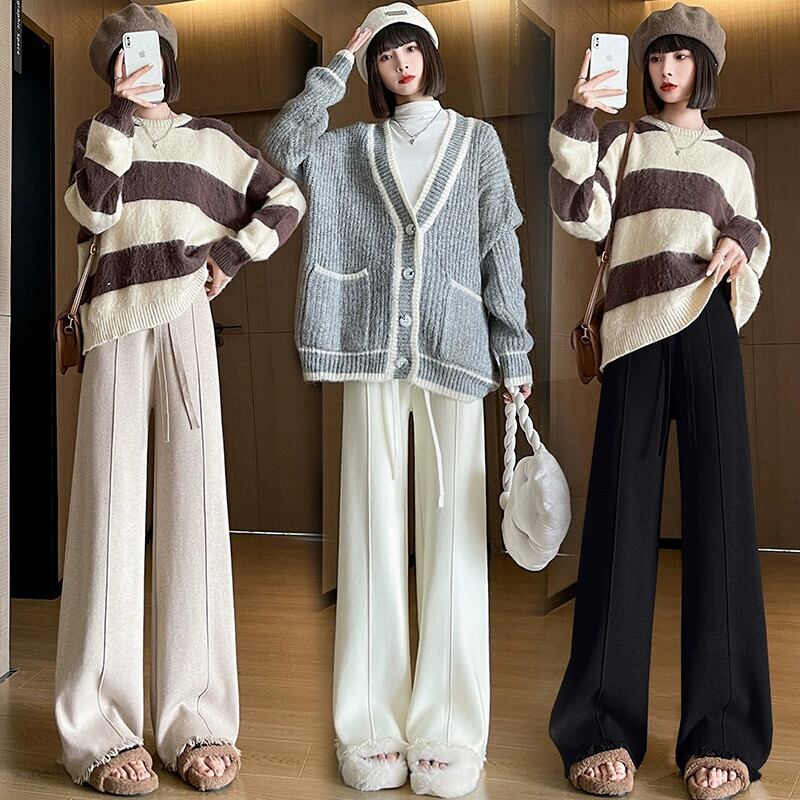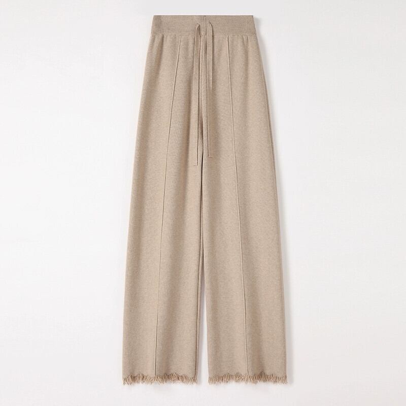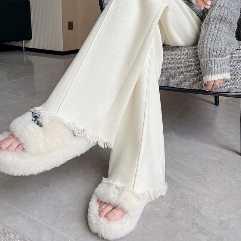 秋と冬の怠惰なスタイルのニットワイドレッグパンツの女性、ドレープのあるもち米パンツの狭いバージョン、ストレートフロアレングスのハイウエストカジュアルフリンジパンツ ウィンター 冬物 7460011124534856 | framboise21