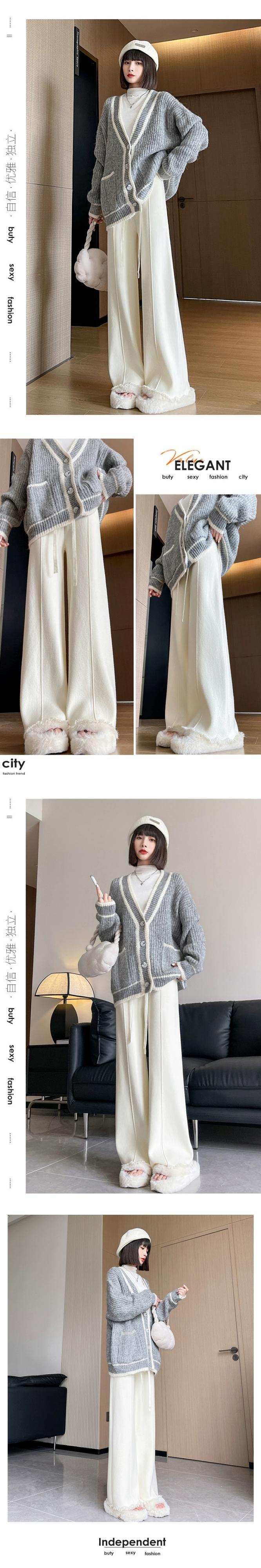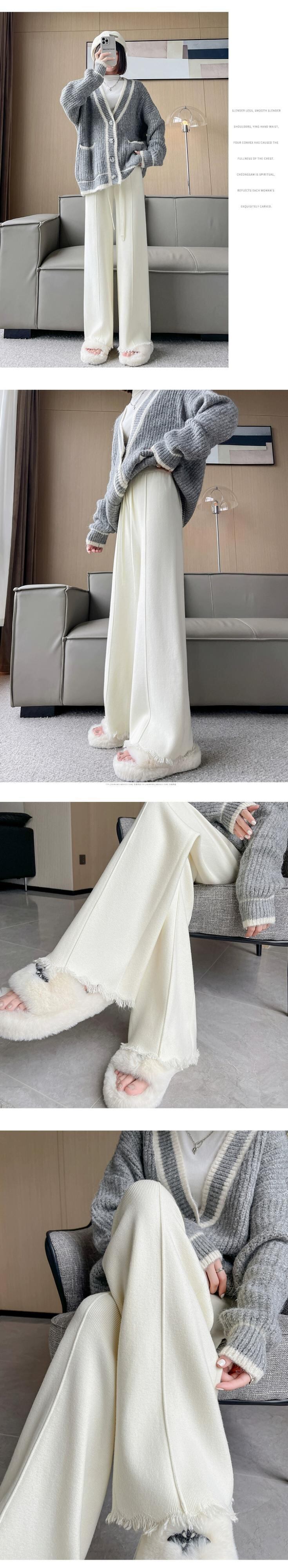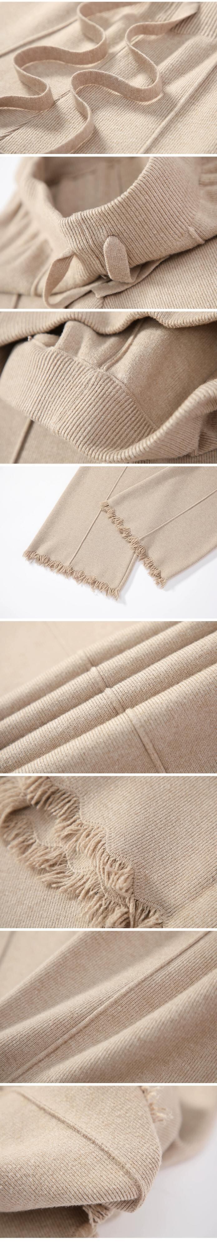 秋と冬の怠惰なスタイルのニットワイドレッグパンツの女性、ドレープのあるもち米パンツの狭いバージョン、ストレートフロアレングスのハイウエストカジュアルフリンジパンツ ウィンター 冬物 7460011124534856 | framboise21
