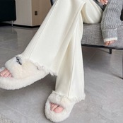 秋と冬の怠惰なスタイルのニットワイドレッグパンツの女性、ドレープのあるもち米パンツの狭いバージョン、ストレートフロアレングスのハイウエストカジュアルフリンジパンツ ウィンター 冬物 7460011124534856