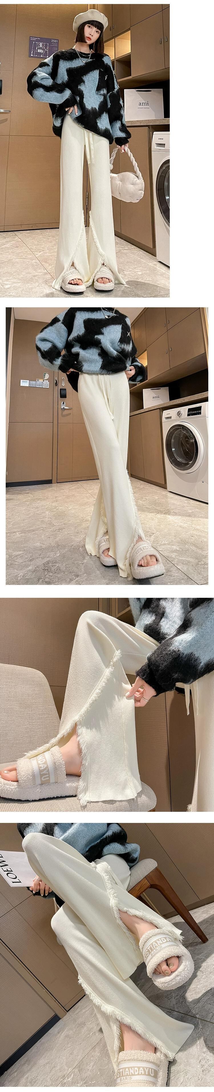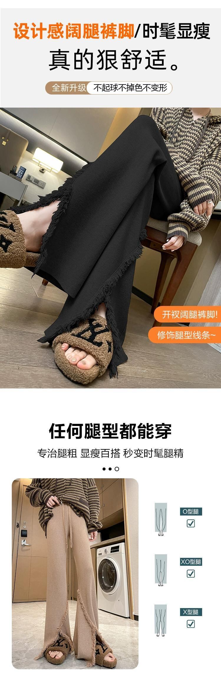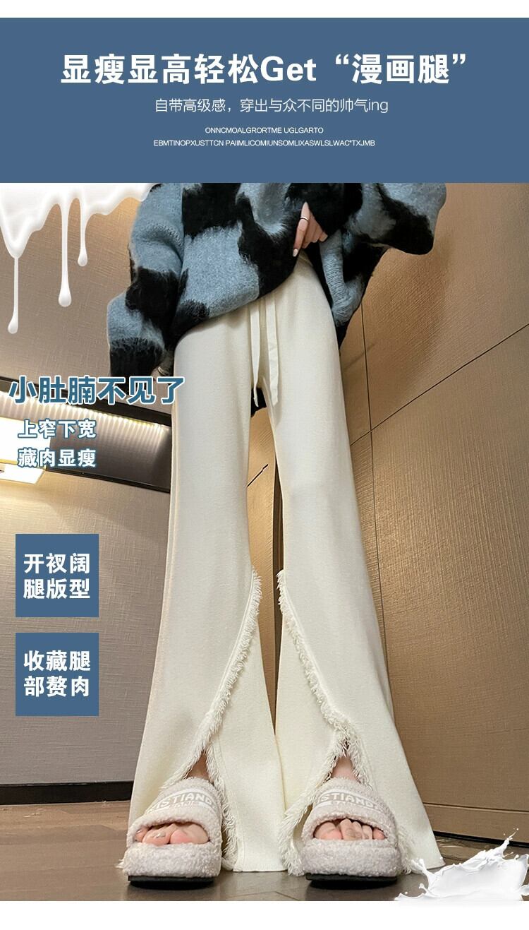 ニットタオルワイドレッグパンツレディース秋冬ハイウエストスリットマイクロフレアパンツドレープカジュアルストレートナローバージョンもち米パンツ レッド オータム 秋物 ウィンター 冬物 7460069773306151 | framboise21