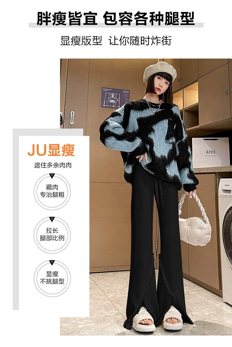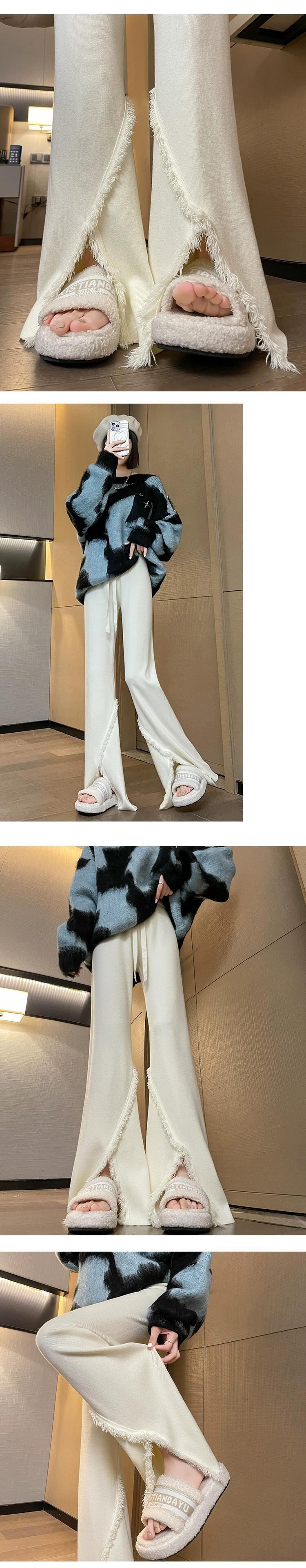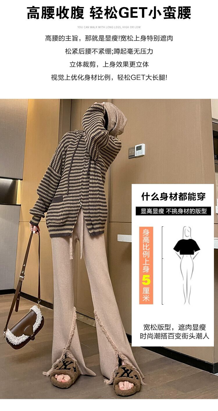 ニットタオルワイドレッグパンツレディース秋冬ハイウエストスリットマイクロフレアパンツドレープカジュアルストレートナローバージョンもち米パンツ レッド オータム 秋物 ウィンター 冬物 7460069773306151 | framboise21