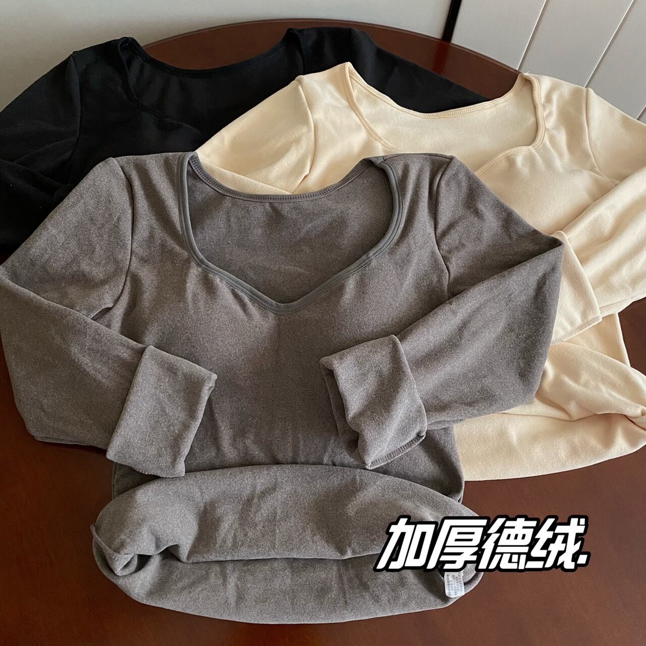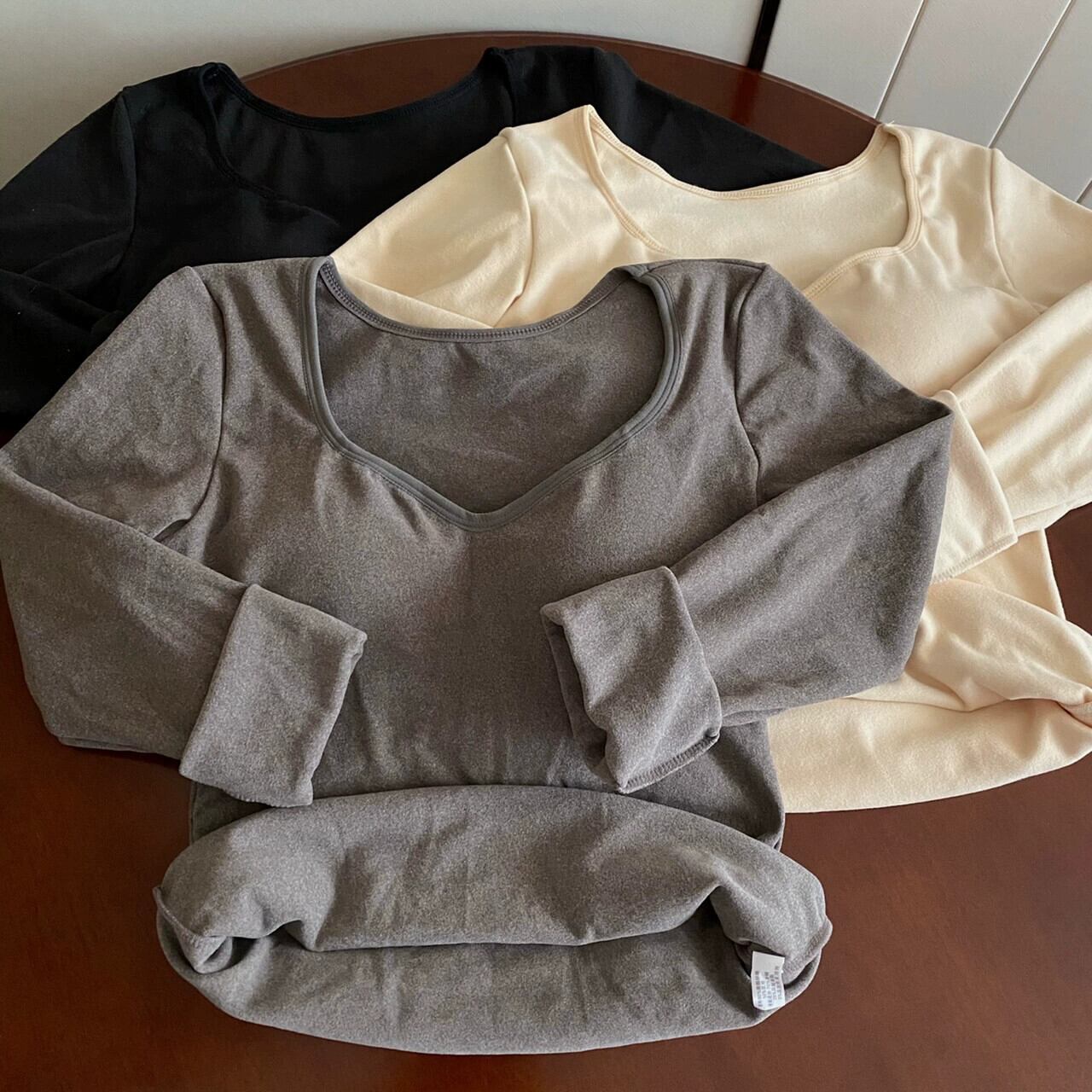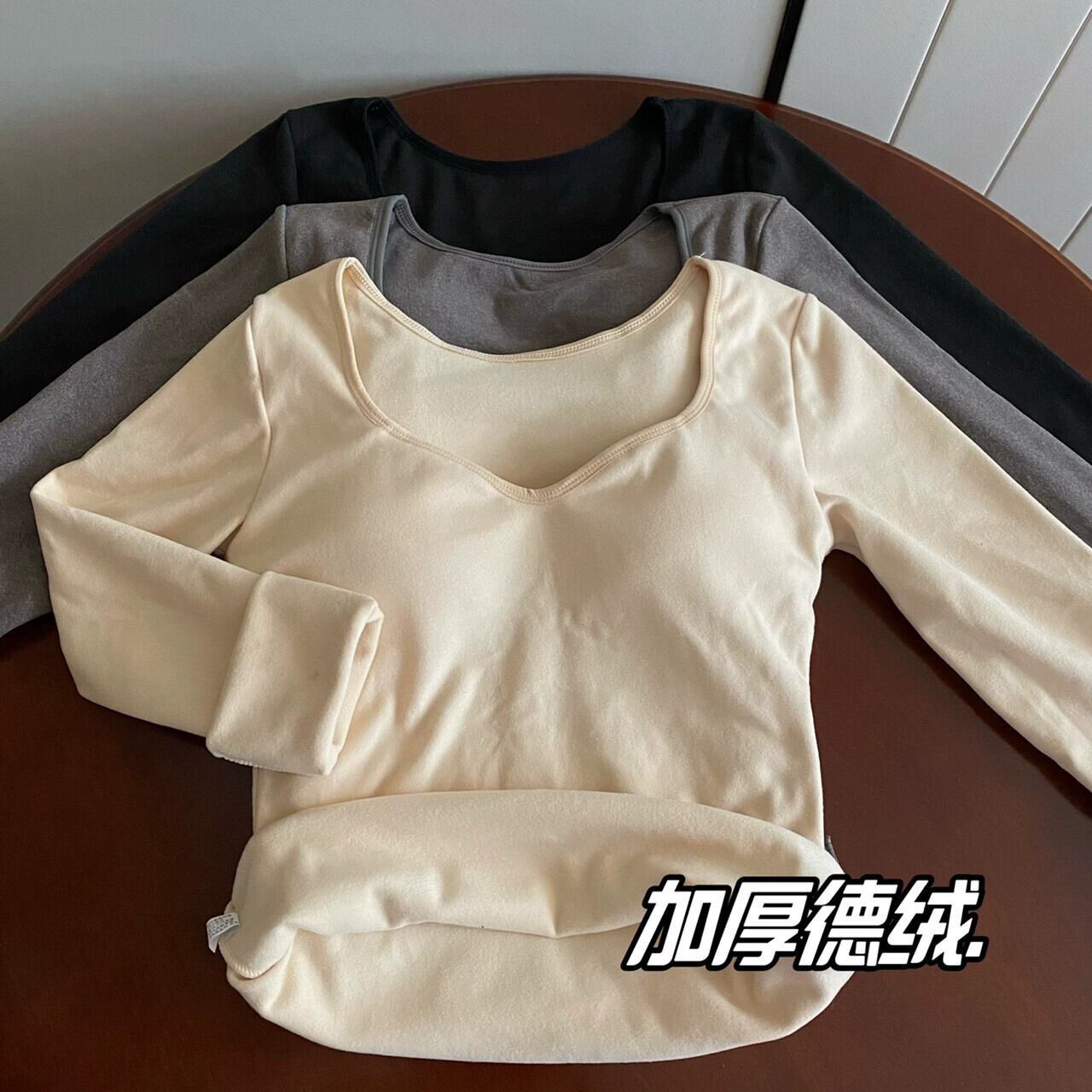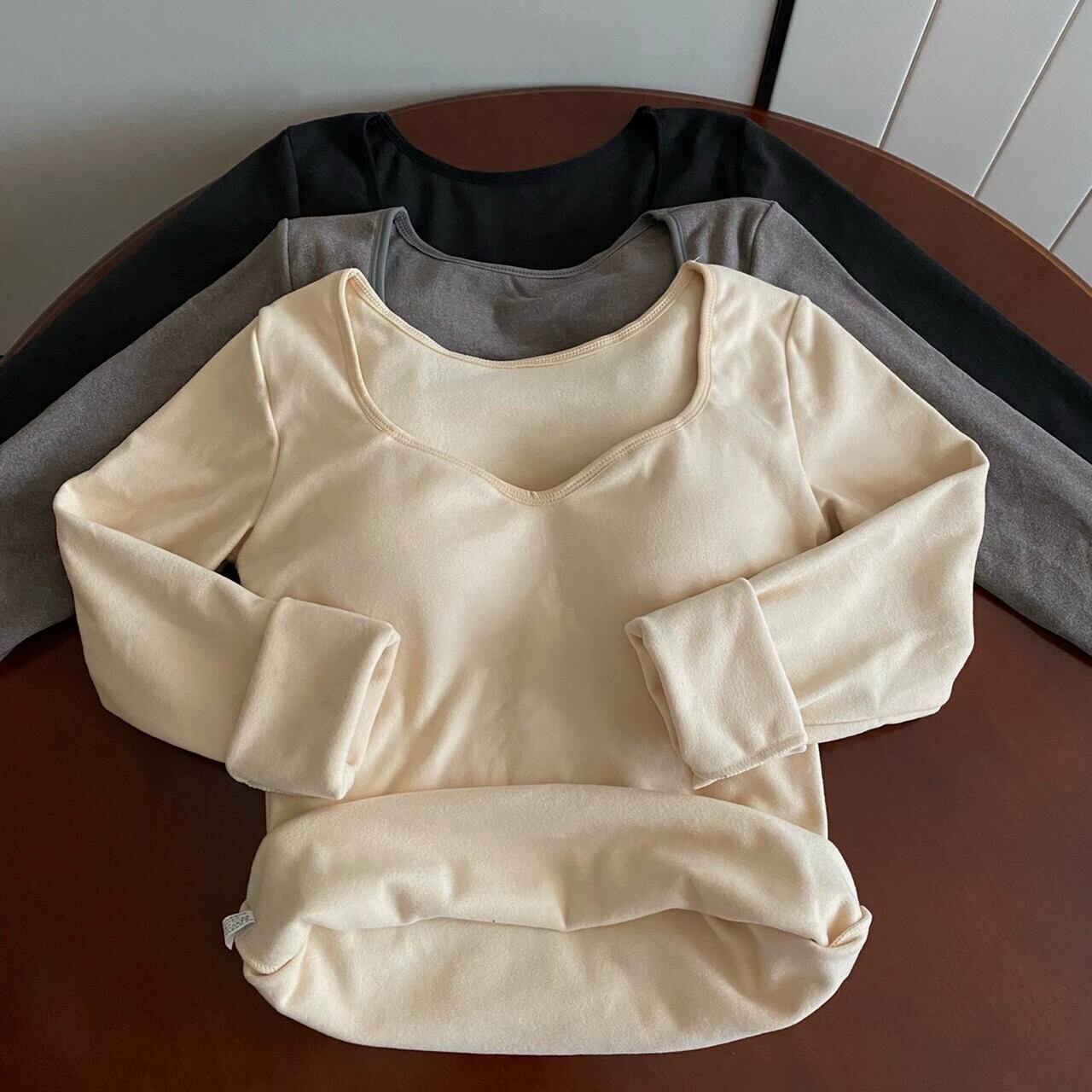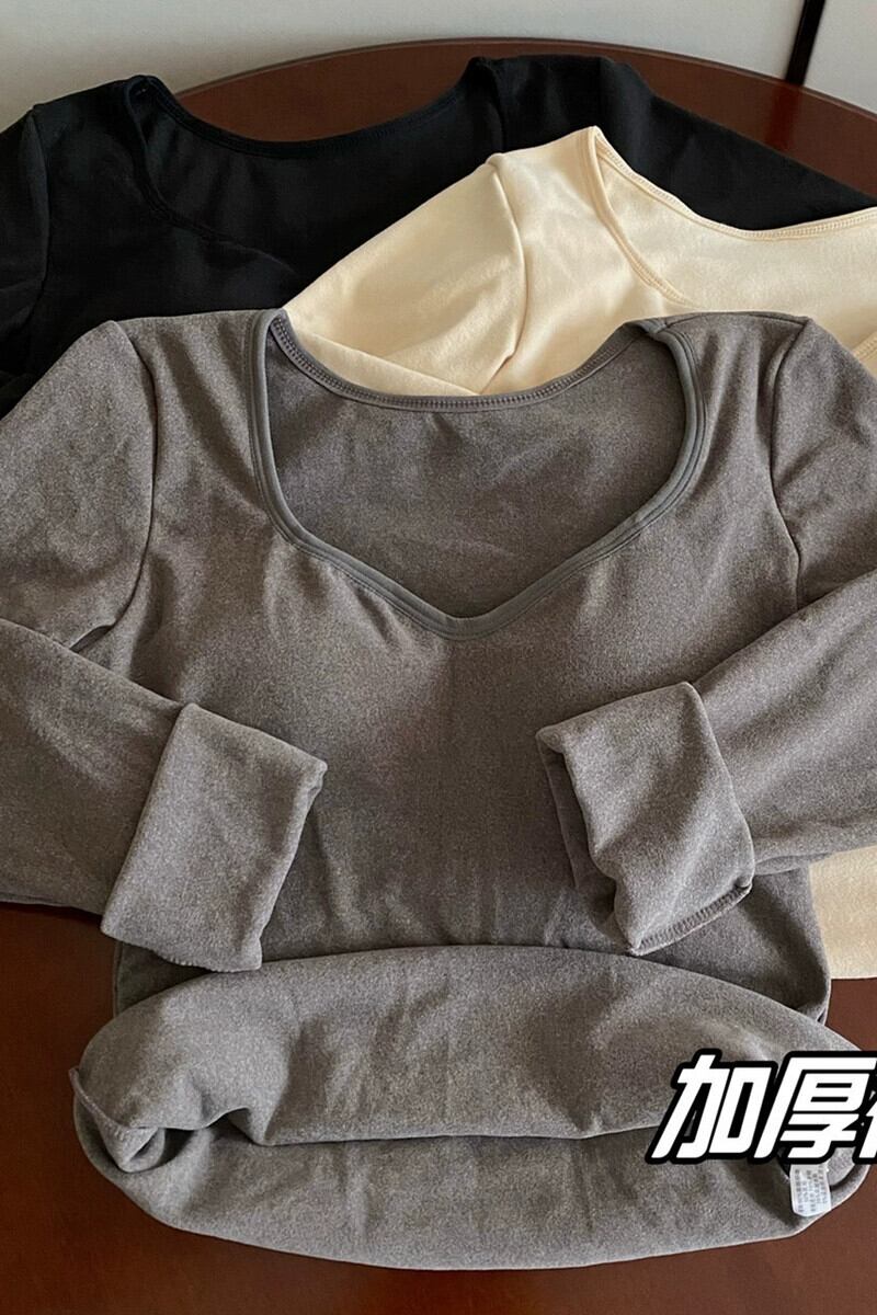厚みのあるドイツ製ベルベットの暖かいボトムシャツ女性の秋と冬、ファッショナブルでスリム、胸パッド付き、Vネック長袖Tシャツ ロング オータム 秋物 ウィンター 冬物 7460081713684233 | framboise21