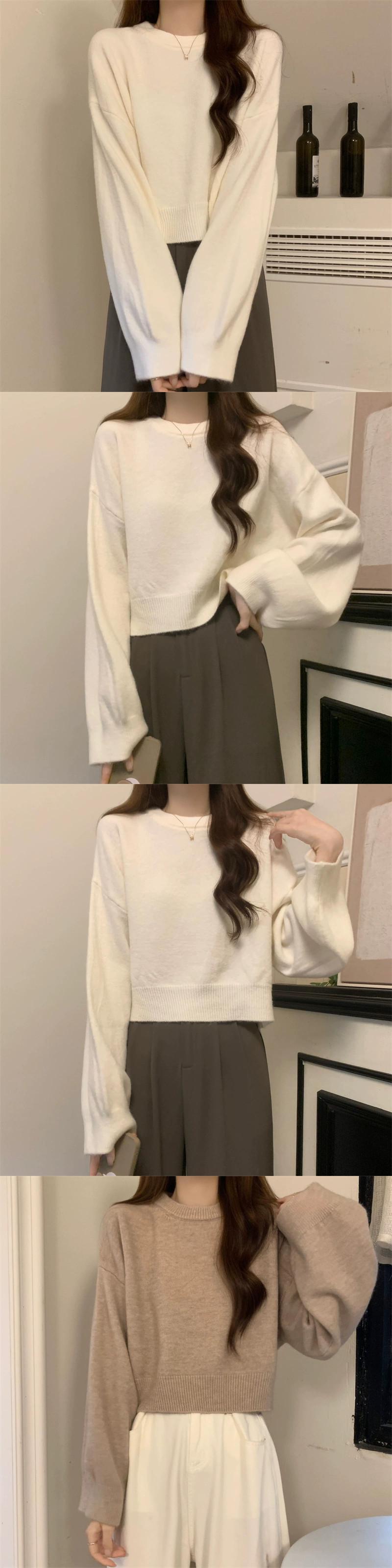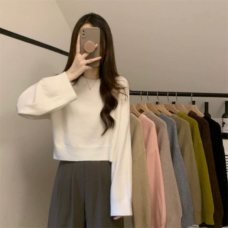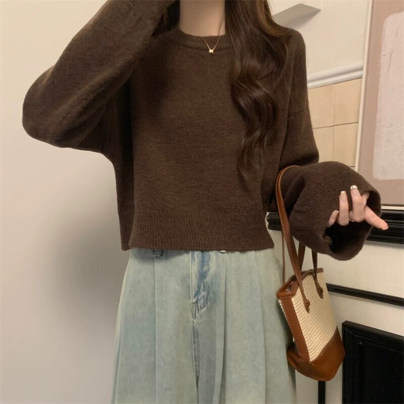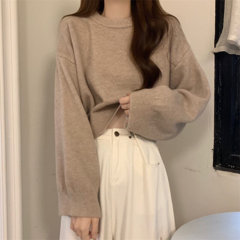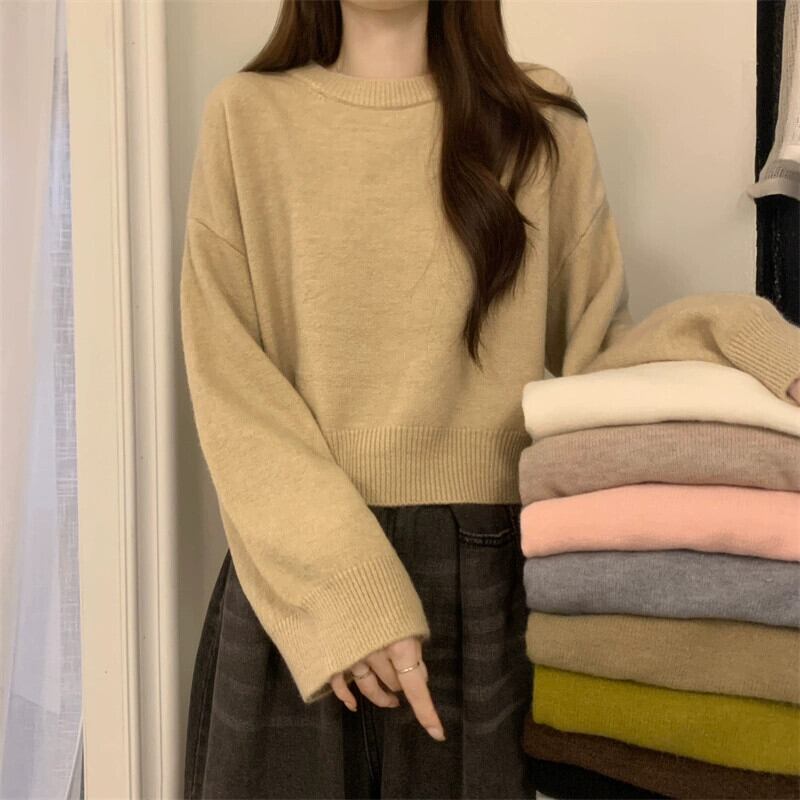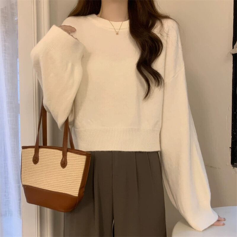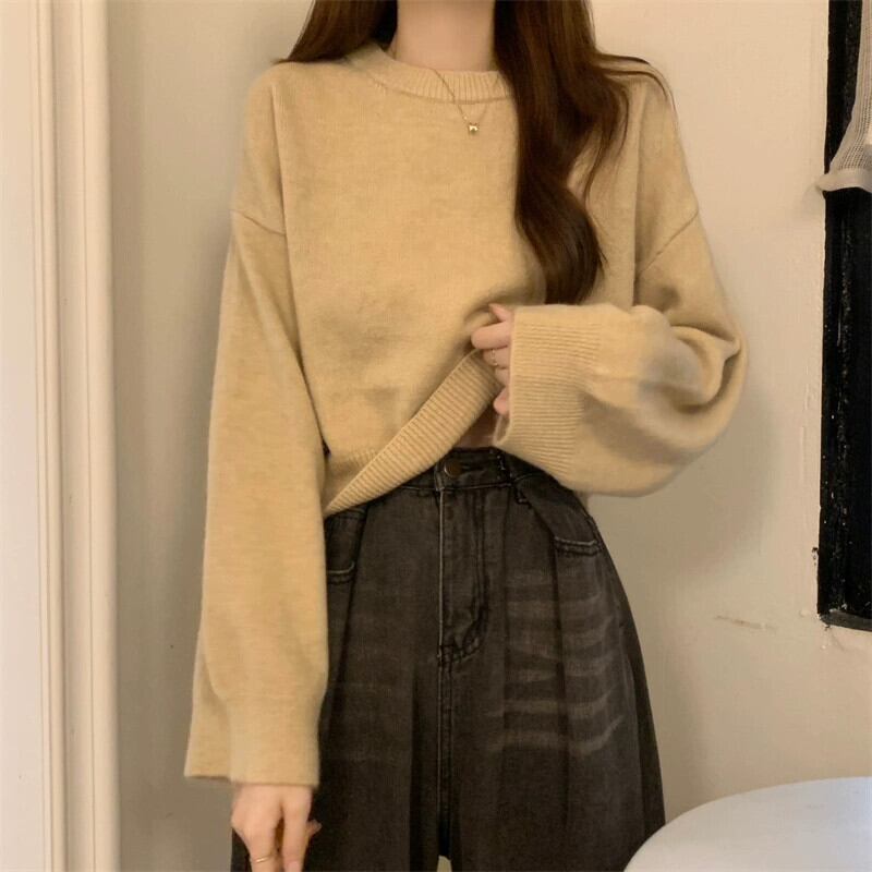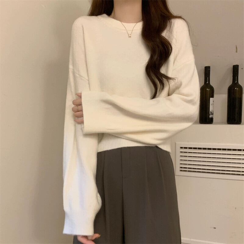 ソフトでワックス状のショートセーターの女性 2023 新しい秋と冬の怠惰なスタイル小人ルーズアウタープルオーバー長袖セーター ロング オータム 秋物 ウィンター 冬物 7460040129395624 | framboise21