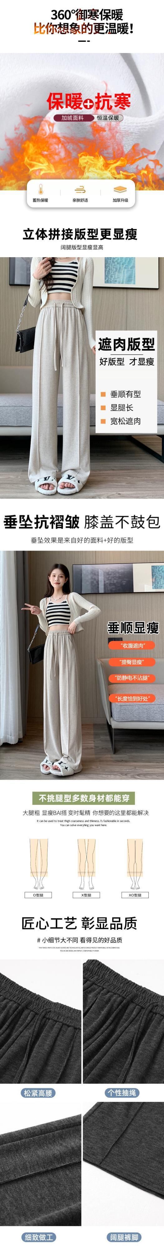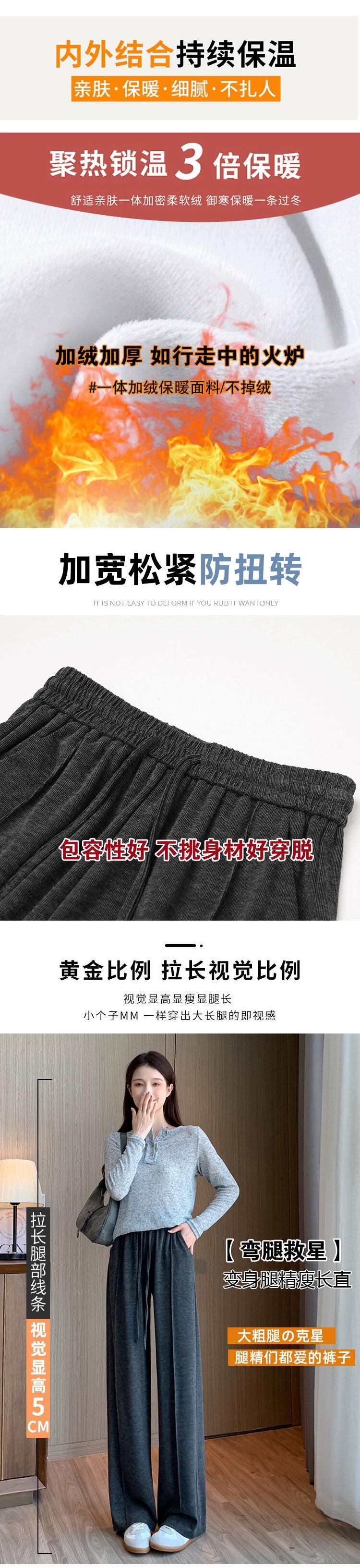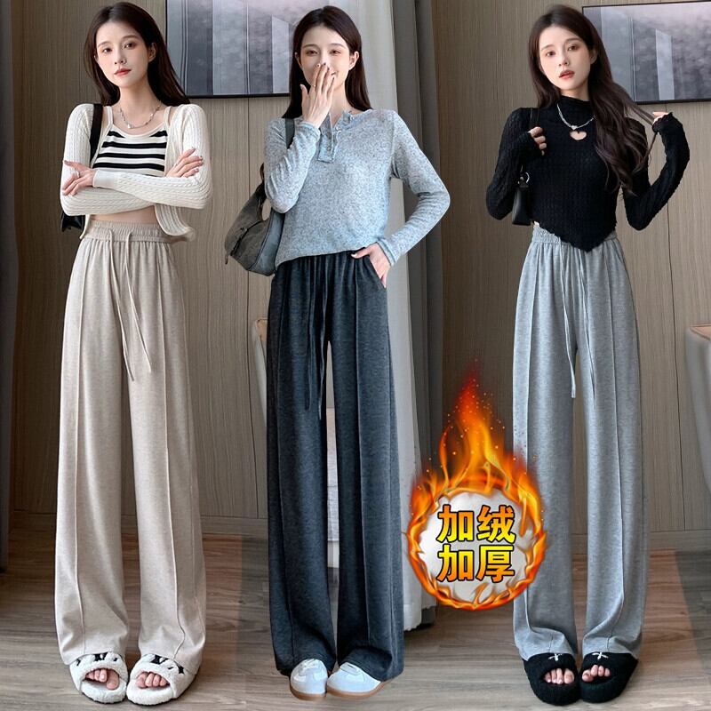 ベルベット肥厚カジュアルパンツ女性秋冬 2023 新しいハイウエストドレープ床長さのストレートニットカシミヤワイドレッグパンツ オータム 秋物 ウィンター 冬物 7460023645816268 | framboise21
