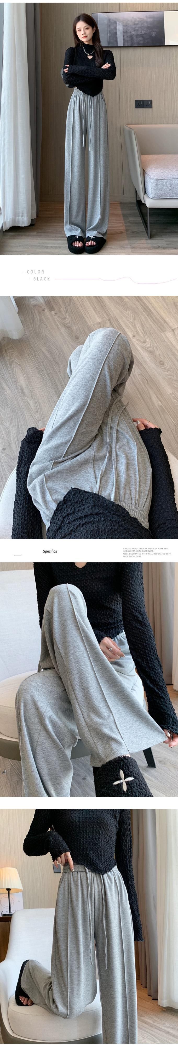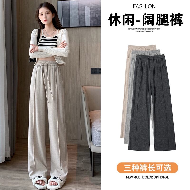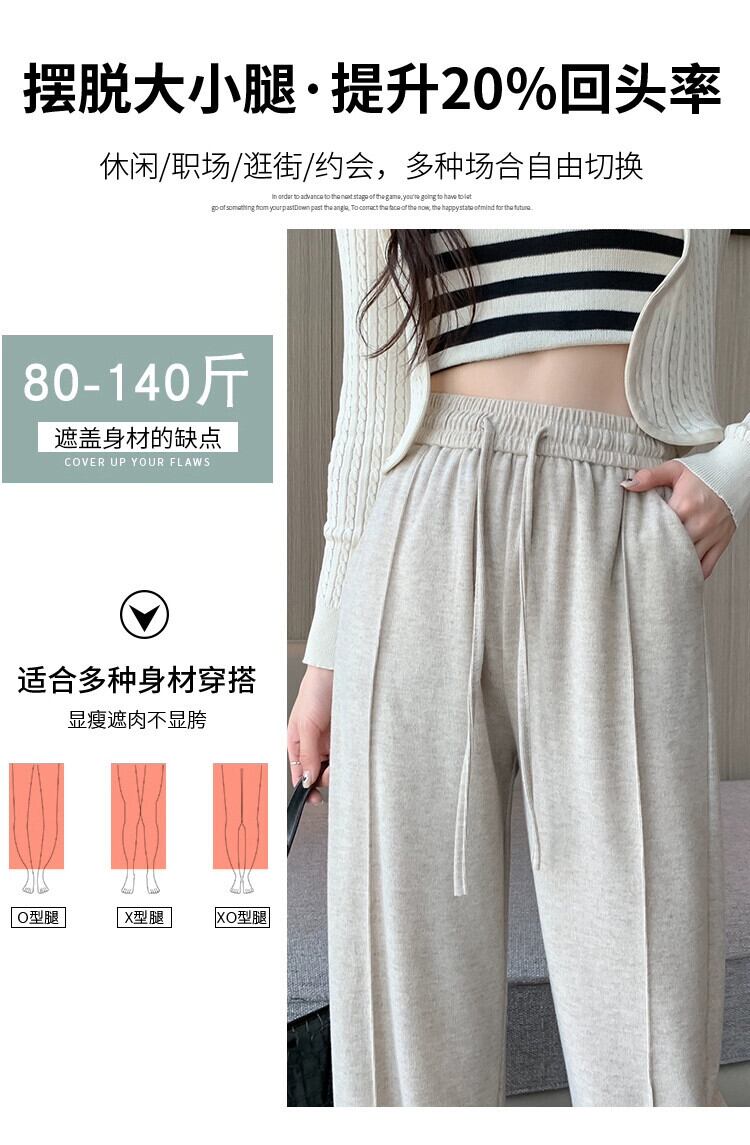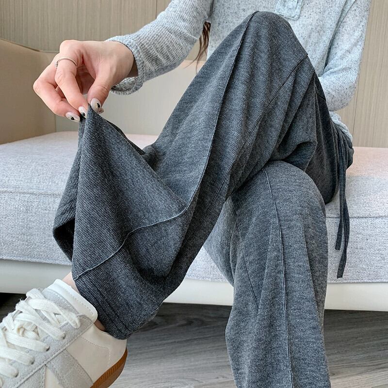 ベルベット肥厚カジュアルパンツ女性秋冬 2023 新しいハイウエストドレープ床長さのストレートニットカシミヤワイドレッグパンツ オータム 秋物 ウィンター 冬物 7460023645816268 | framboise21