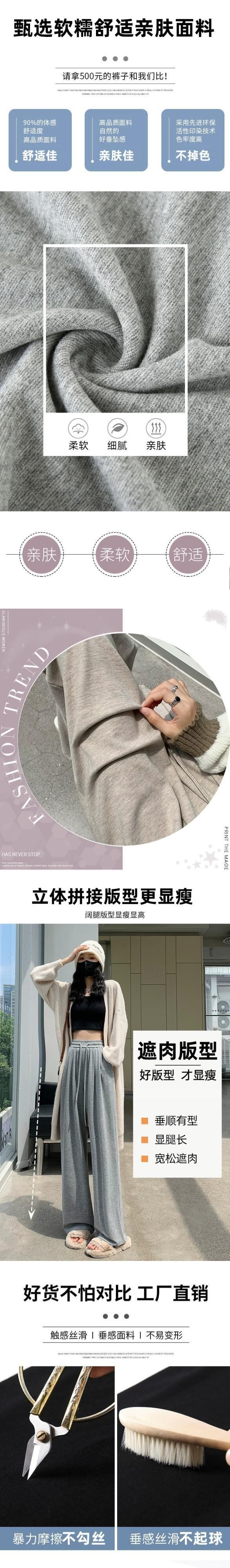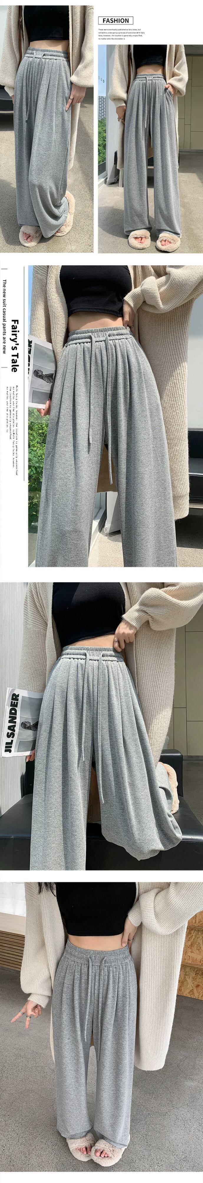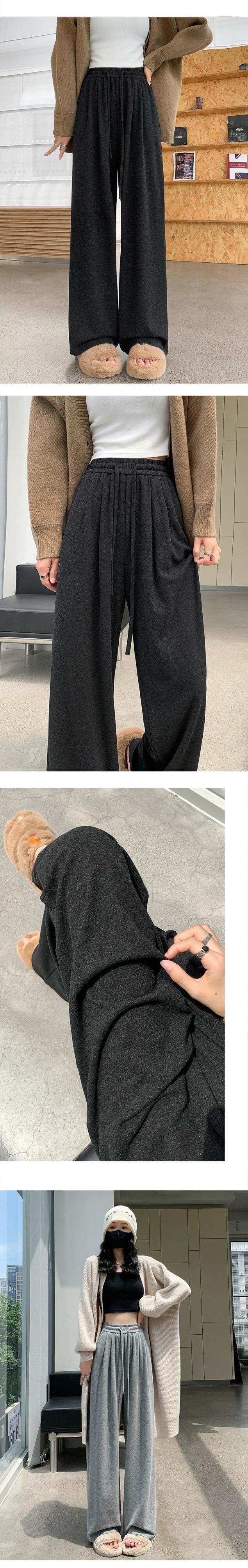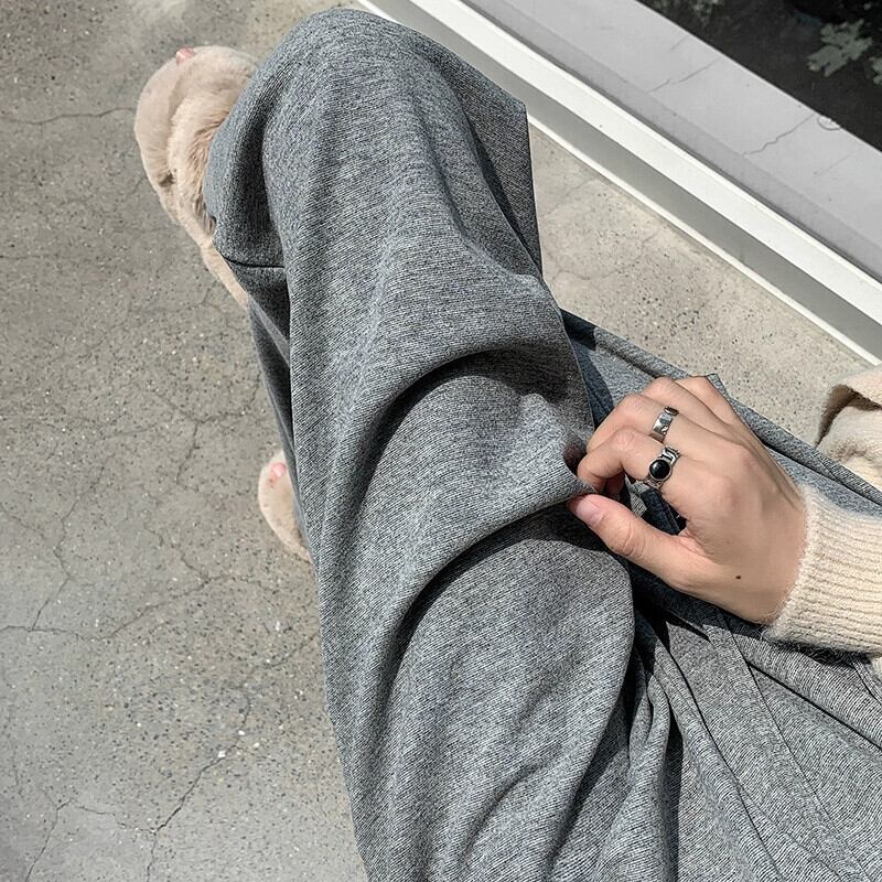 グレー怠惰なドレープもち米パンツの女性の秋と冬の柔らかいもちニット床長パンツルーズカジュアルスポーツワイドレッグパンツ オータム 秋物 ウィンター 冬物 7460074302255456 | framboise21