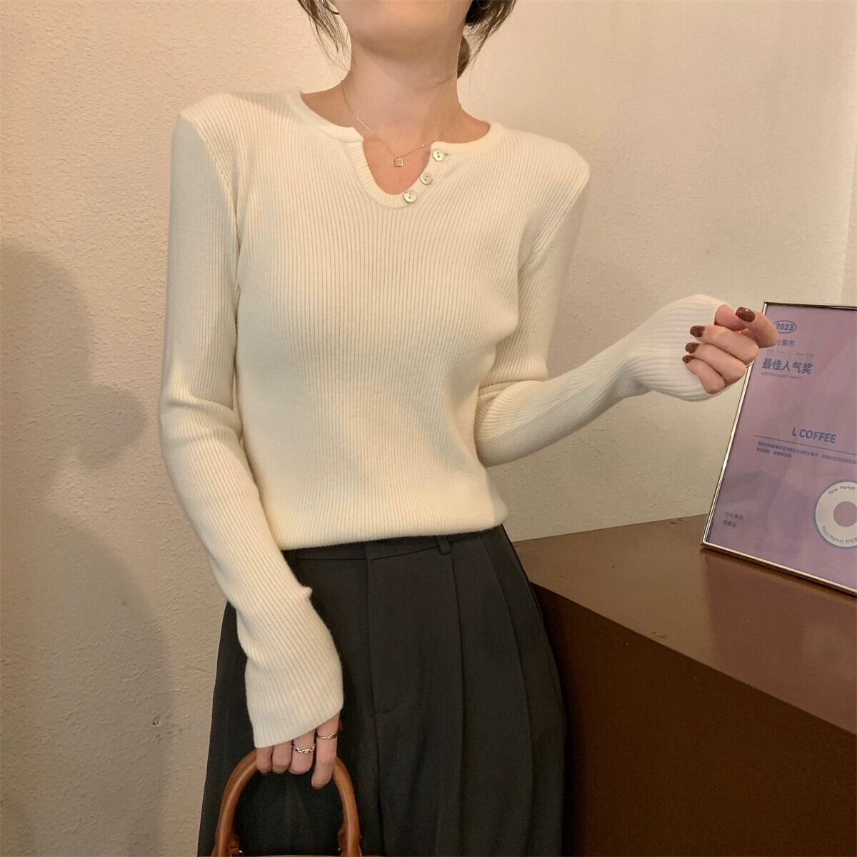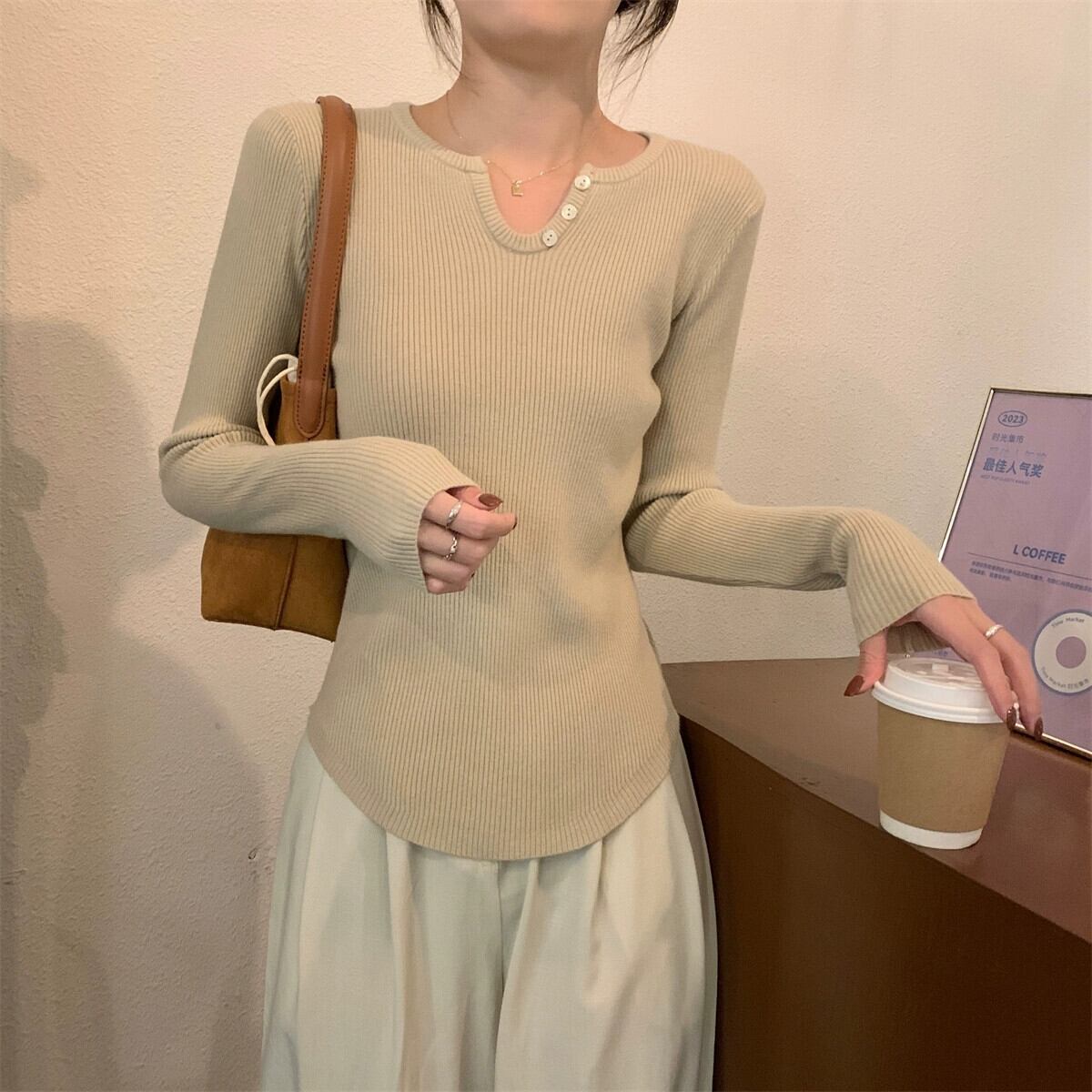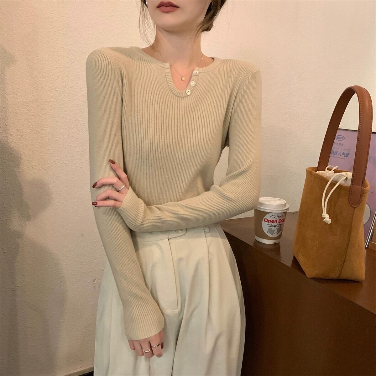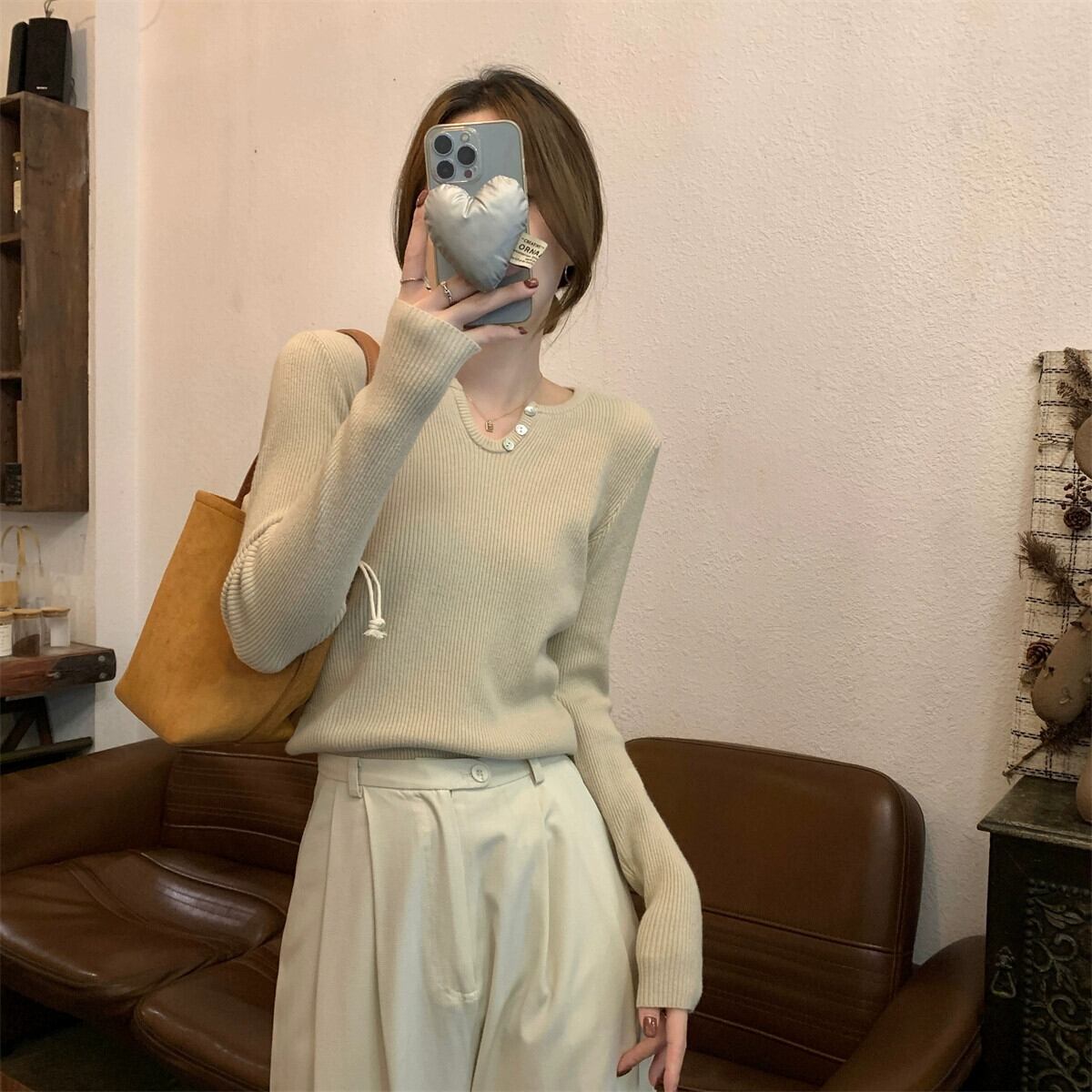 アプリコットボトリングシャツ 2023 新しい女性の秋冬スタイルファッショナブルでスタイリッシュなインナー V ネック長袖ニットセーター ロング オータム 秋物 ウィンター 冬物 Vネック 7460034457632176 | framboise21