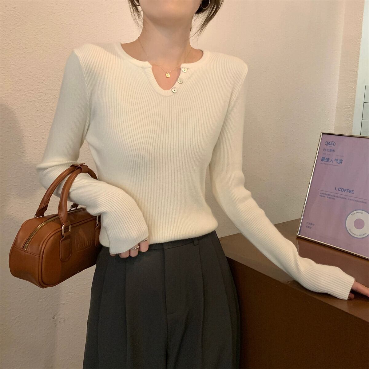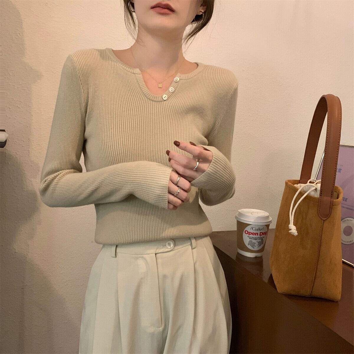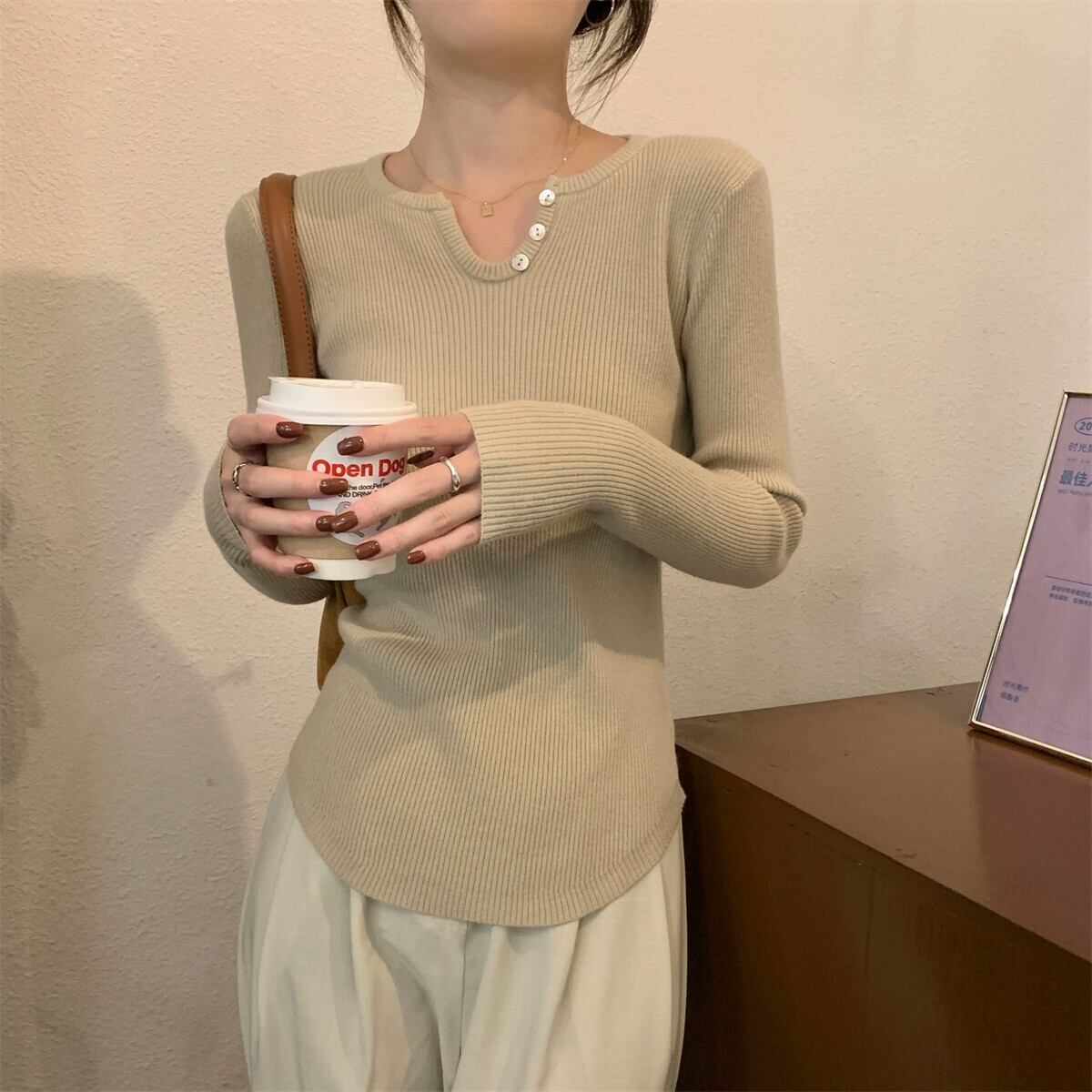 アプリコットボトリングシャツ 2023 新しい女性の秋冬スタイルファッショナブルでスタイリッシュなインナー V ネック長袖ニットセーター ロング オータム 秋物 ウィンター 冬物 Vネック 7460034457632176 | framboise21