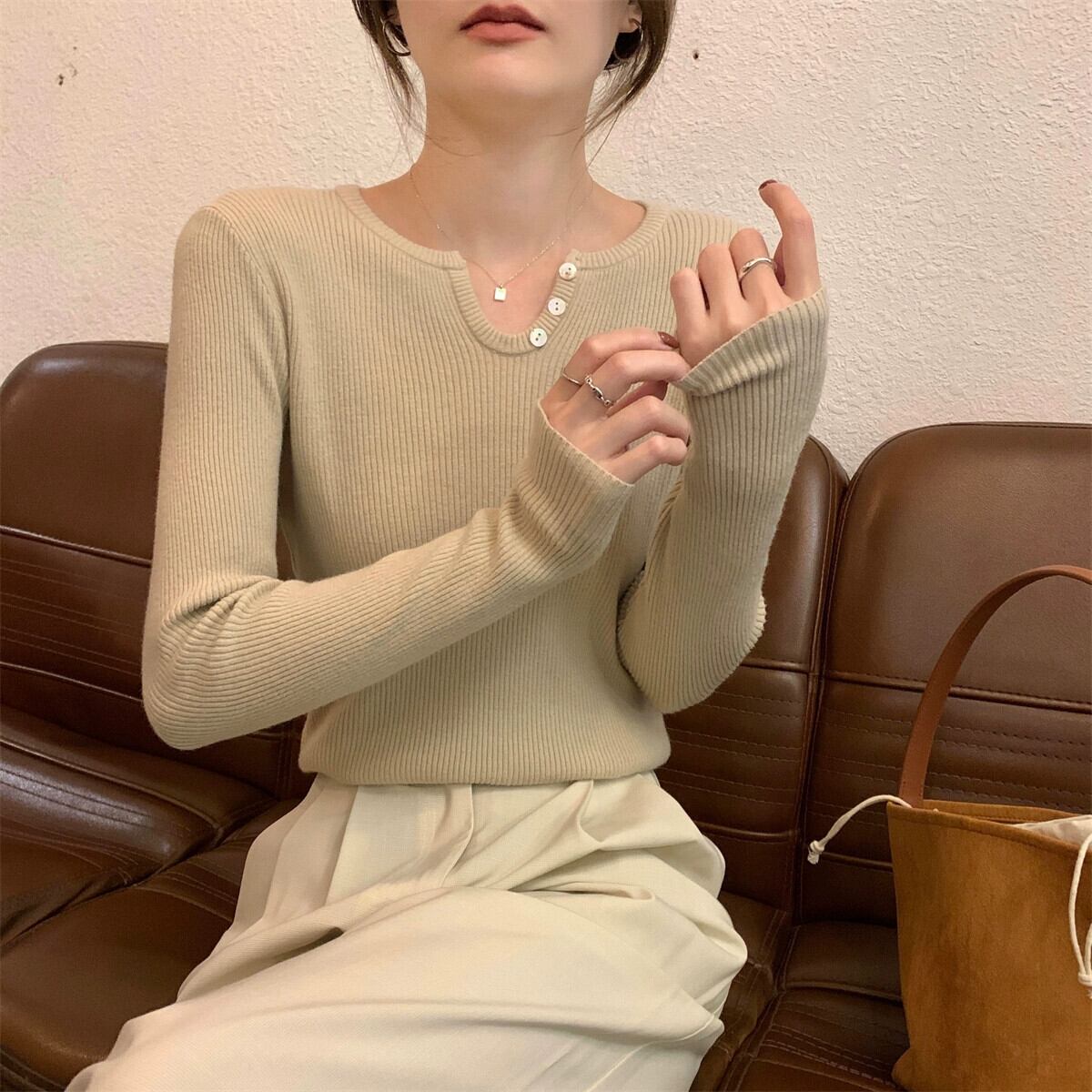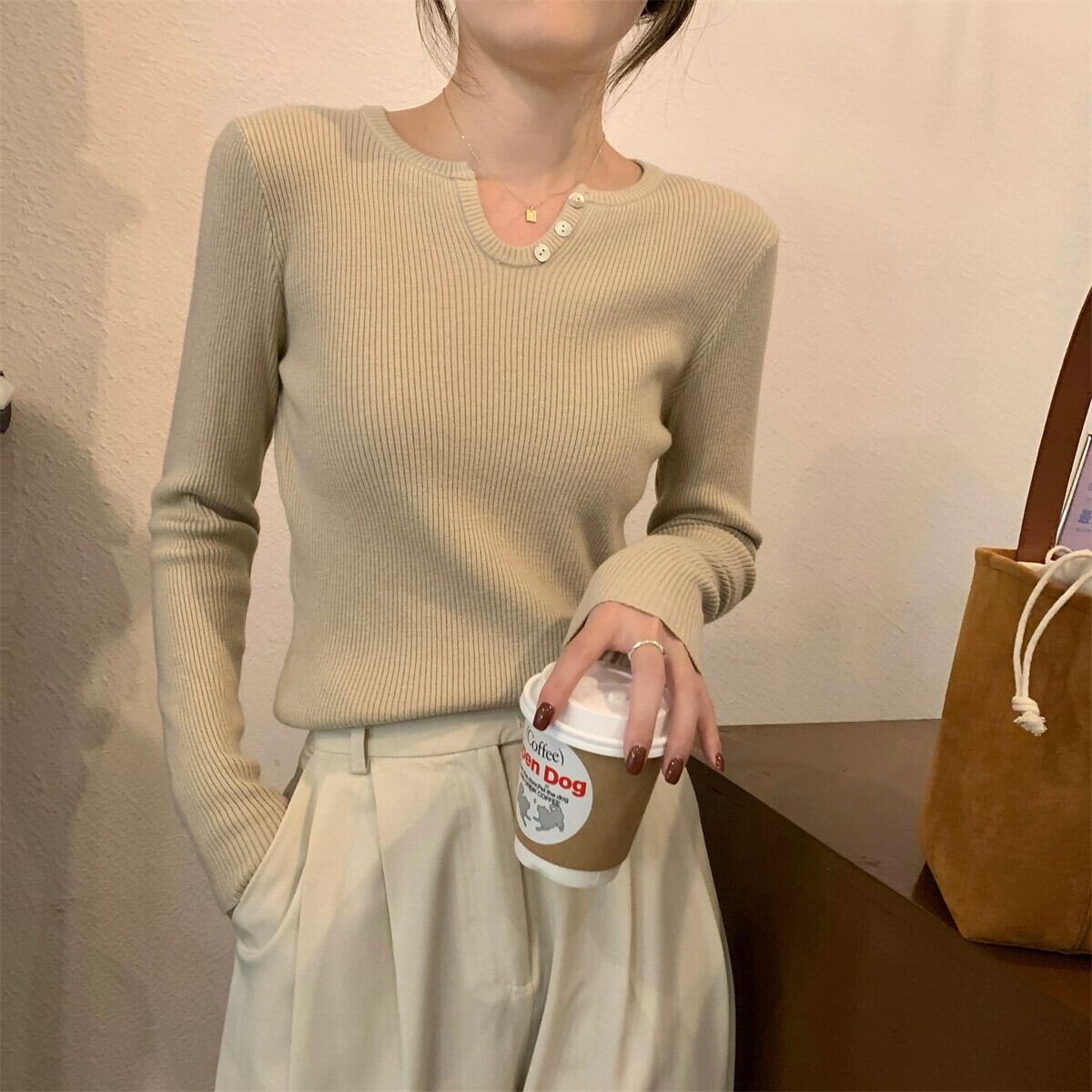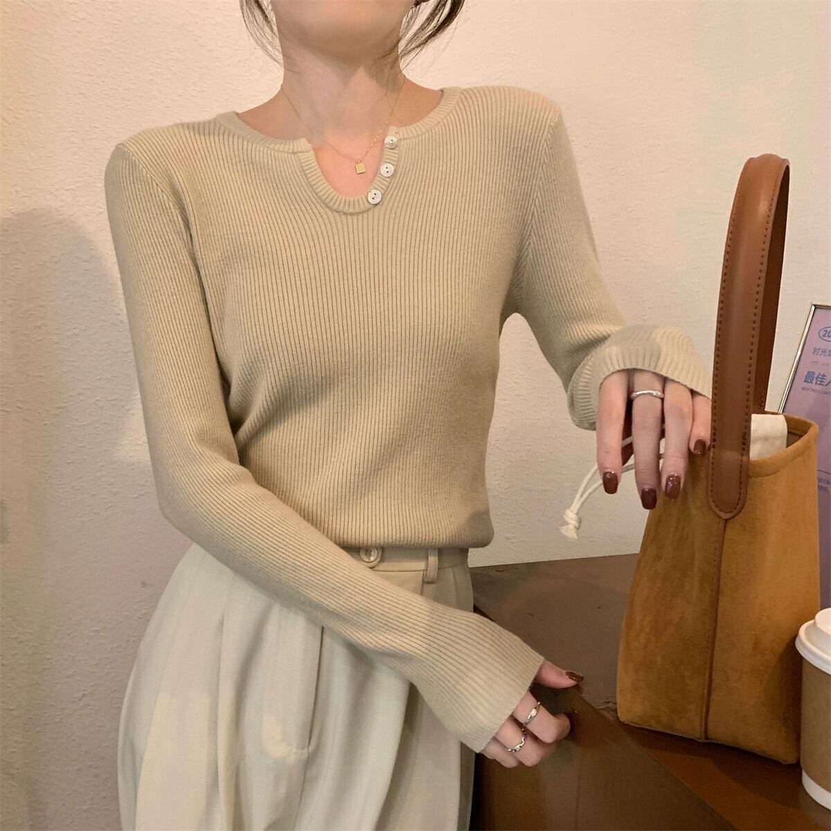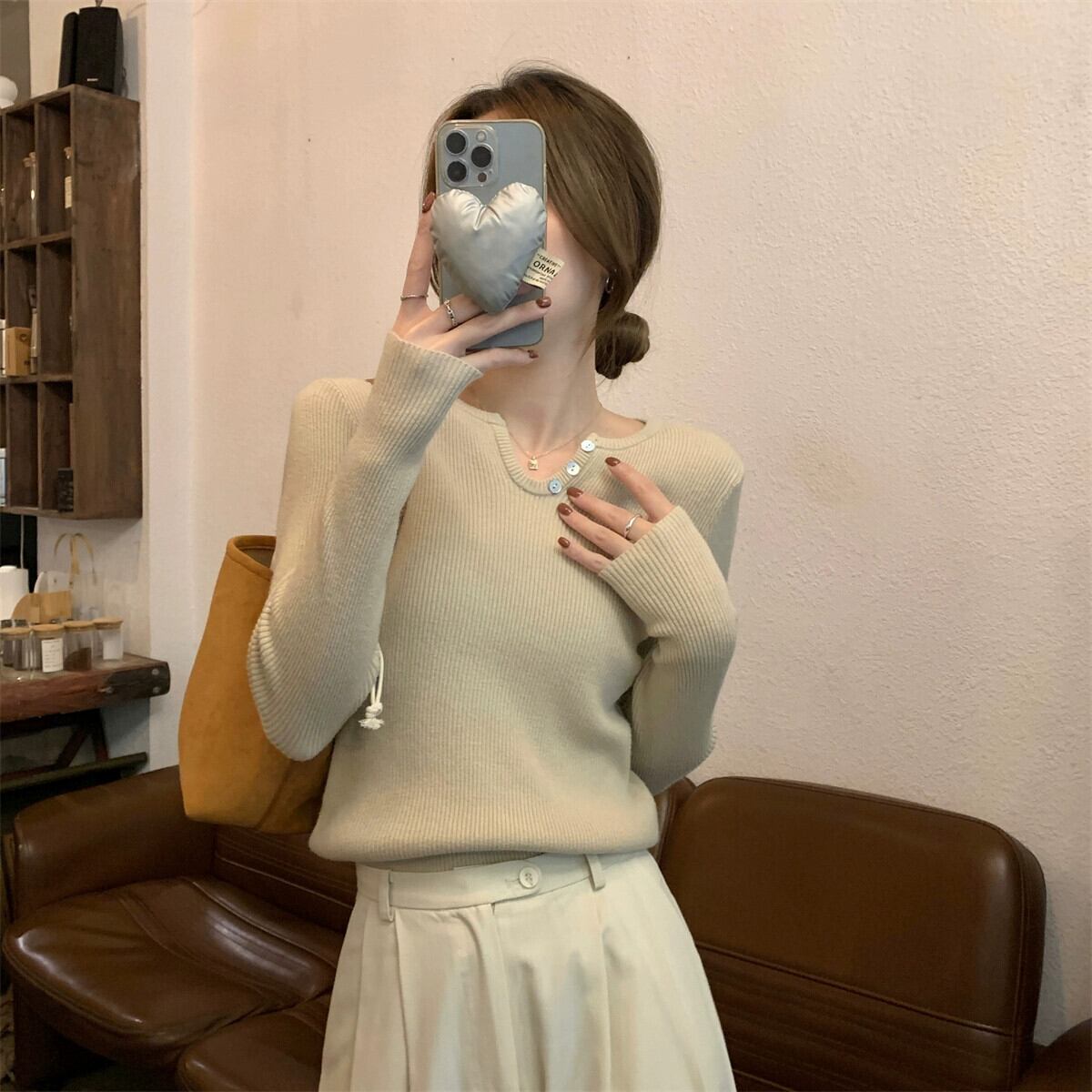 アプリコットボトリングシャツ 2023 新しい女性の秋冬スタイルファッショナブルでスタイリッシュなインナー V ネック長袖ニットセーター ロング オータム 秋物 ウィンター 冬物 Vネック 7460034457632176 | framboise21