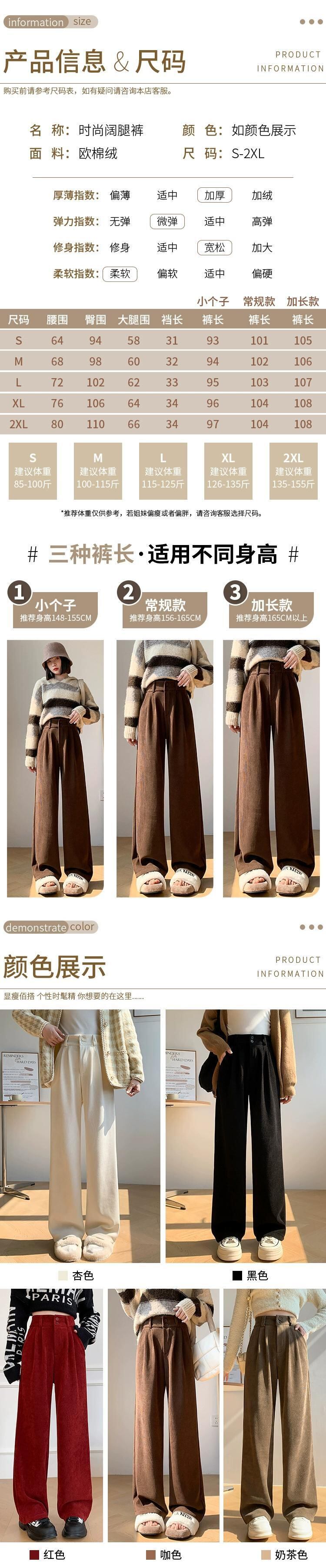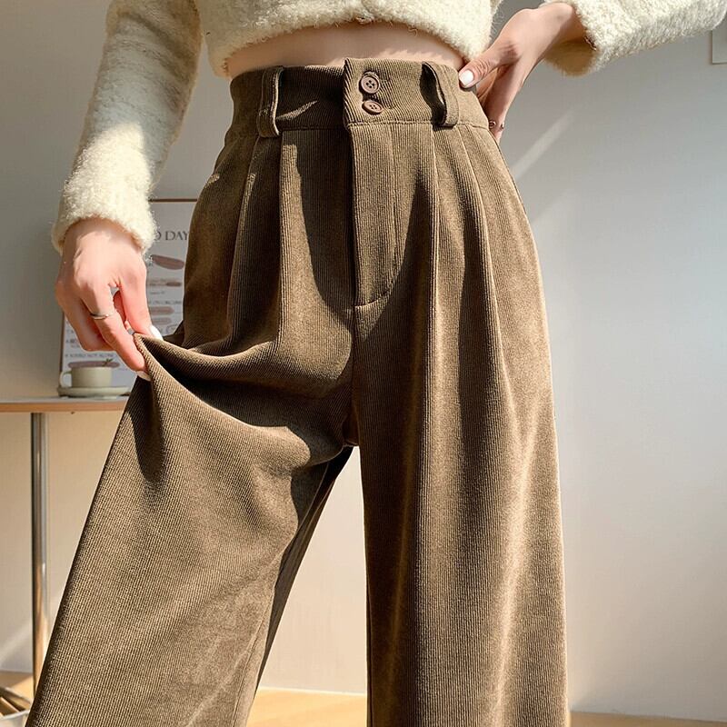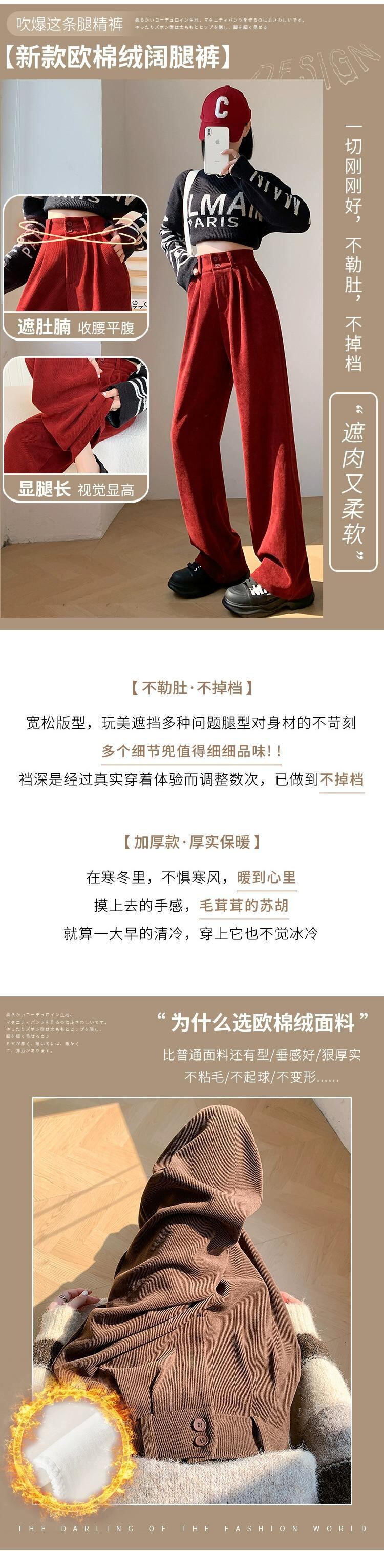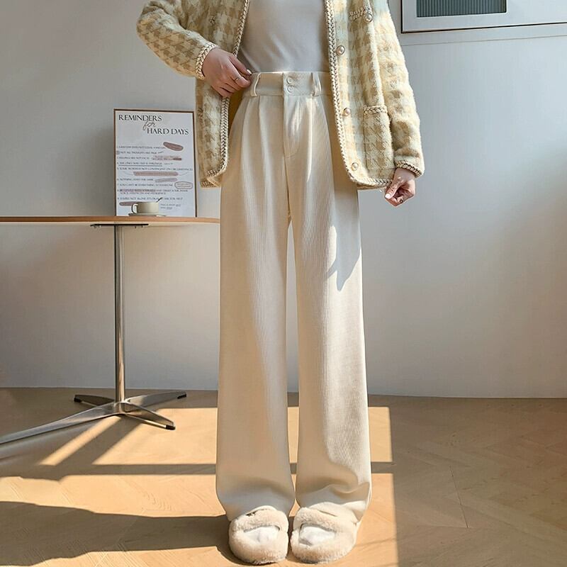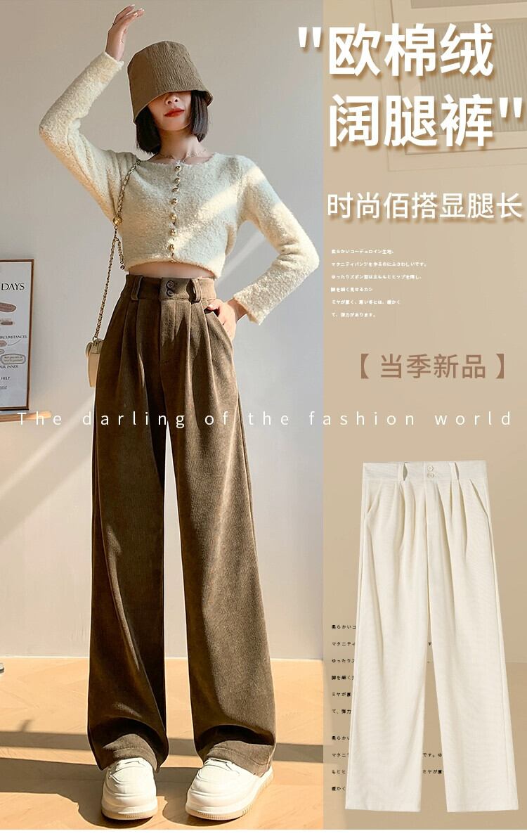 シェニール ワイドレッグ パンツ レディース、秋と冬のハイウエスト ドレープ スーツ パンツ、ルーズでスリム、フロアレングスのカジュアル ストレートレッグ ベルベット パンツ オータム 秋物 ウィンター 冬物 7460075529658314 | framboise21