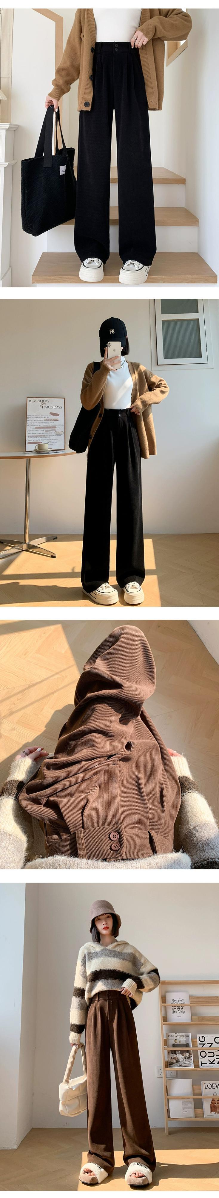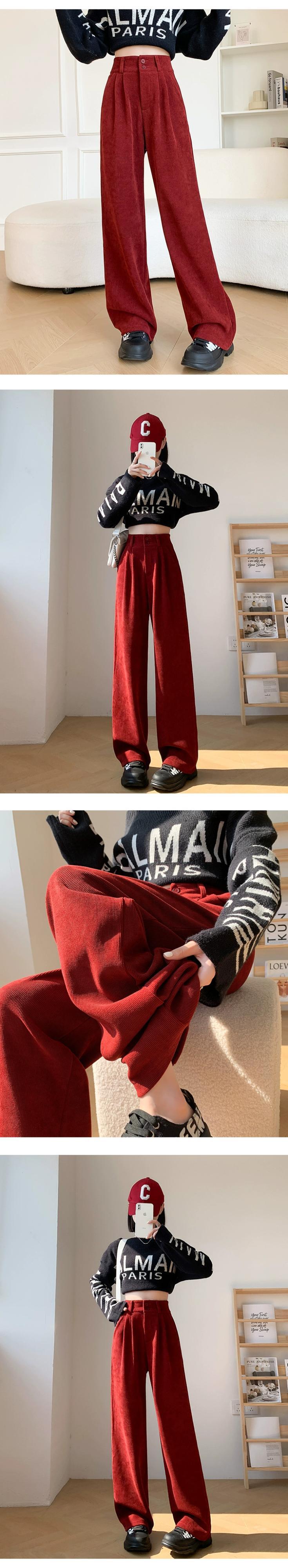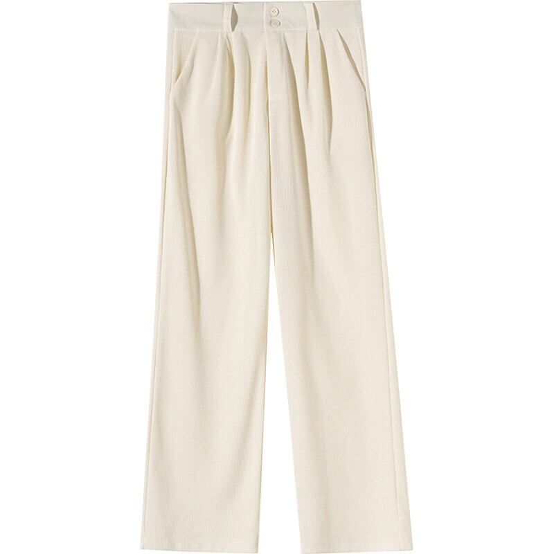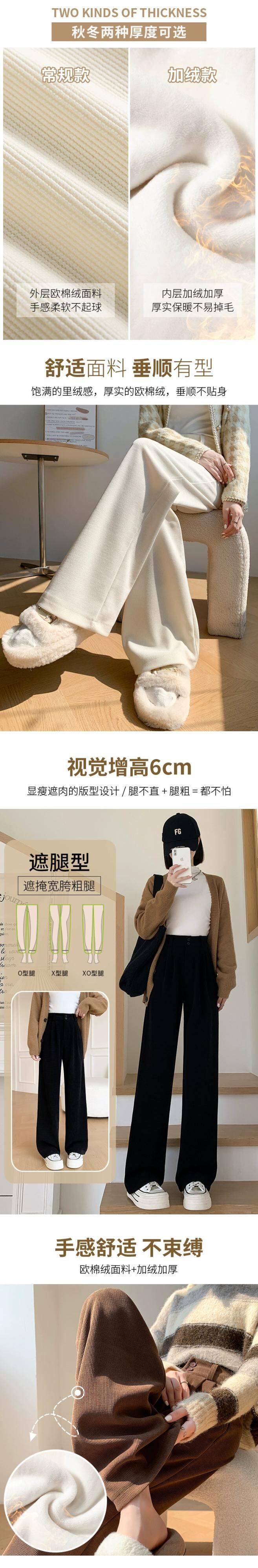 シェニール ワイドレッグ パンツ レディース、秋と冬のハイウエスト ドレープ スーツ パンツ、ルーズでスリム、フロアレングスのカジュアル ストレートレッグ ベルベット パンツ オータム 秋物 ウィンター 冬物 7460075529658314 | framboise21