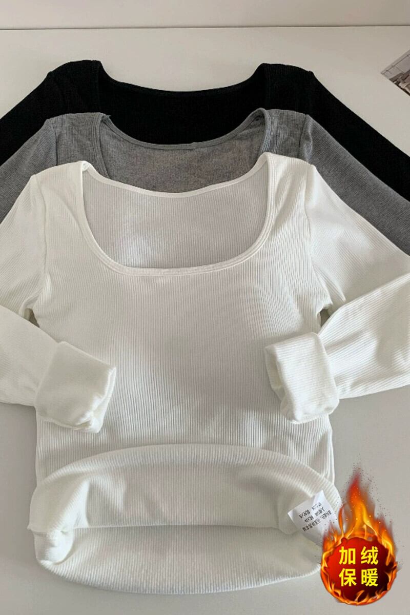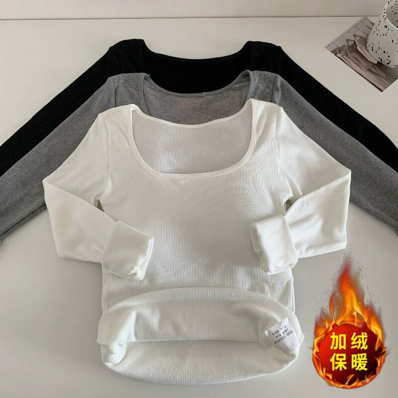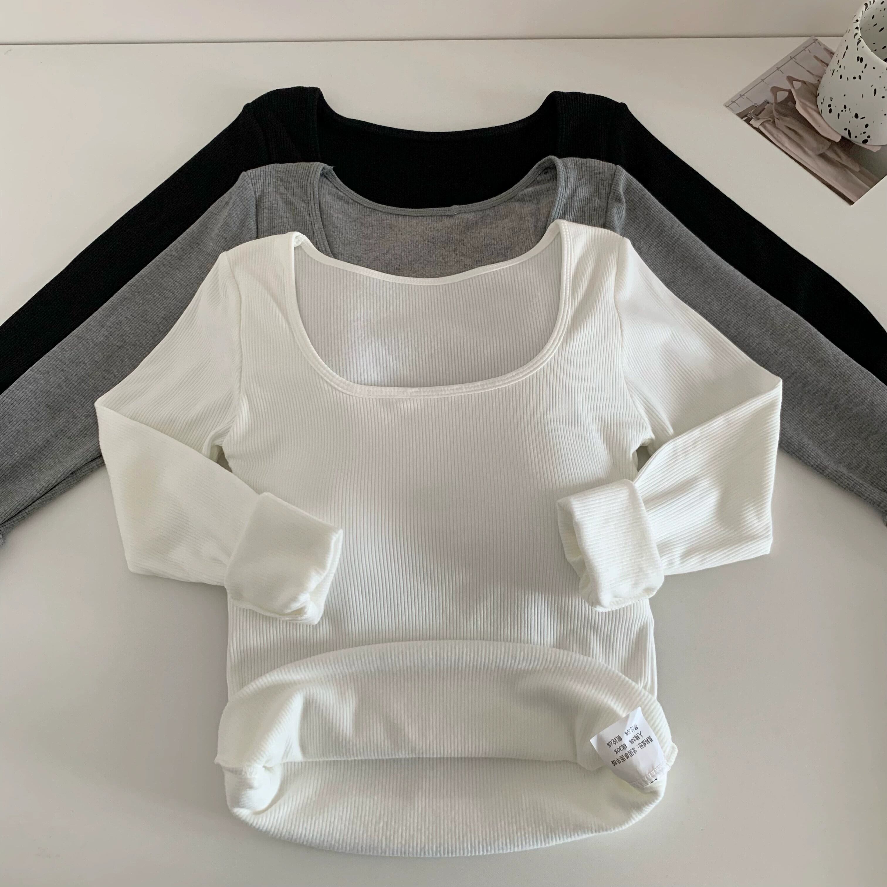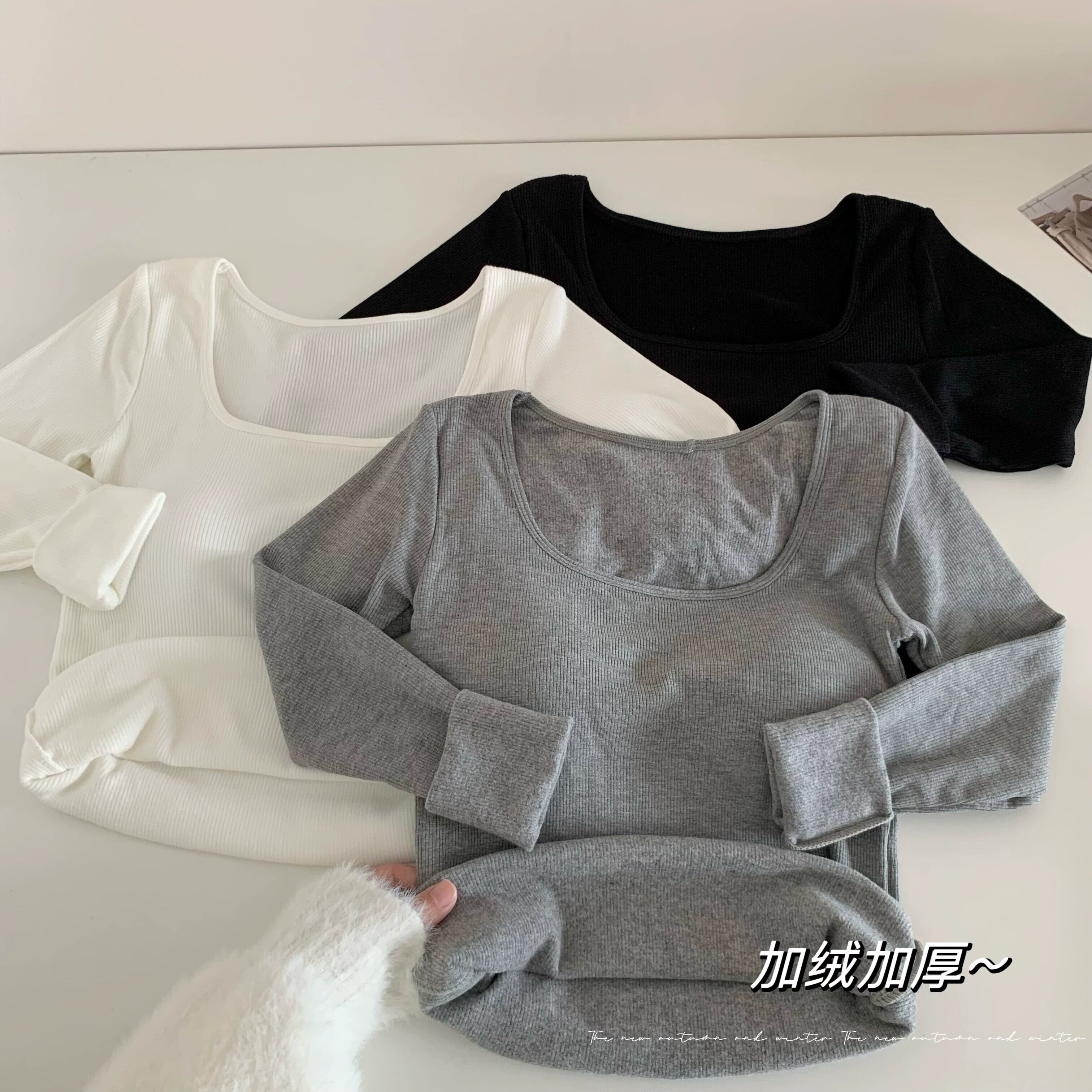 秋冬の厚手のベルベットスクエアネックボトリングシャツレディース、洋風インナー、着やせ、胸パッド付き起毛長袖Tシャツ ロング オータム 秋物 ウィンター 冬物 スクウェア 7460060139628238 | framboise21