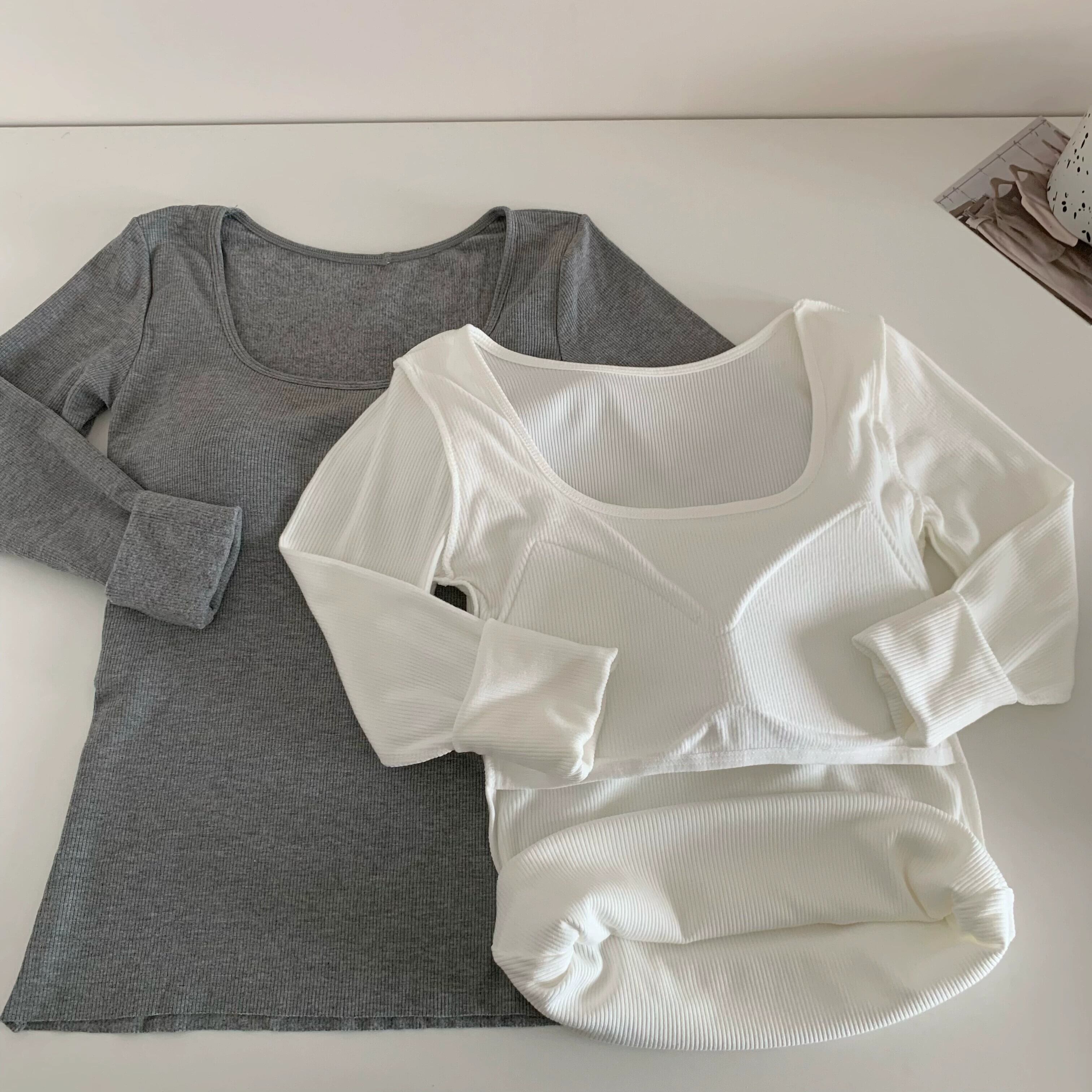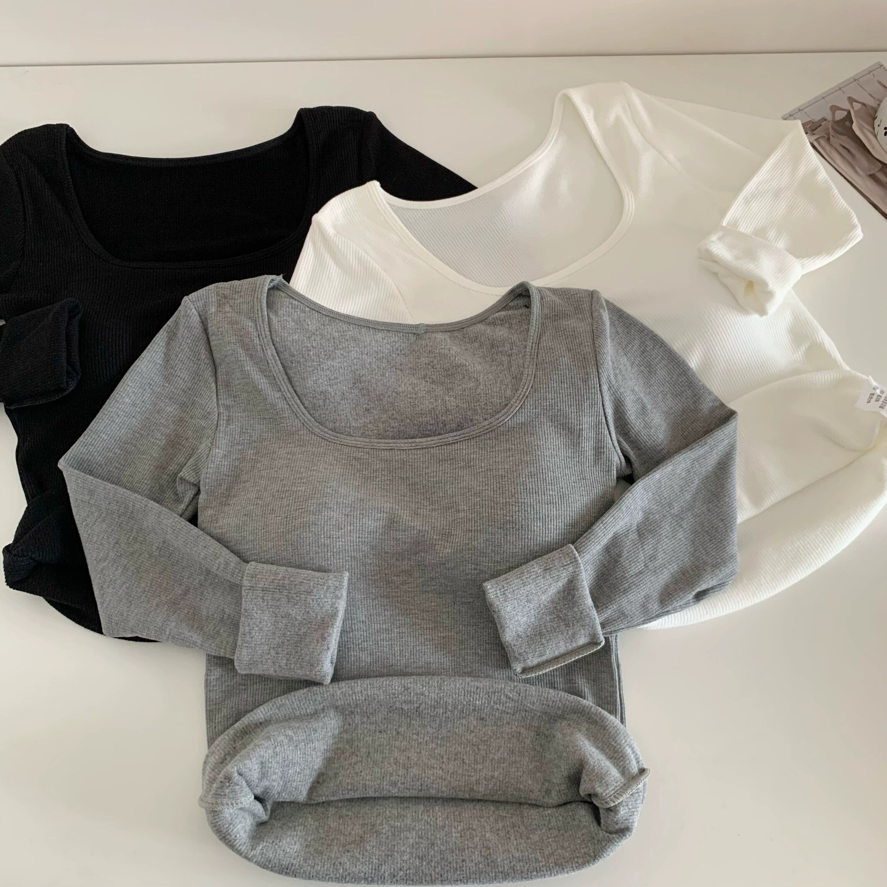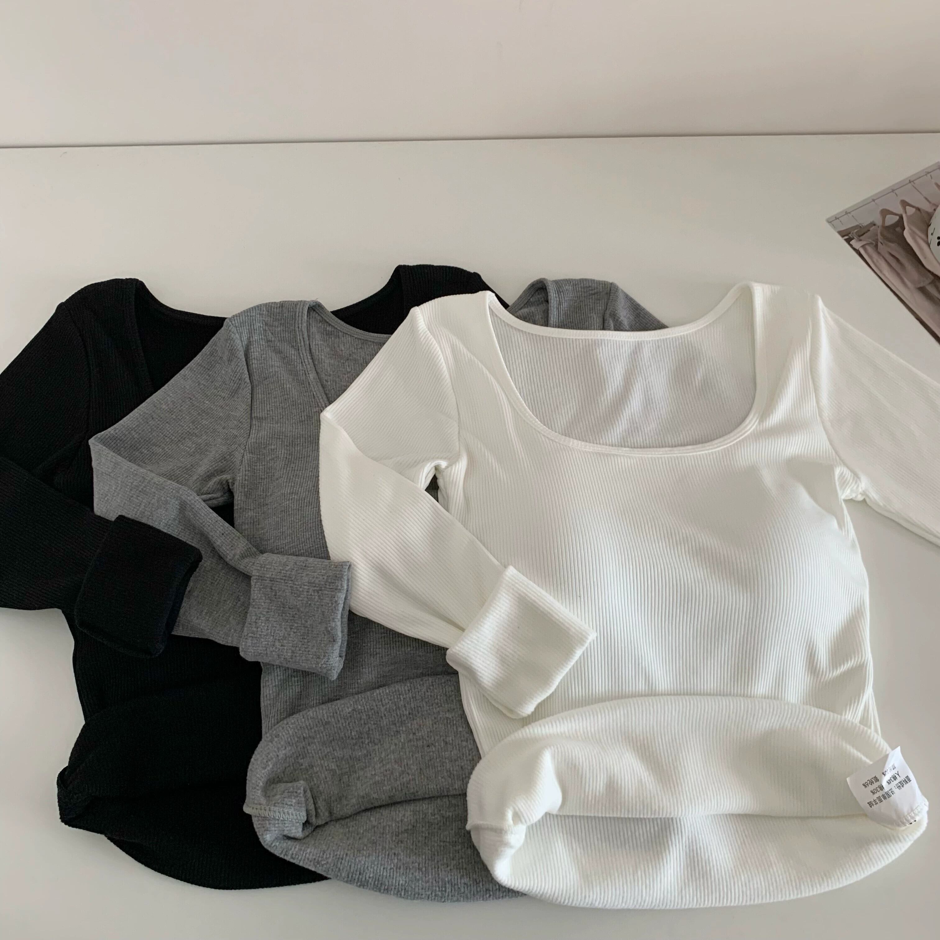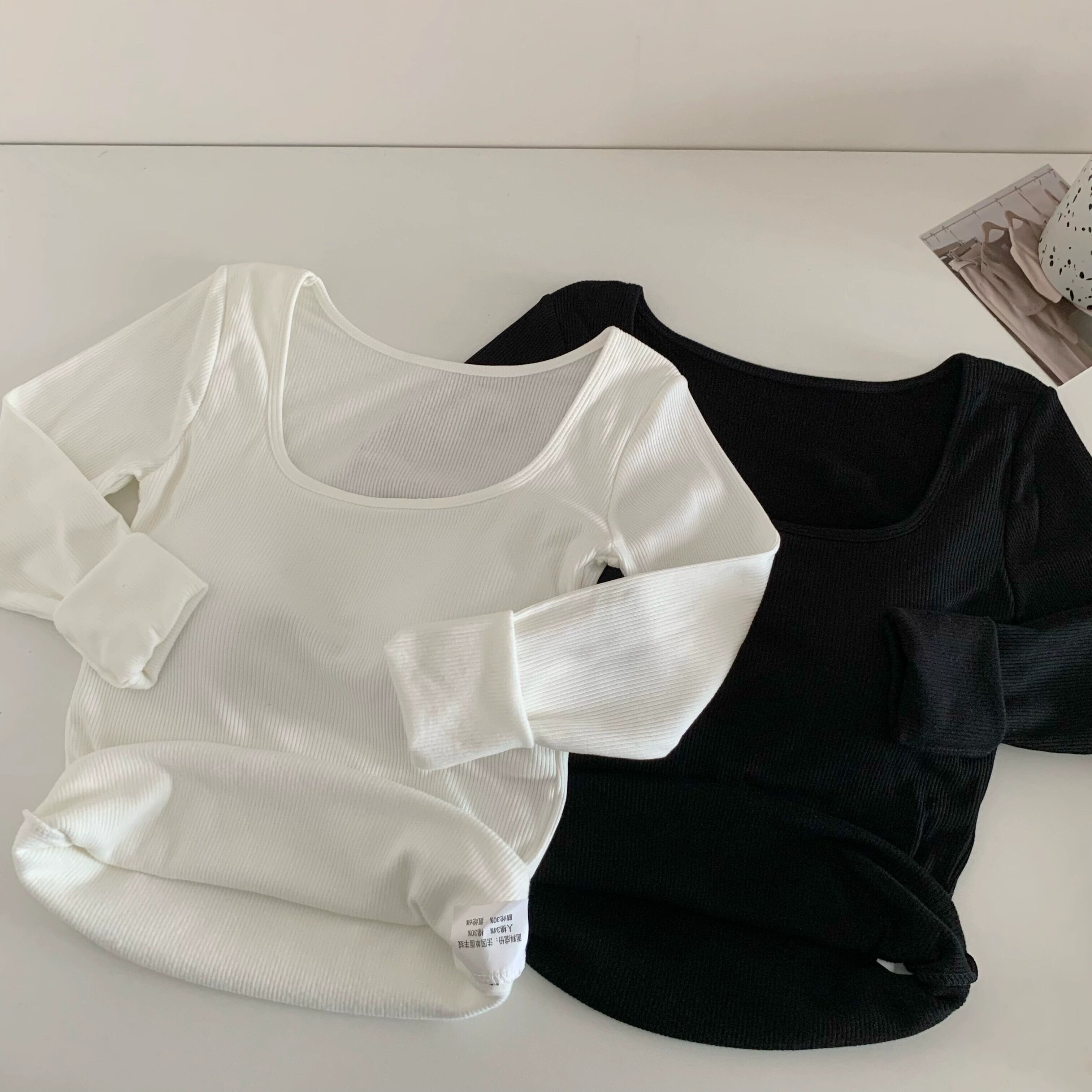 秋冬の厚手のベルベットスクエアネックボトリングシャツレディース、洋風インナー、着やせ、胸パッド付き起毛長袖Tシャツ ロング オータム 秋物 ウィンター 冬物 スクウェア 7460060139628238 | framboise21