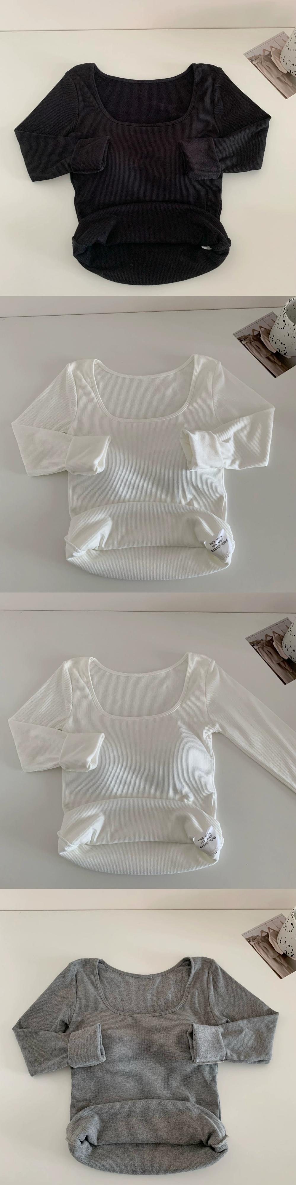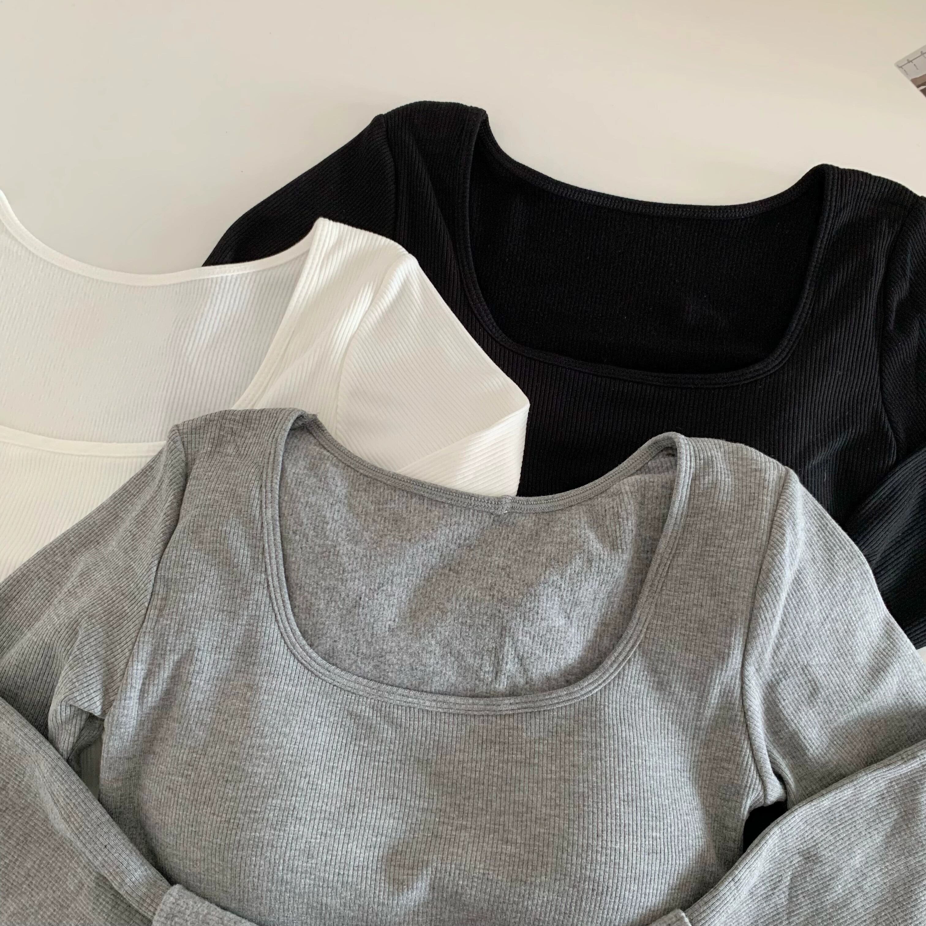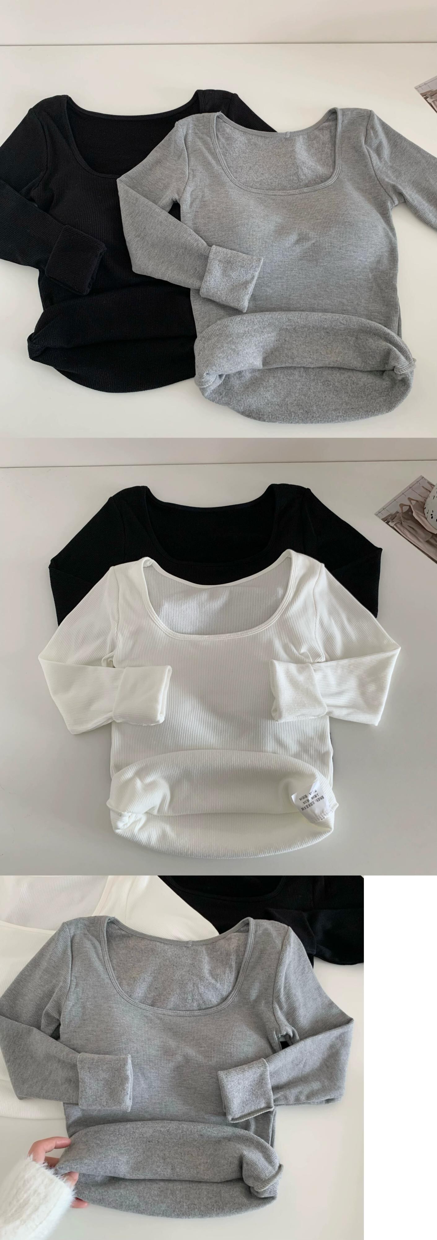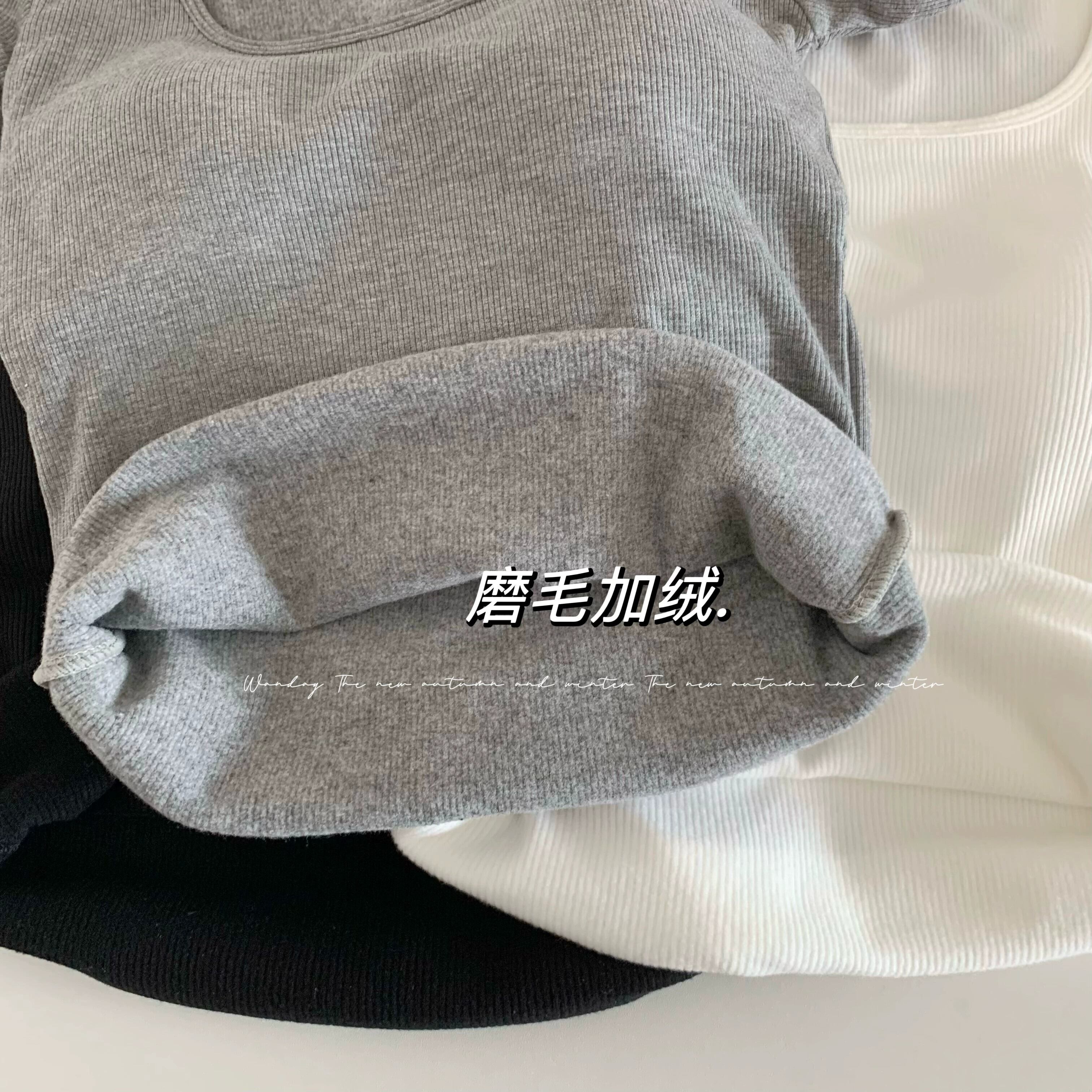 秋冬の厚手のベルベットスクエアネックボトリングシャツレディース、洋風インナー、着やせ、胸パッド付き起毛長袖Tシャツ ロング オータム 秋物 ウィンター 冬物 スクウェア 7460060139628238 | framboise21
