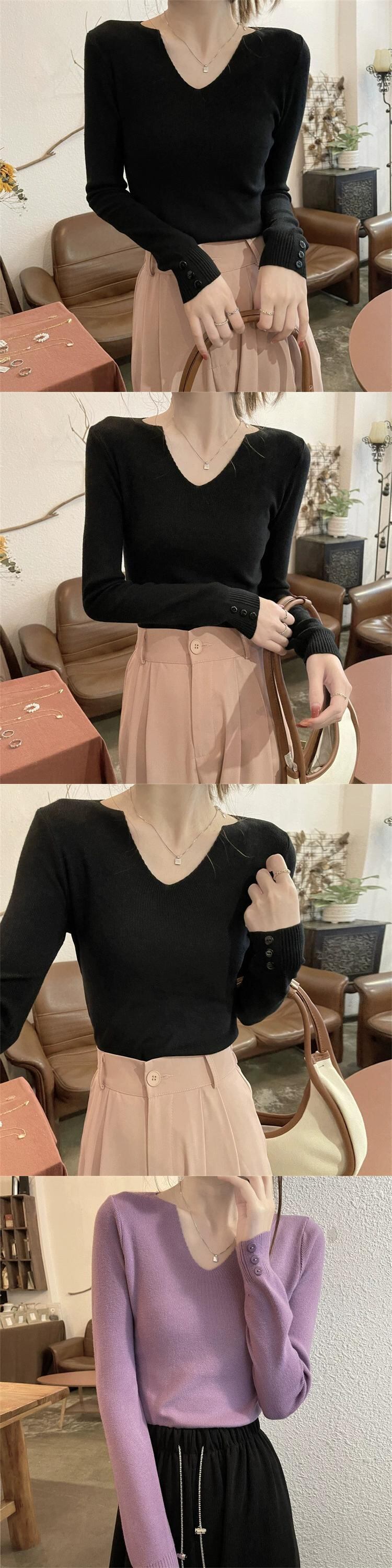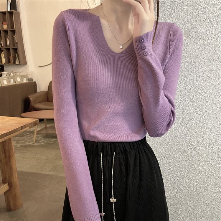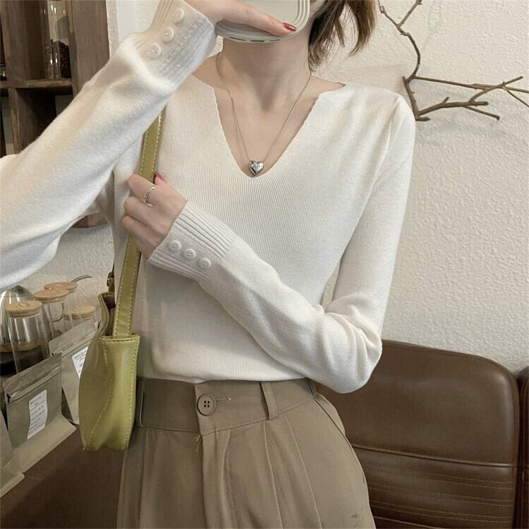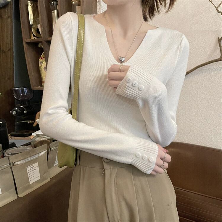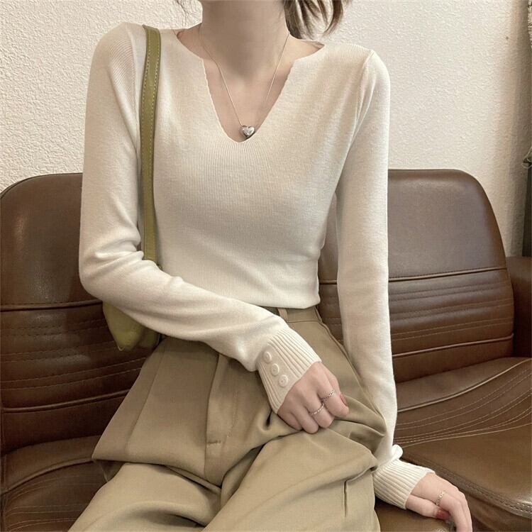 アプリコット V ネックボトリングシャツ 2023 新しい女性の秋と冬のファッショナブルなスタイルのインナー、スリムフィット長袖ニットセーター ロング オータム 秋物 ウィンター 冬物 Vネック 7460080064354224 | framboise21