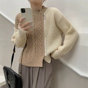 ステッチコントラストジッパーツイストセータージャケット女性の秋と冬のルーズアウターウェアデザイン肥厚長袖ニットカーディガン ロング オータム 秋物 ウィンター 冬物 7460019235591561