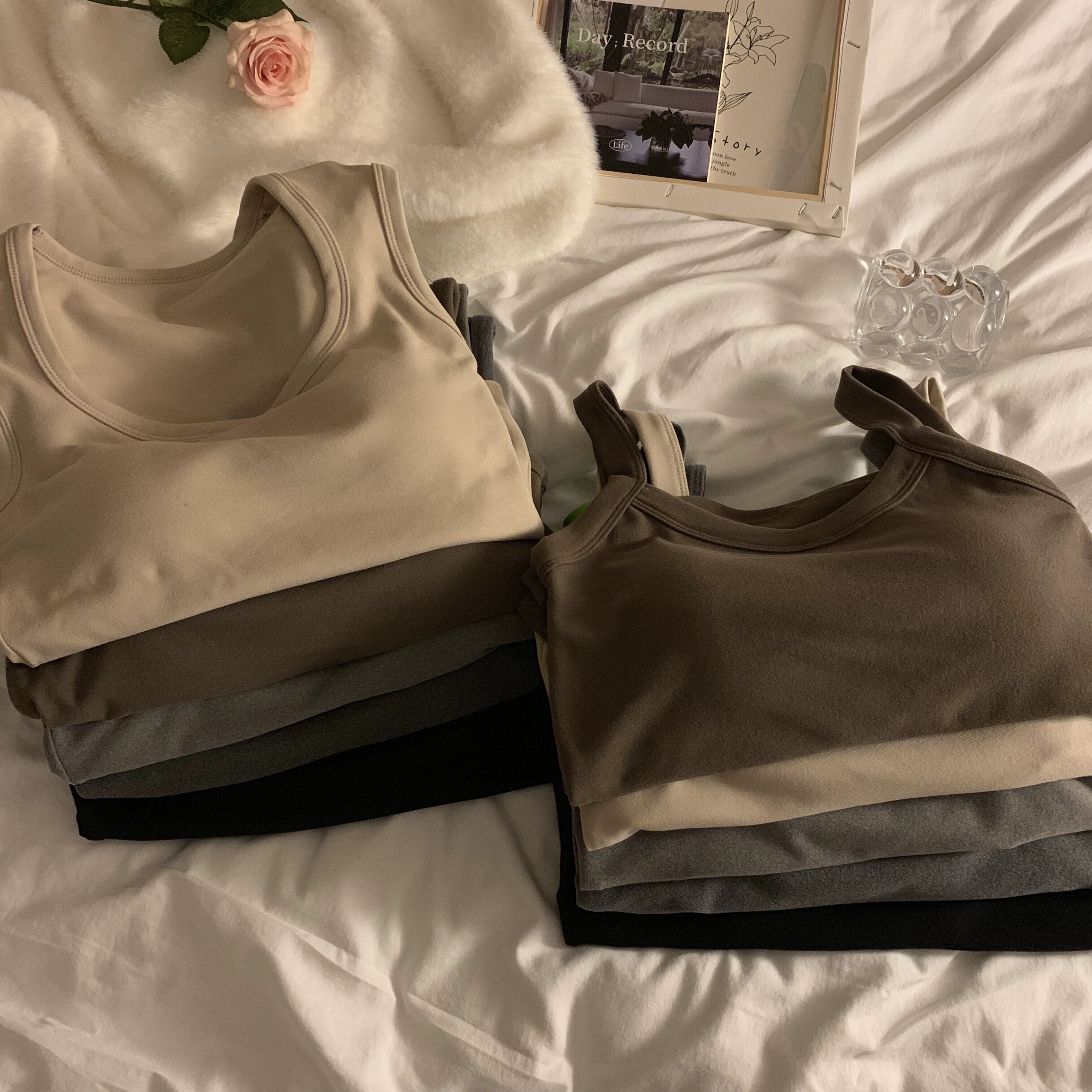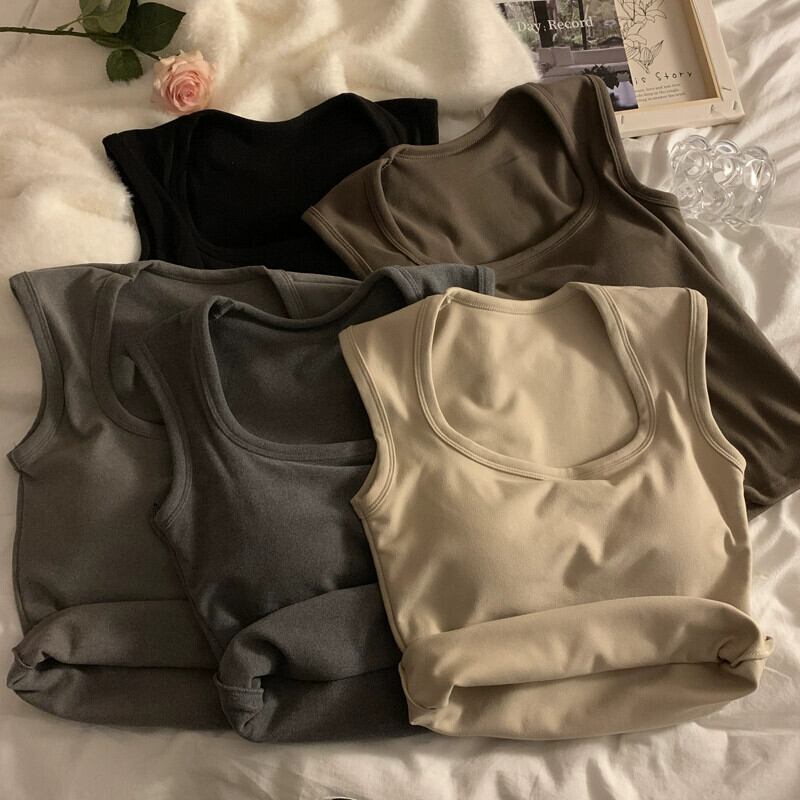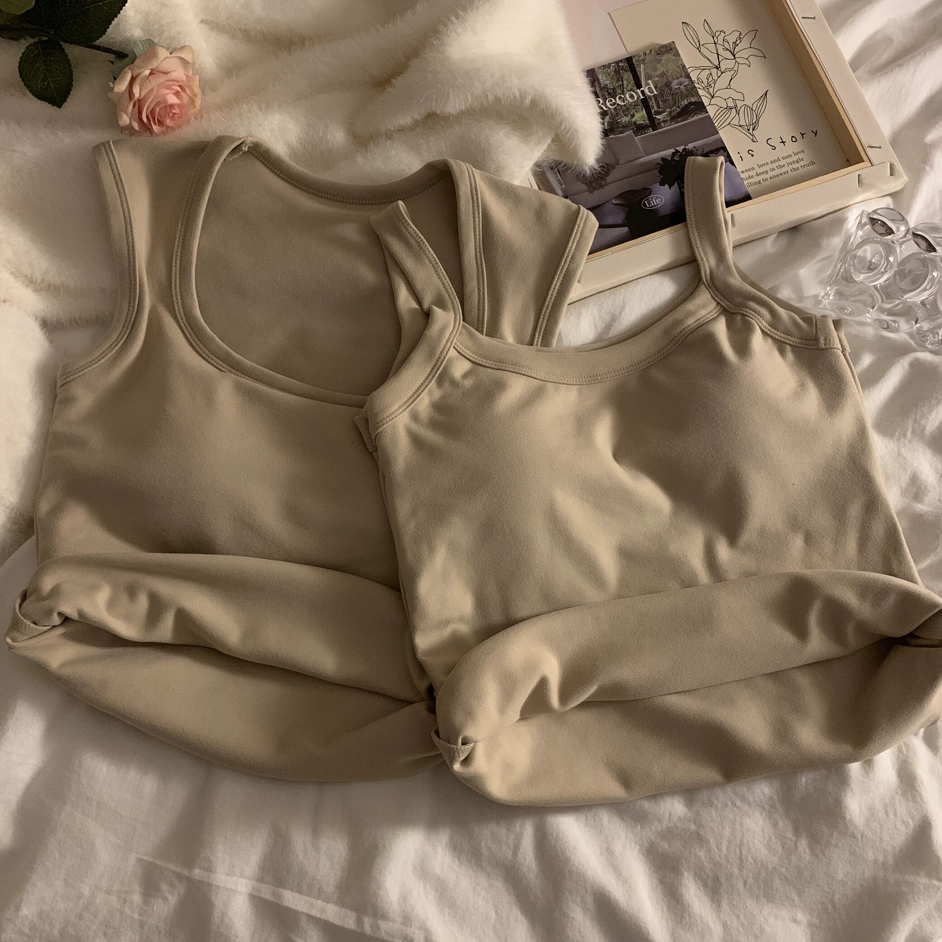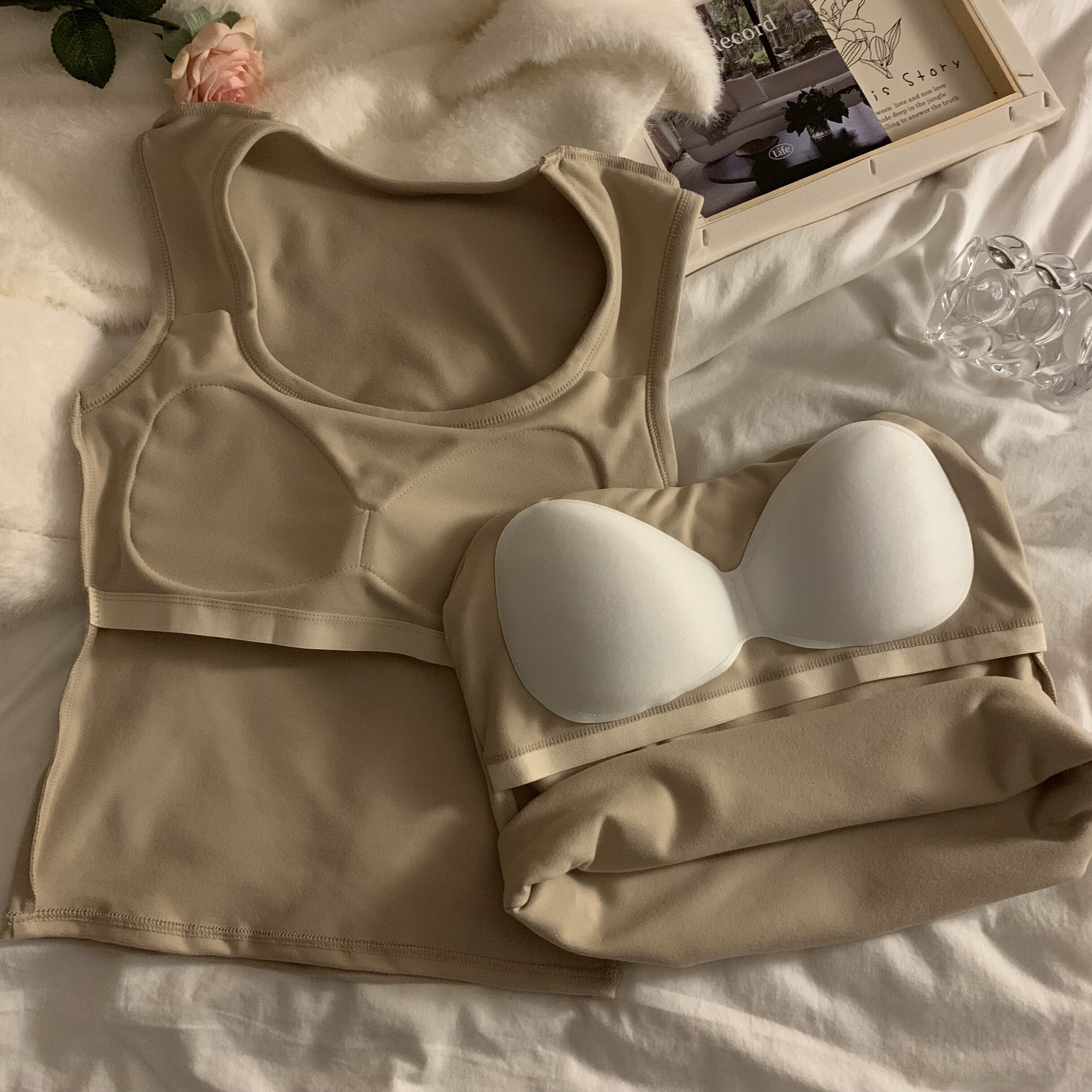女性の秋と冬の自己発熱サーマル下着スリムフィットボトリングショートトップ、サスペンダーベルトとパッド入りドイツベルベットベスト付き オータム 秋物 ウィンター 冬物 ハーネス 7460090737804412 | framboise21