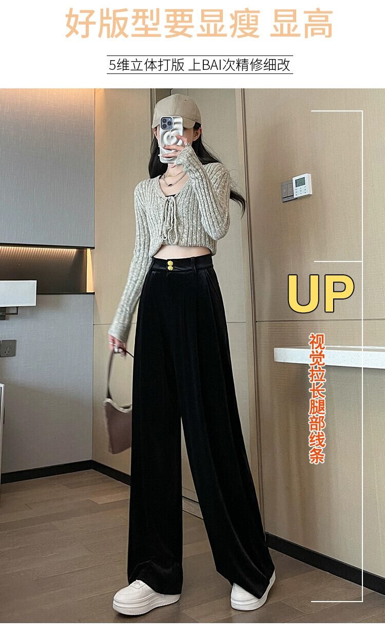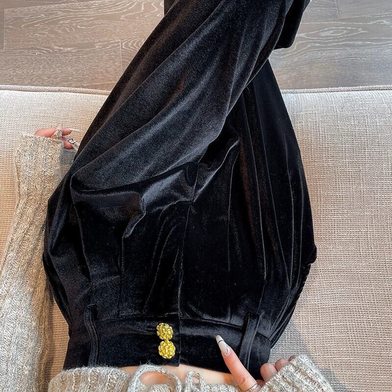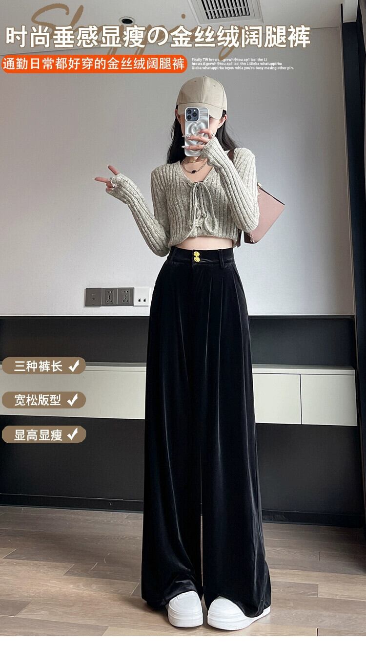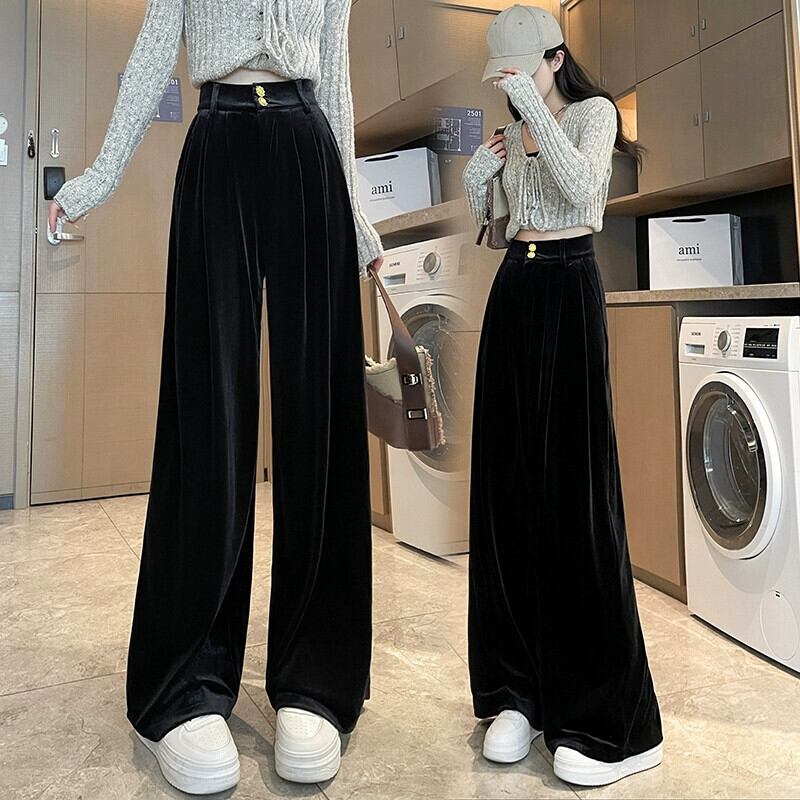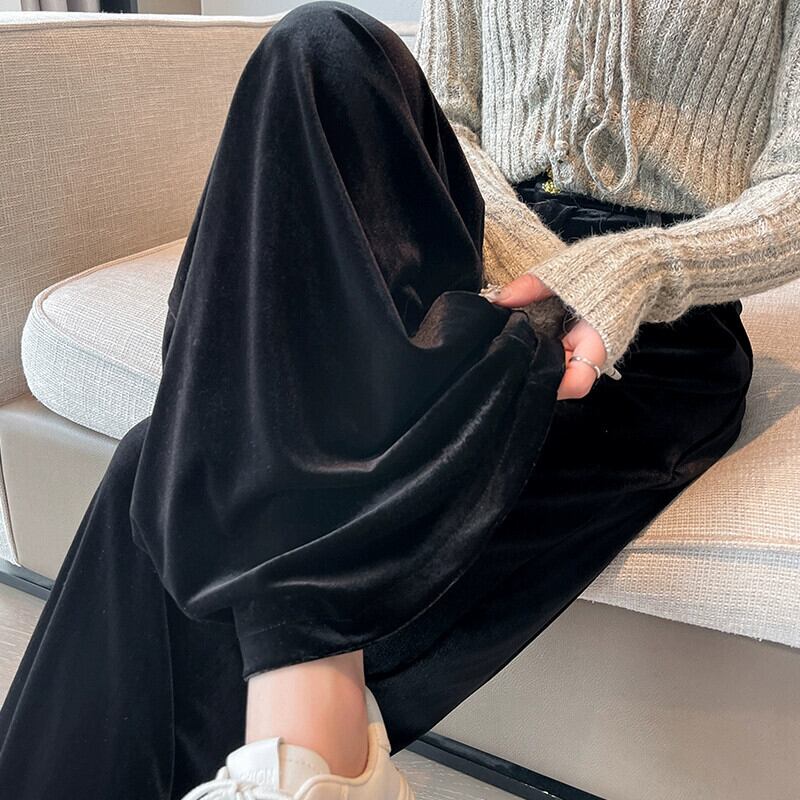 -秋と冬のブラックゴールドベルベットパンツの女性、怠惰なスタイル、ルーズでカジュアルなストレートハイウエストワイドレッグパンツ オータム 秋物 ウィンター 冬物 7460015318727398 | framboise21