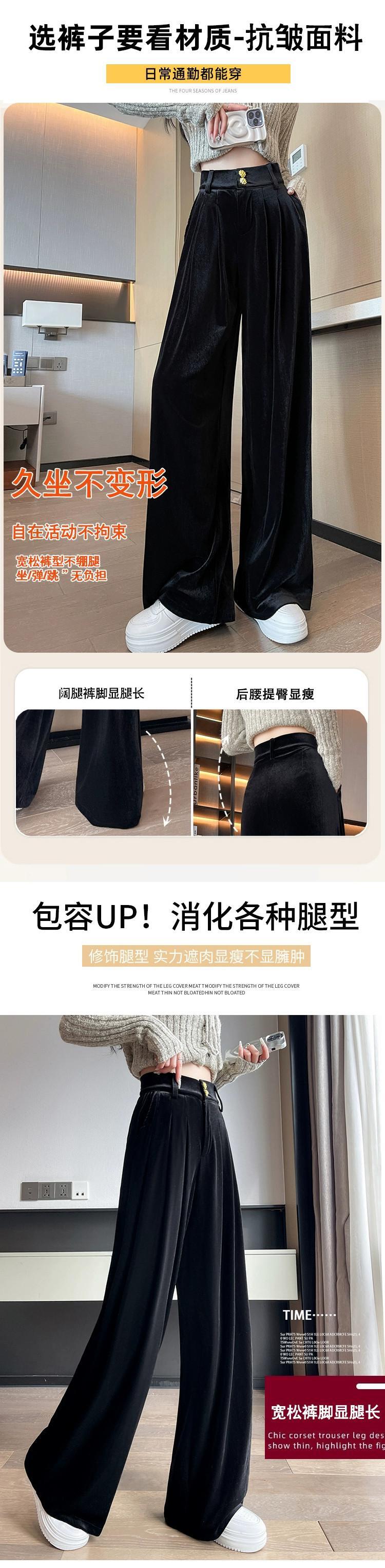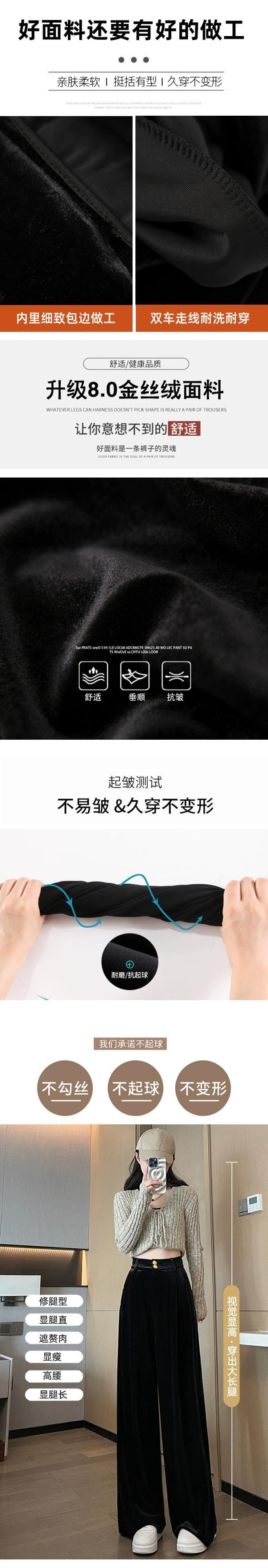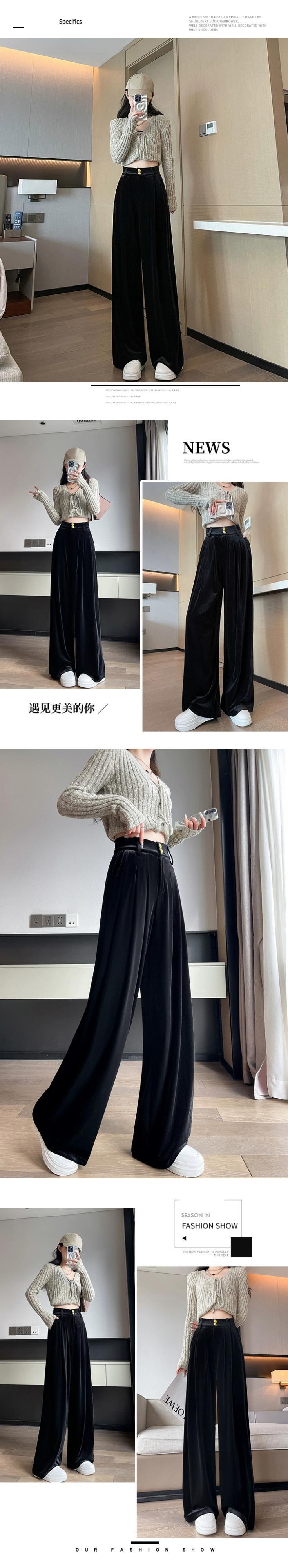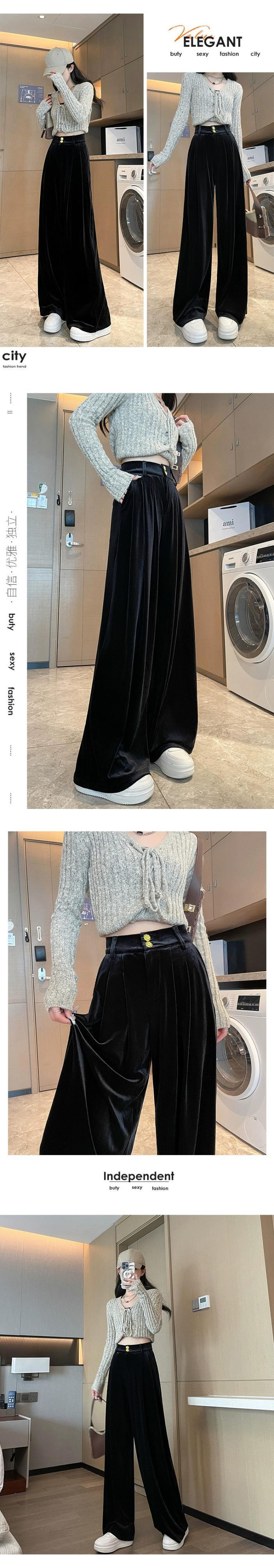 -秋と冬のブラックゴールドベルベットパンツの女性、怠惰なスタイル、ルーズでカジュアルなストレートハイウエストワイドレッグパンツ オータム 秋物 ウィンター 冬物 7460015318727398 | framboise21