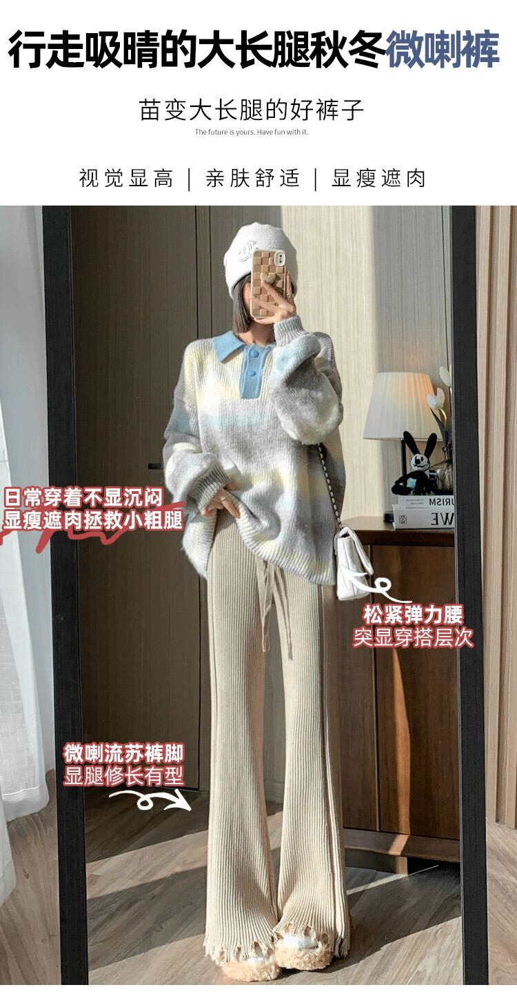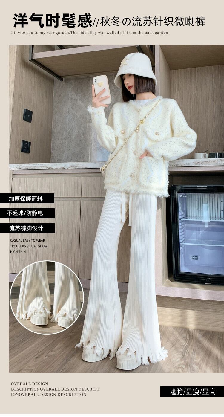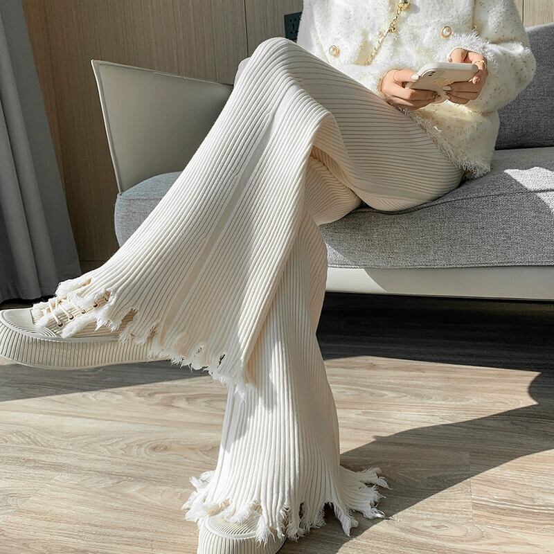 柔らかいもち米ニットワイドレッグパンツ女性の秋と冬のハイウエストもち米パンツ怠惰なスタイルルーズカジュアルストレートフレアパンツ レッド オータム 秋物 ウィンター 冬物 7460086583574762 | framboise21