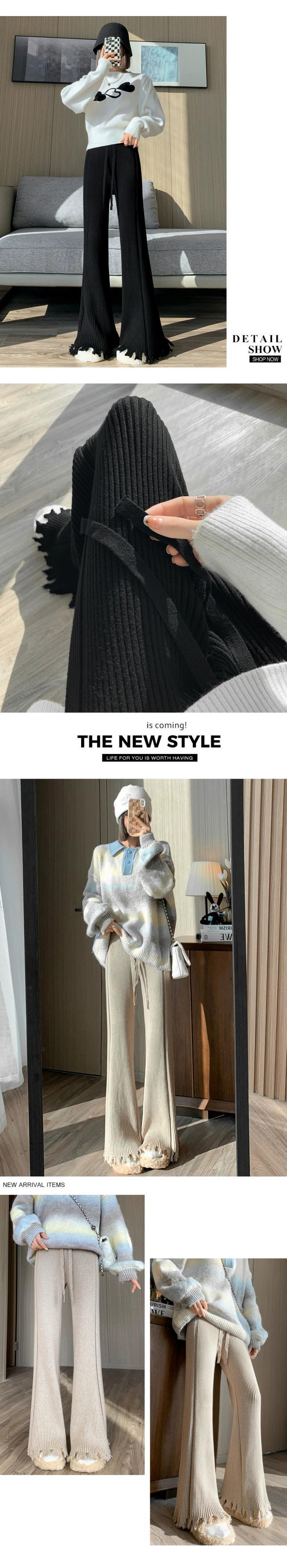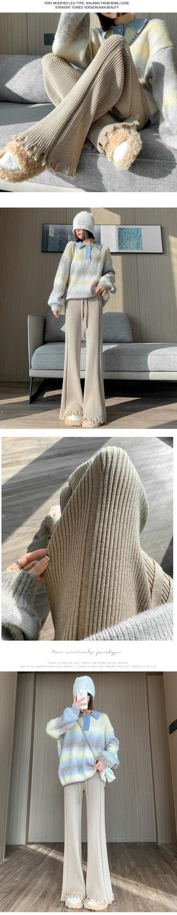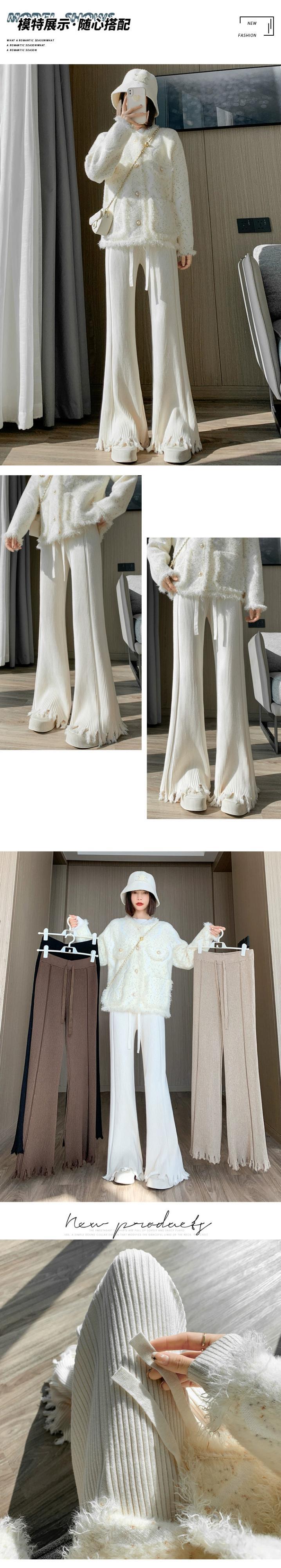 柔らかいもち米ニットワイドレッグパンツ女性の秋と冬のハイウエストもち米パンツ怠惰なスタイルルーズカジュアルストレートフレアパンツ レッド オータム 秋物 ウィンター 冬物 7460086583574762 | framboise21