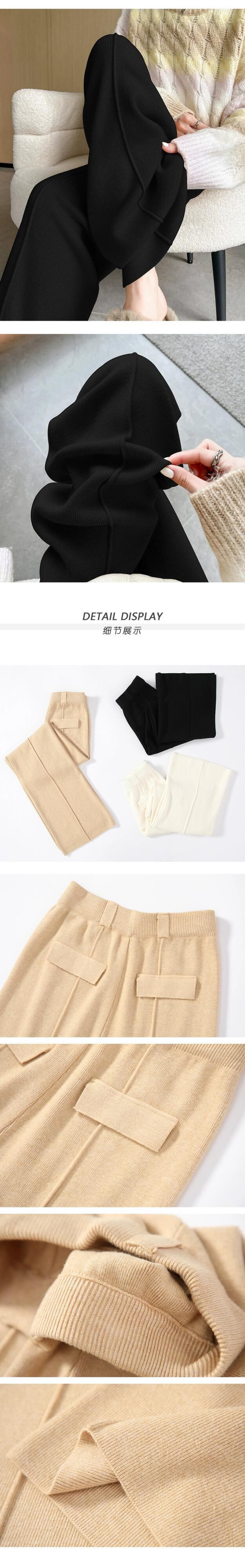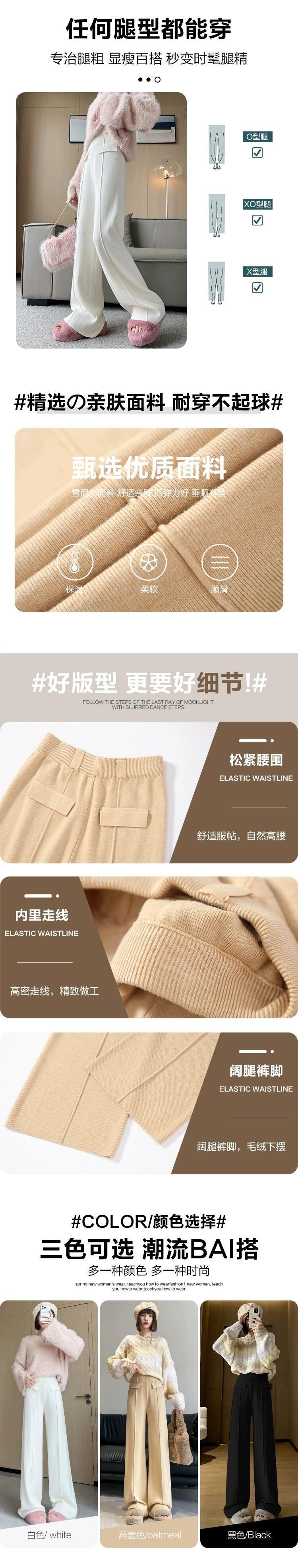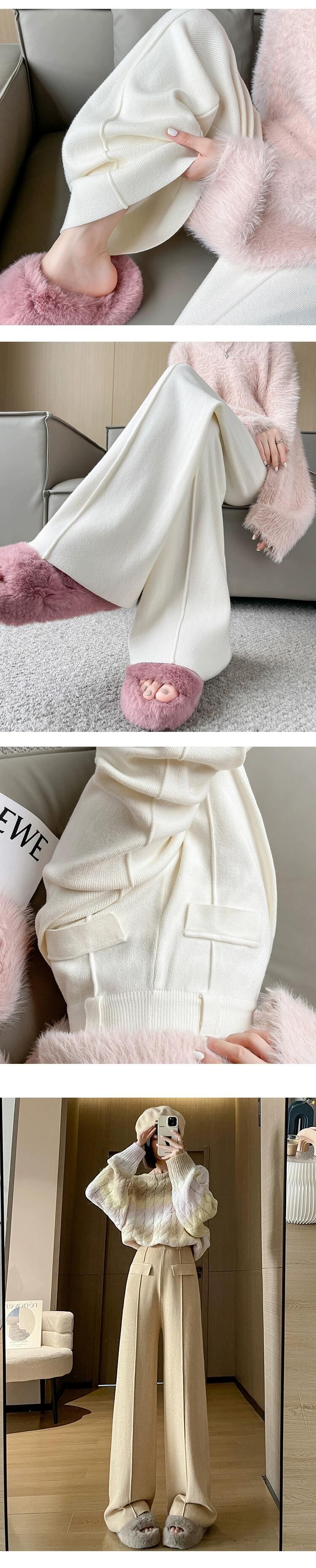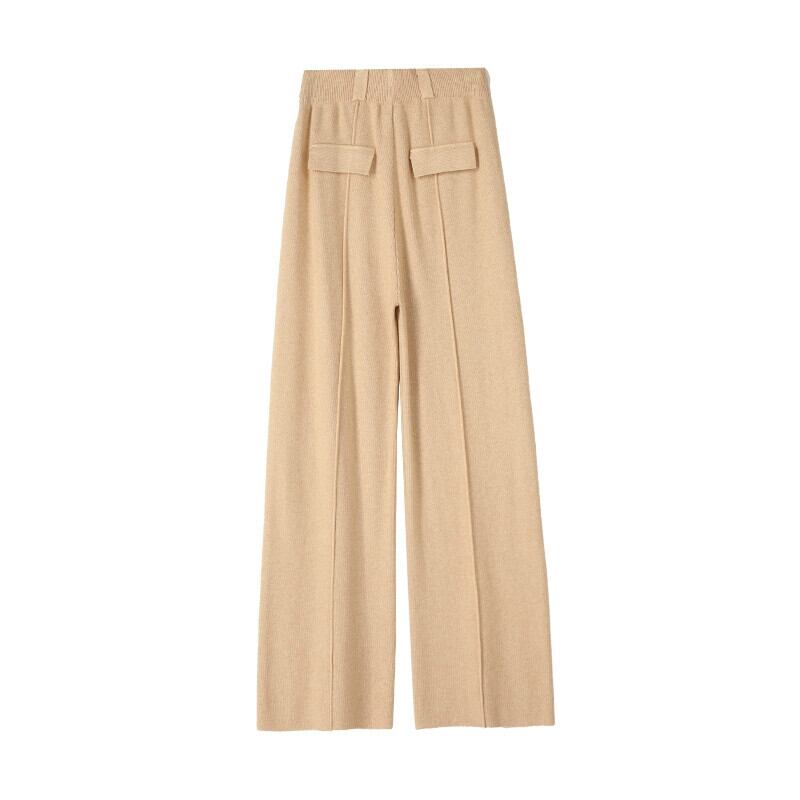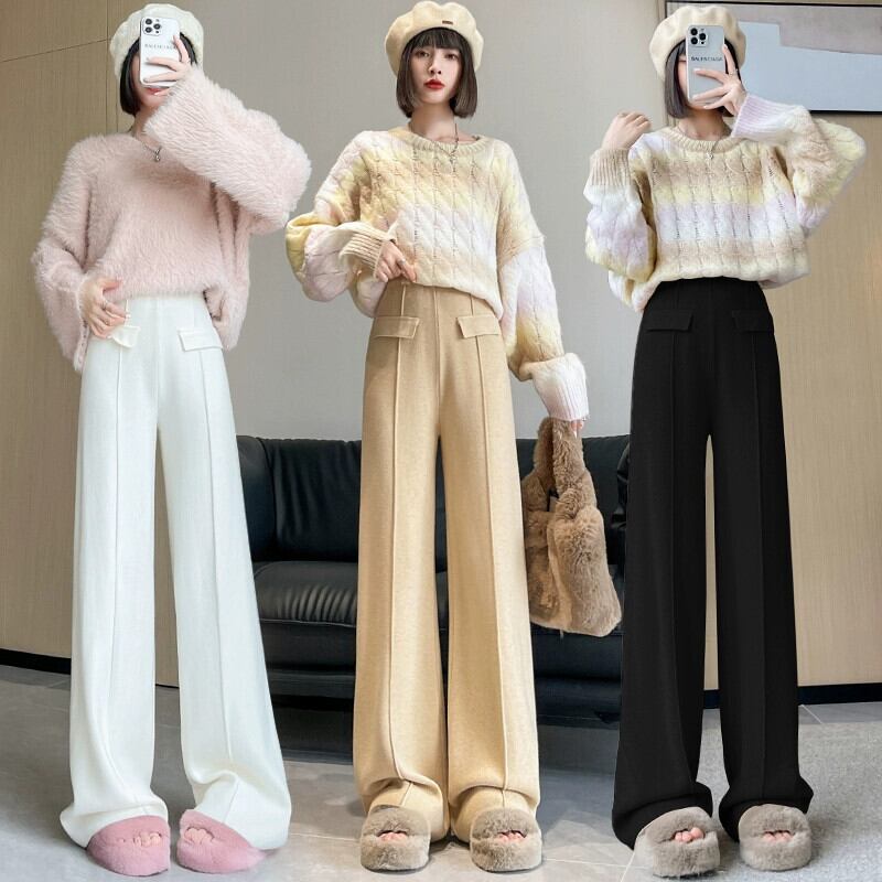 秋冬のソフトカシミアニットワイドレッグパンツレディース、レイジーホワイトソフトワックステリーパンツ、ハイウエストストレートカジュアルパンツ ウィンター 冬物 7460046775572906 | framboise21