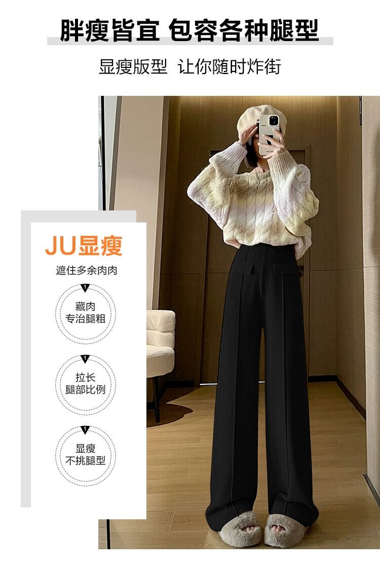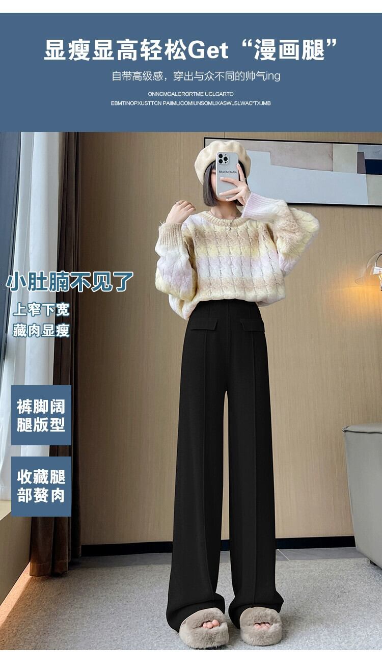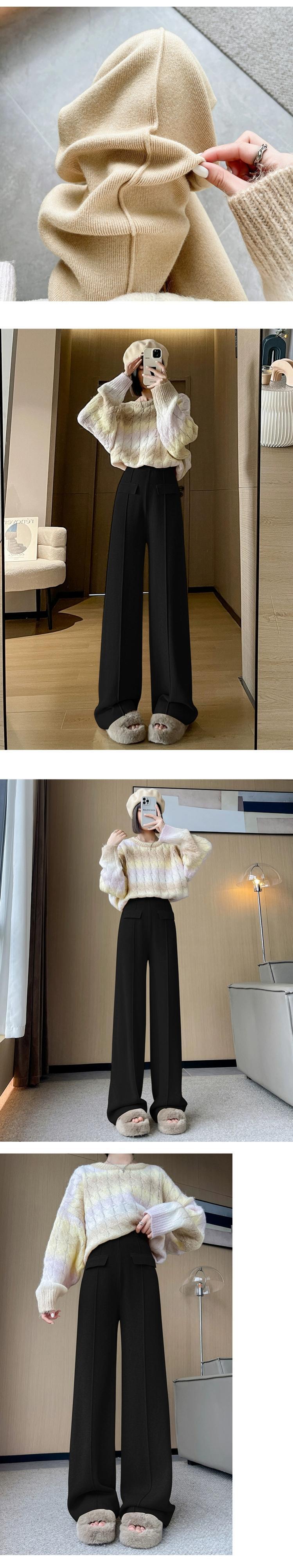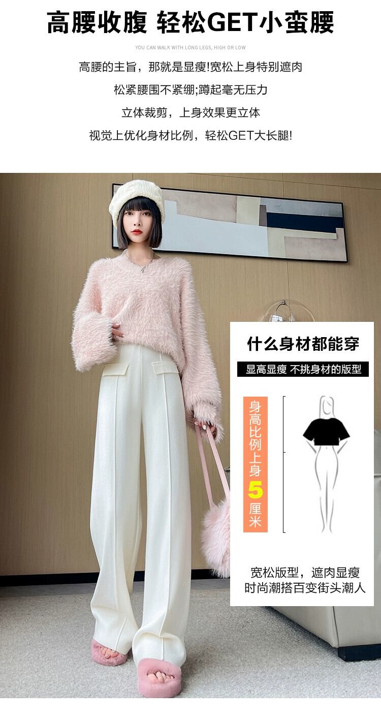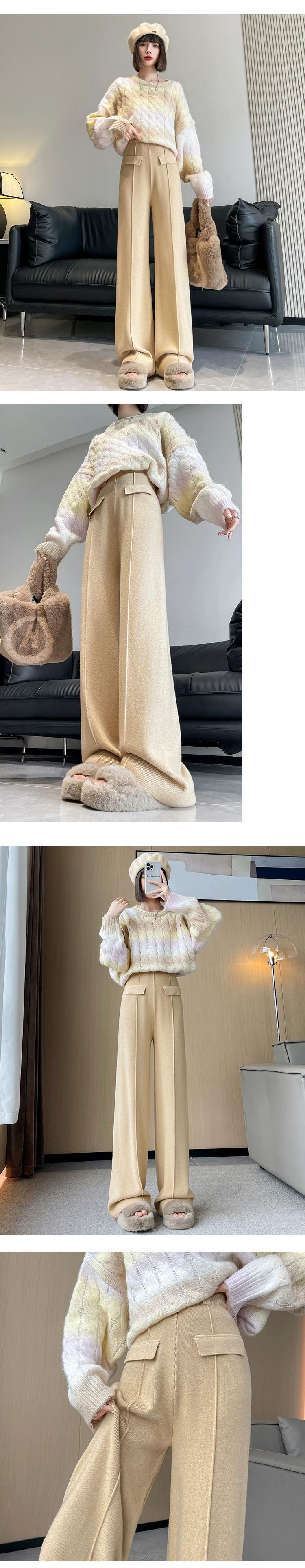 秋冬のソフトカシミアニットワイドレッグパンツレディース、レイジーホワイトソフトワックステリーパンツ、ハイウエストストレートカジュアルパンツ ウィンター 冬物 7460046775572906 | framboise21