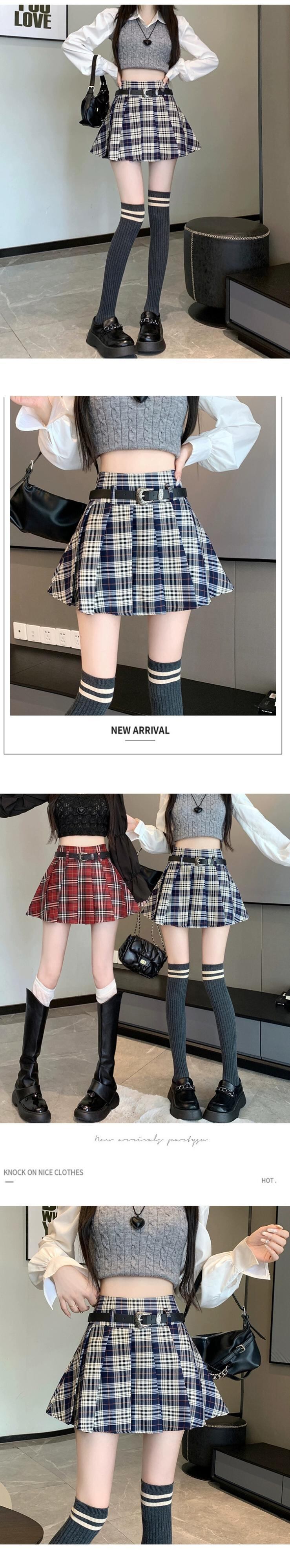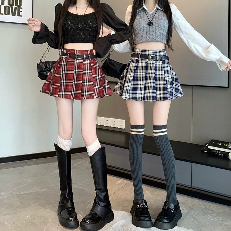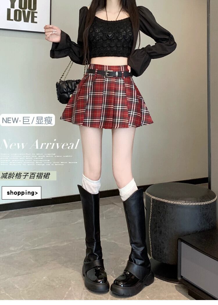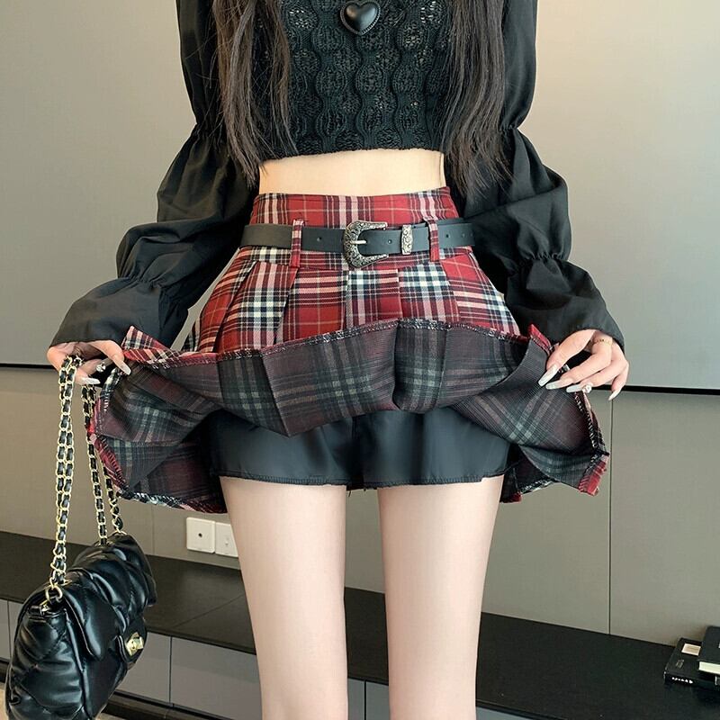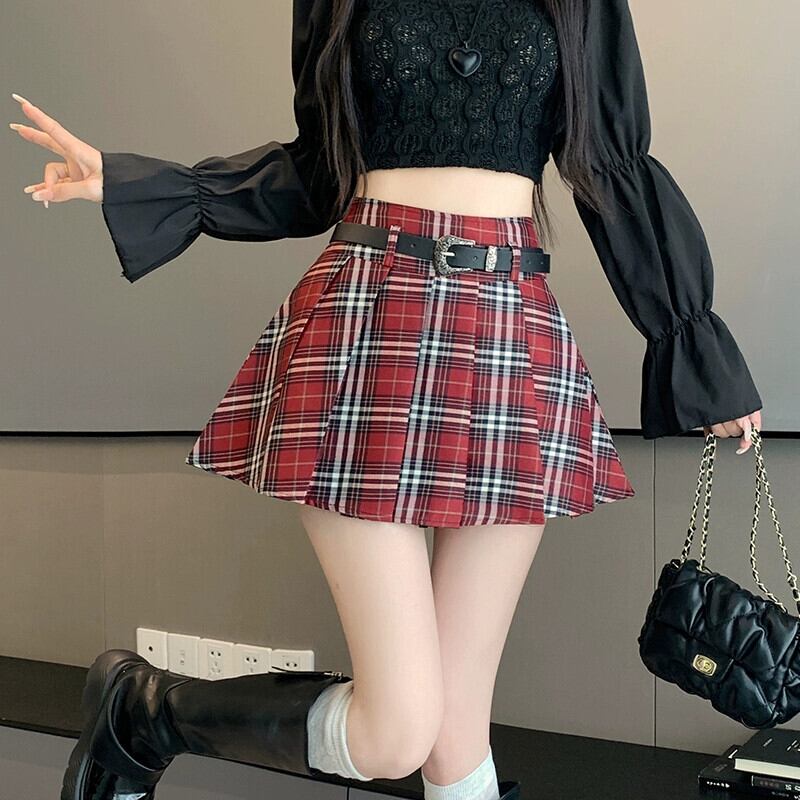アメリカのチェック柄のスカートの女性の秋と冬の新しいハイウエストプリーツスカート痩身多目的露出防止 A ラインスカート オータム 秋物 ウィンター 冬物 Aライン 7460058610198077 | framboise21