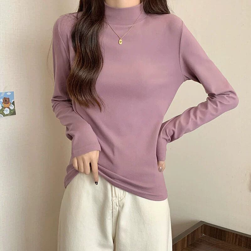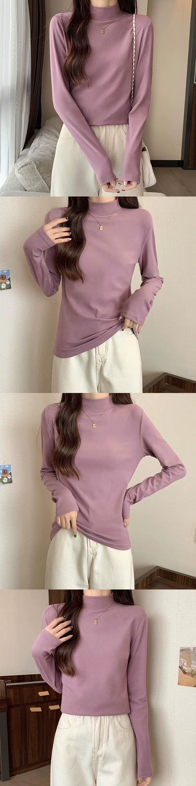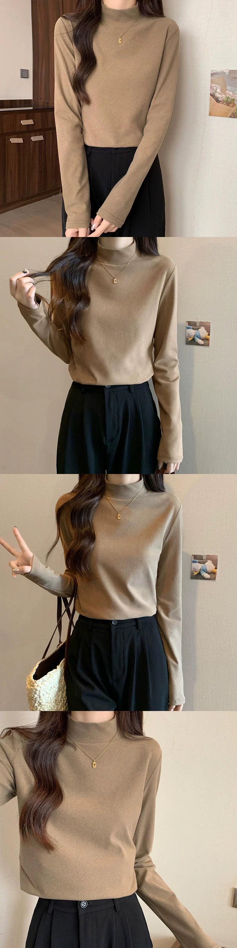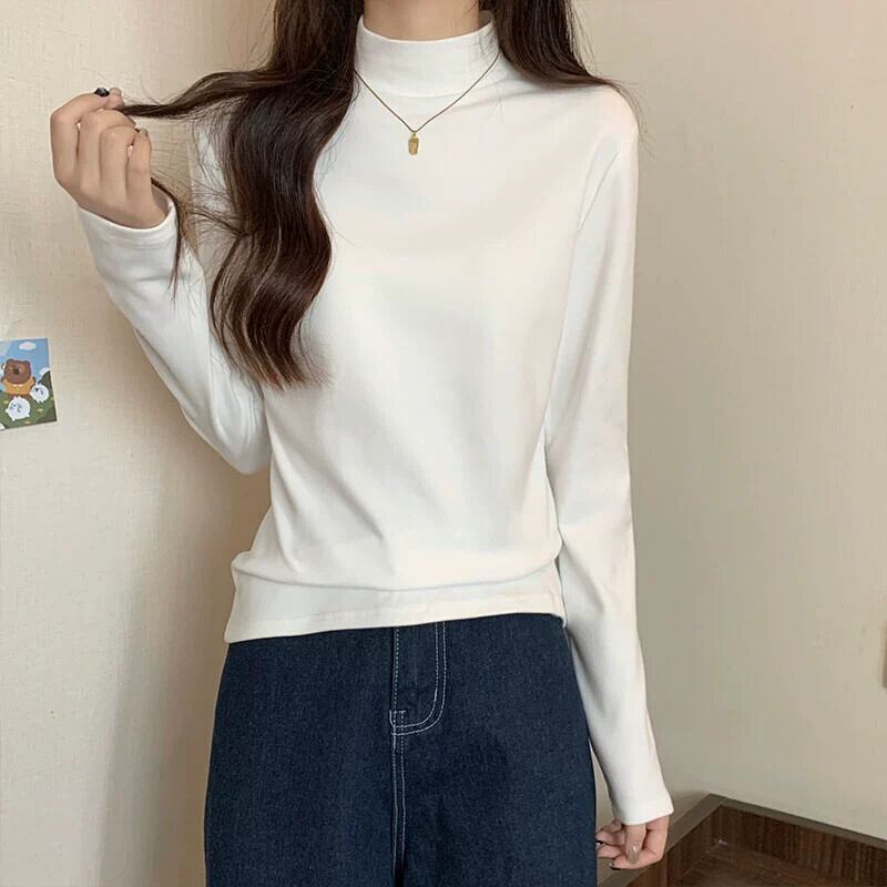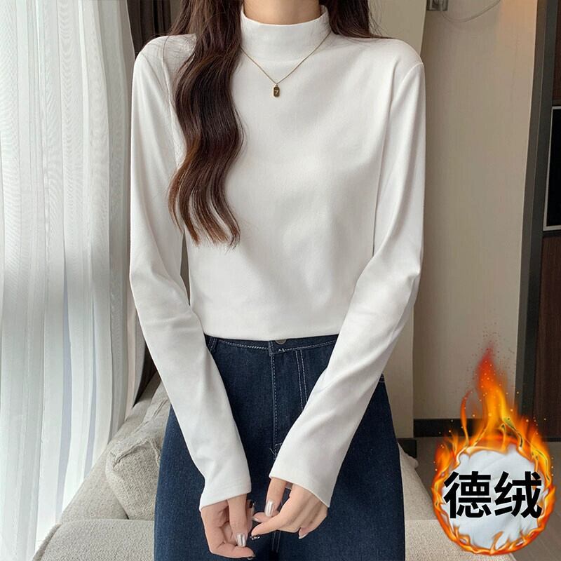 ハーフタートルネックドイツベルベットボトムシャツレディース、秋と冬のファッショナブルな長袖Tシャツ、ゆったり、ファッショナブルで多用途、コートインナートップ、ホワイト ロング オータム 秋物 ウィンター 冬物 7460084149466536 | framboise21