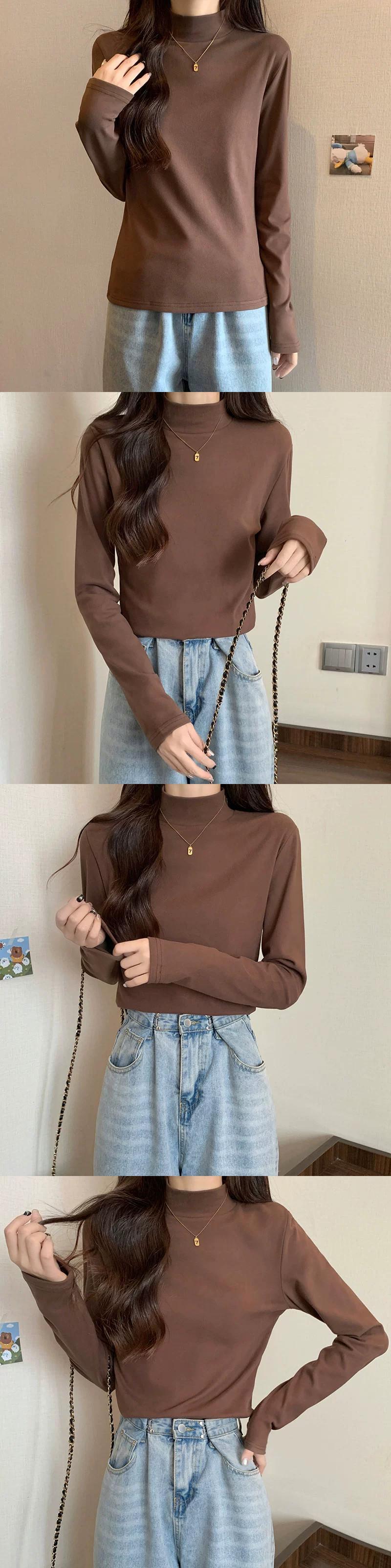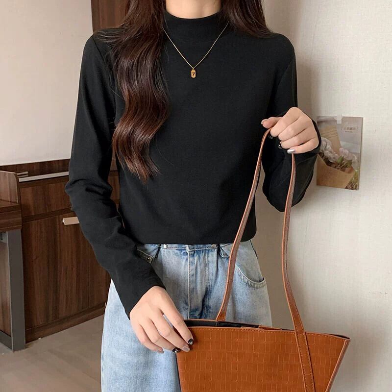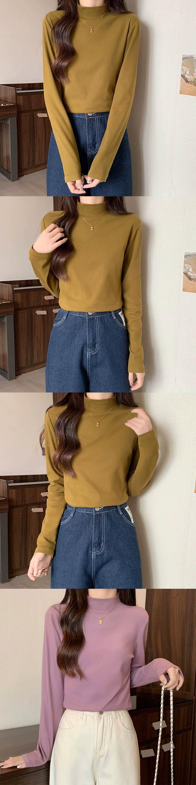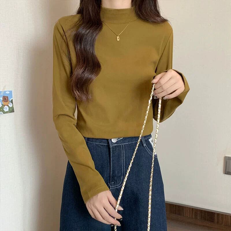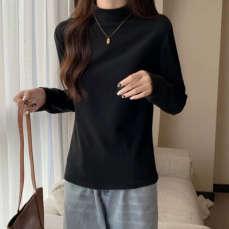 ハーフタートルネックドイツベルベットボトムシャツレディース、秋と冬のファッショナブルな長袖Tシャツ、ゆったり、ファッショナブルで多用途、コートインナートップ、ホワイト ロング オータム 秋物 ウィンター 冬物 7460084149466536 | framboise21