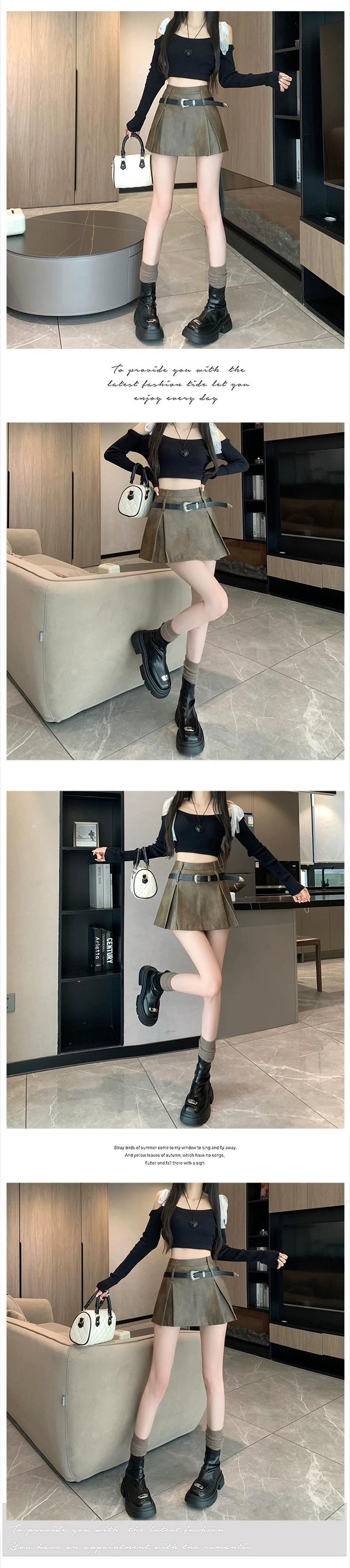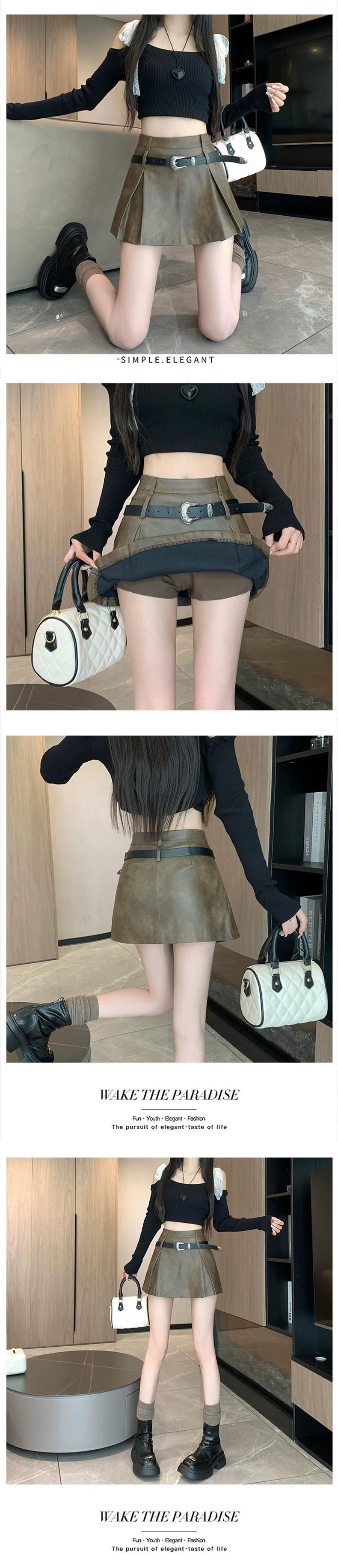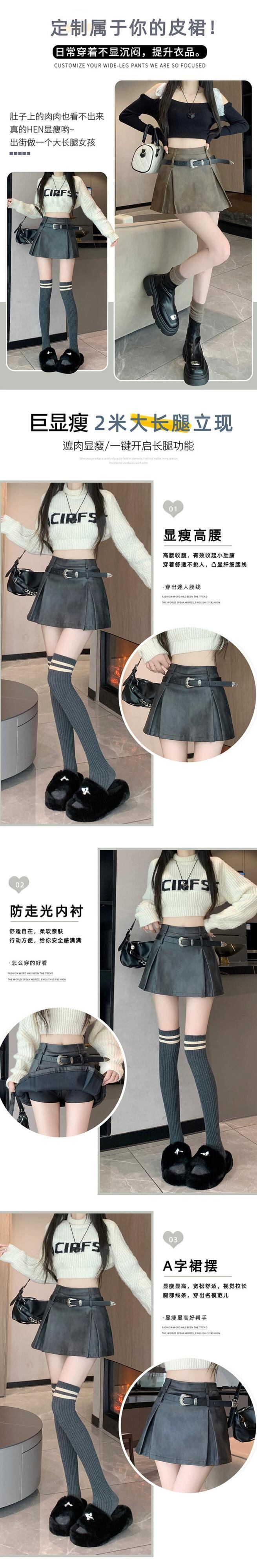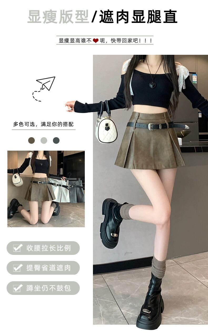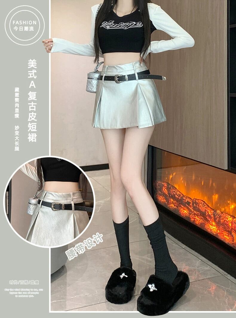 ブラックホットガール Pu レザーショートスカート女性の 2023 秋と冬のウエストスリム多用途露出防止 A ラインスカート オータム 秋物 ウィンター 冬物 Aライン 7460070517171852 | framboise21