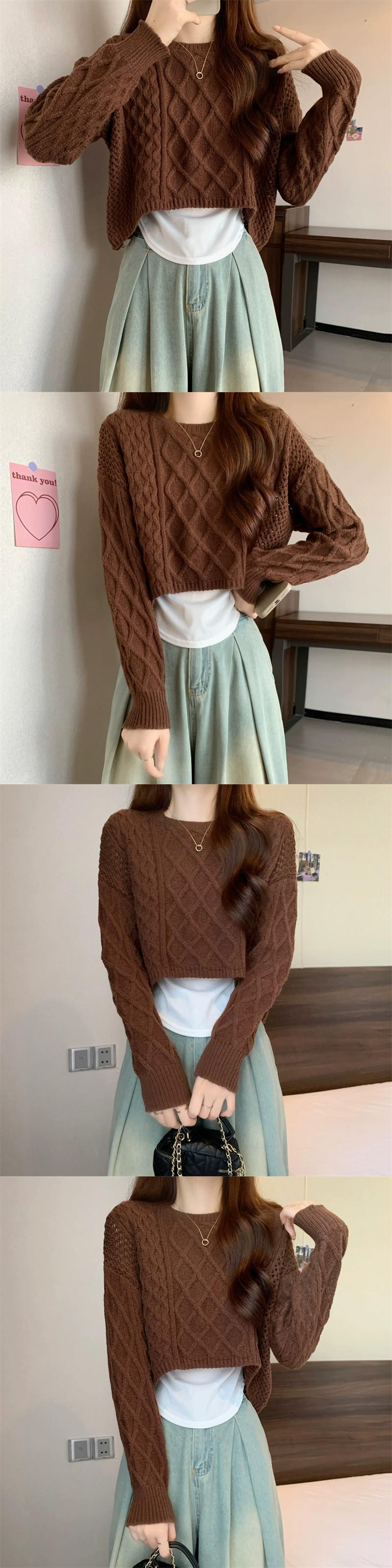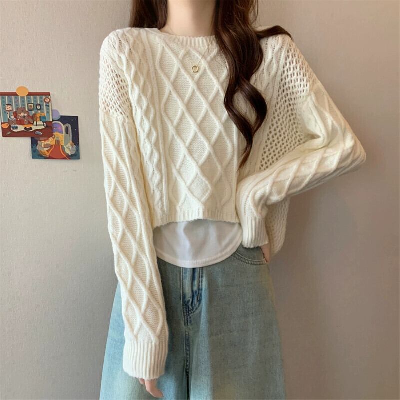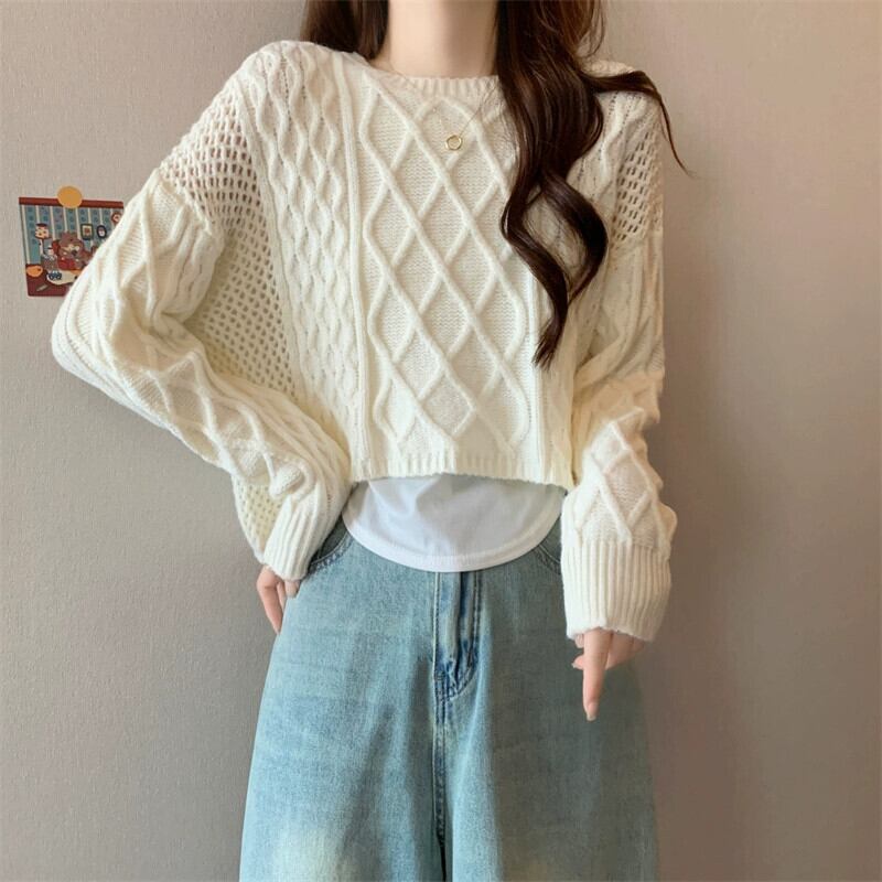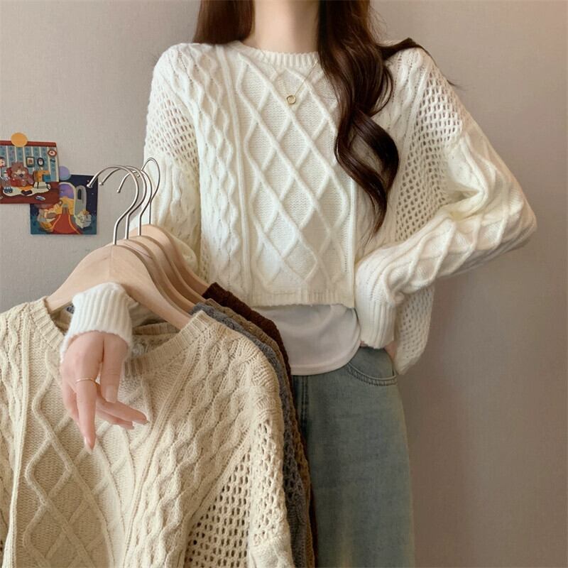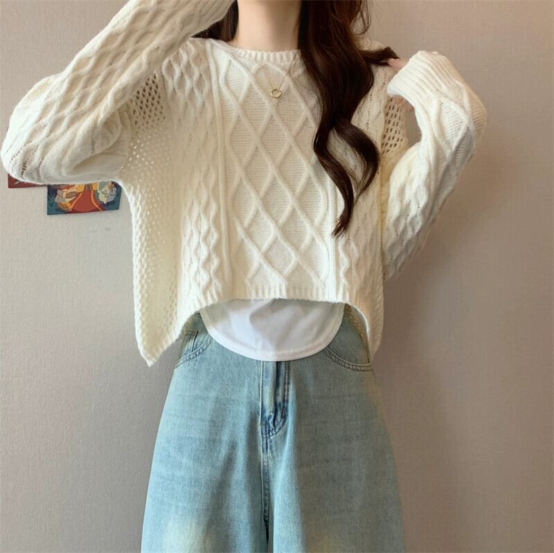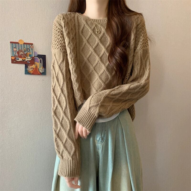小さなアプリコットショートツイストセーター女性の秋と冬のフランスのルーズなアウターウェア怠惰なスタイルの中空長袖セーター ロング オータム 秋物 ウィンター 冬物 746009902917680 | framboise21