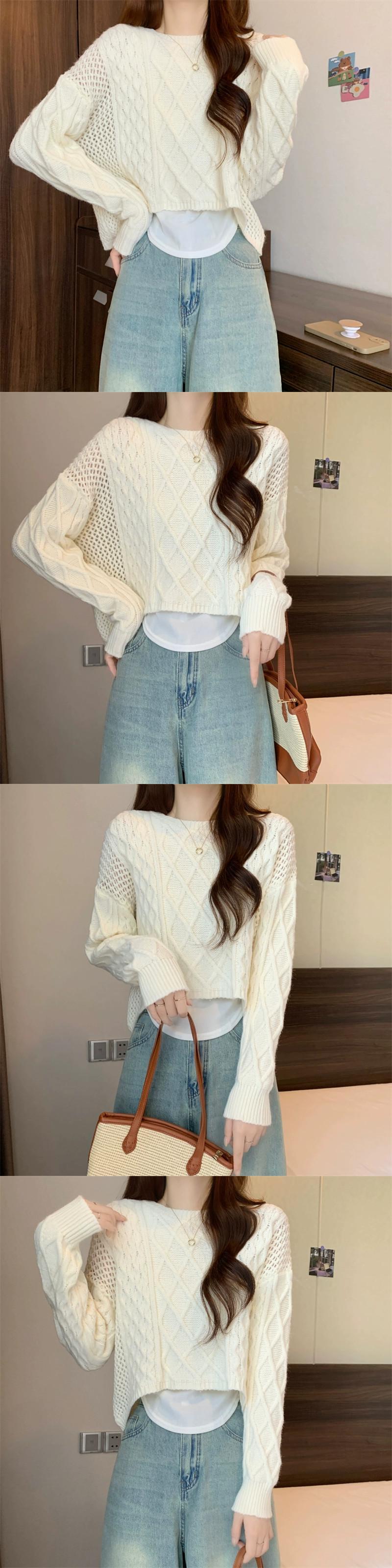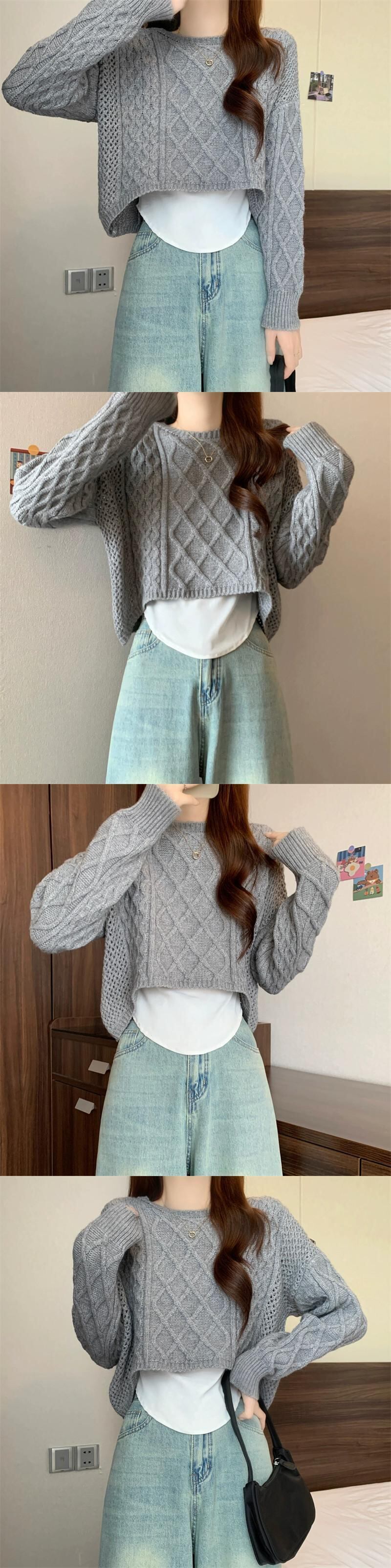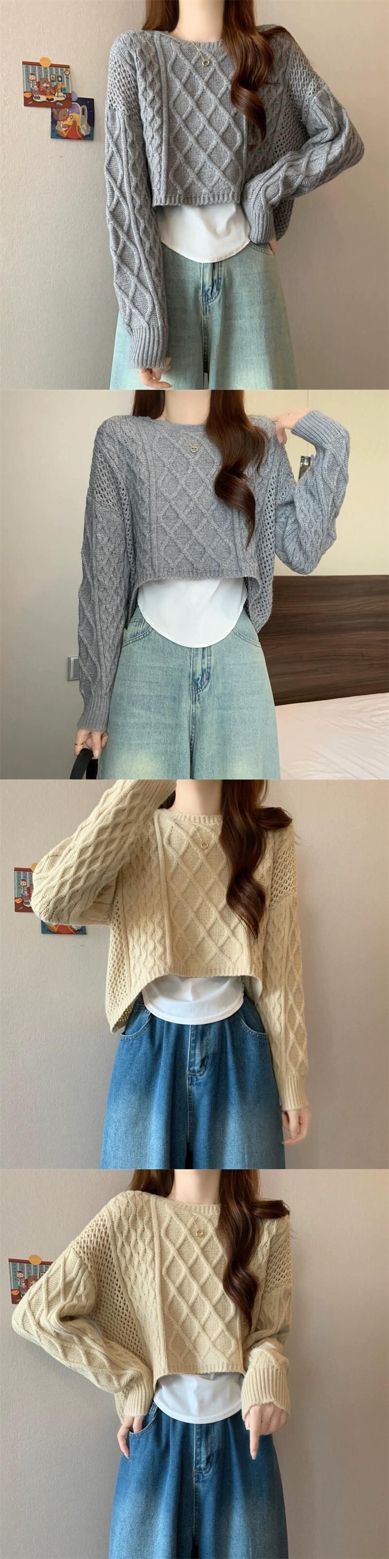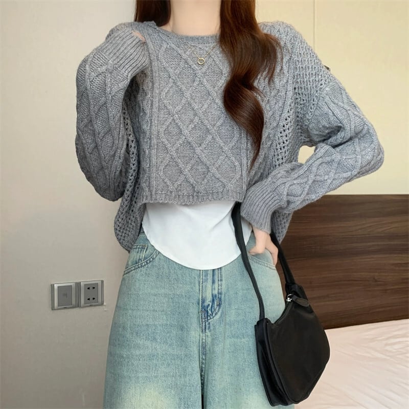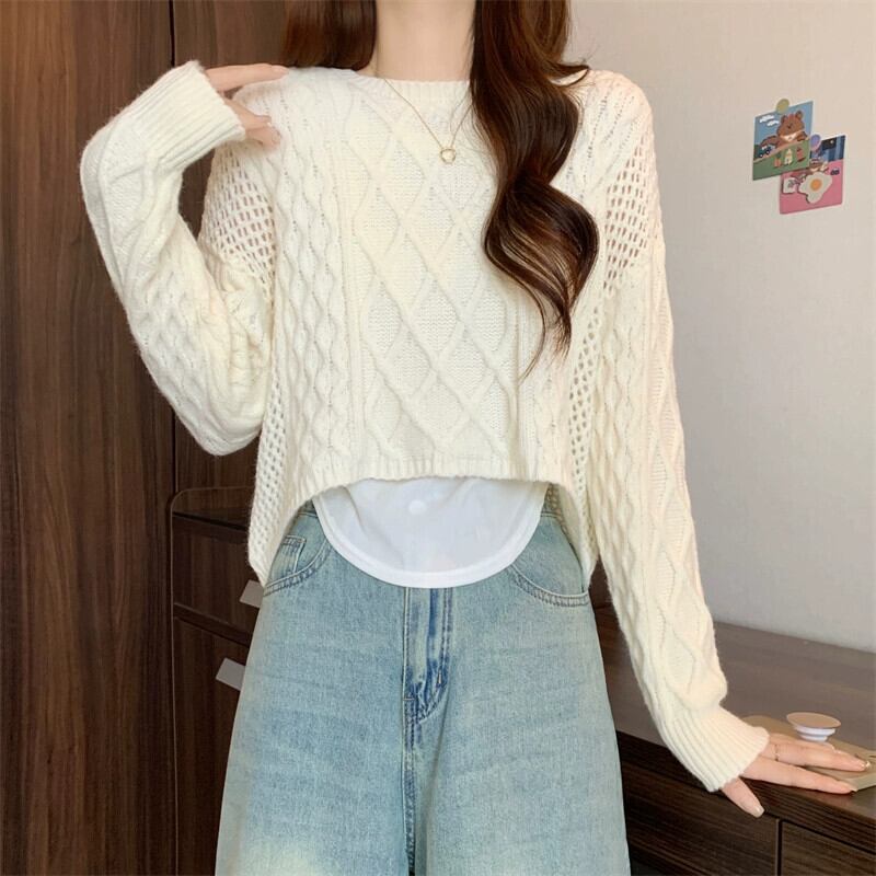 小さなアプリコットショートツイストセーター女性の秋と冬のフランスのルーズなアウターウェア怠惰なスタイルの中空長袖セーター ロング オータム 秋物 ウィンター 冬物 746009902917680 | framboise21