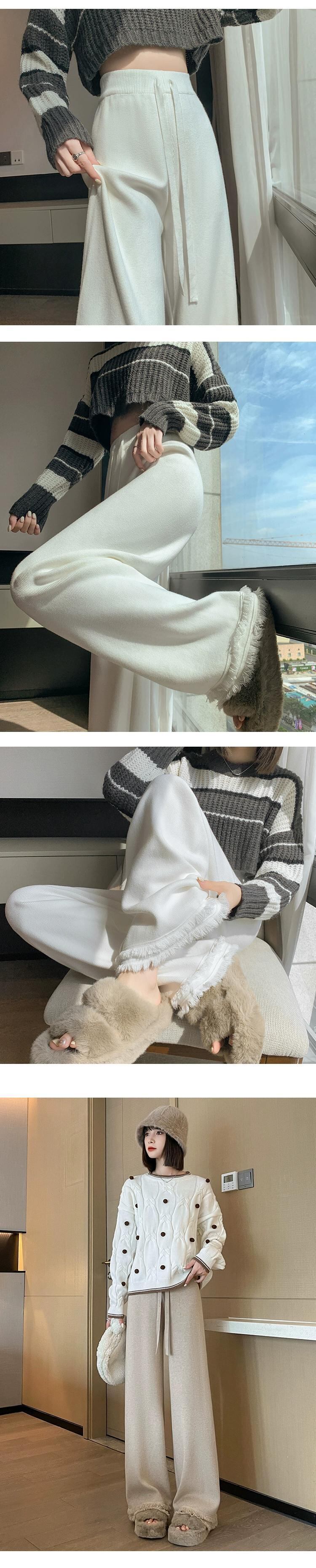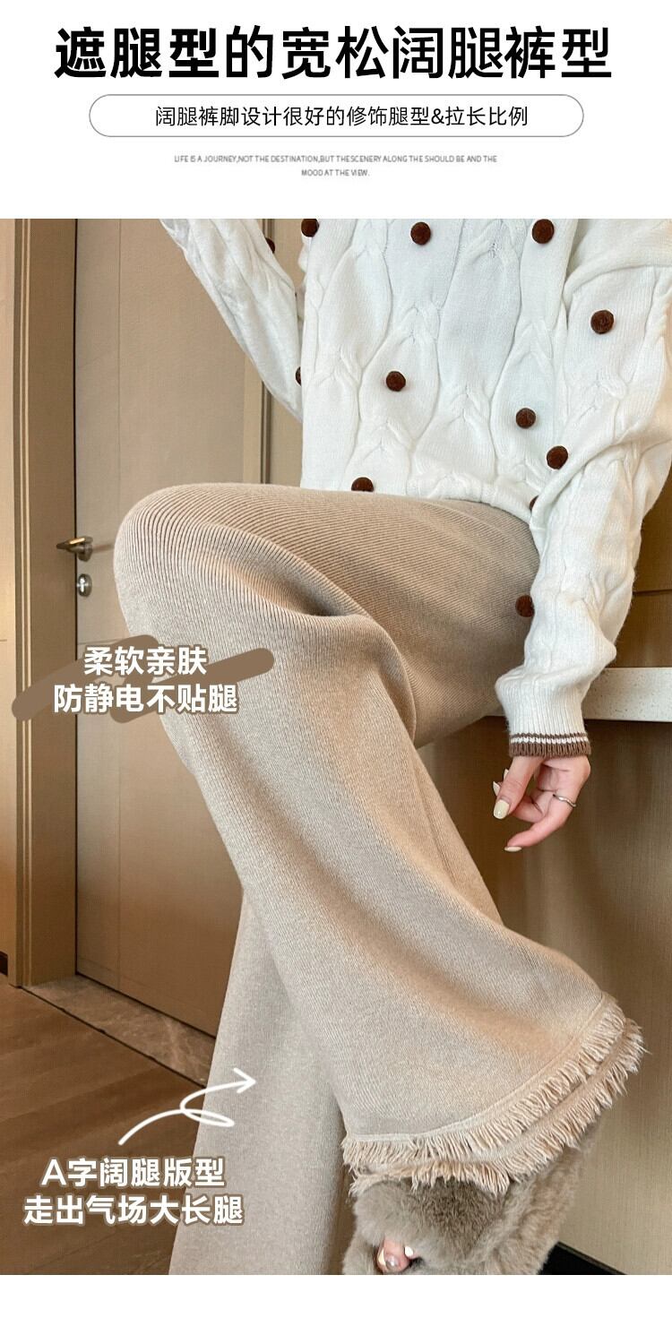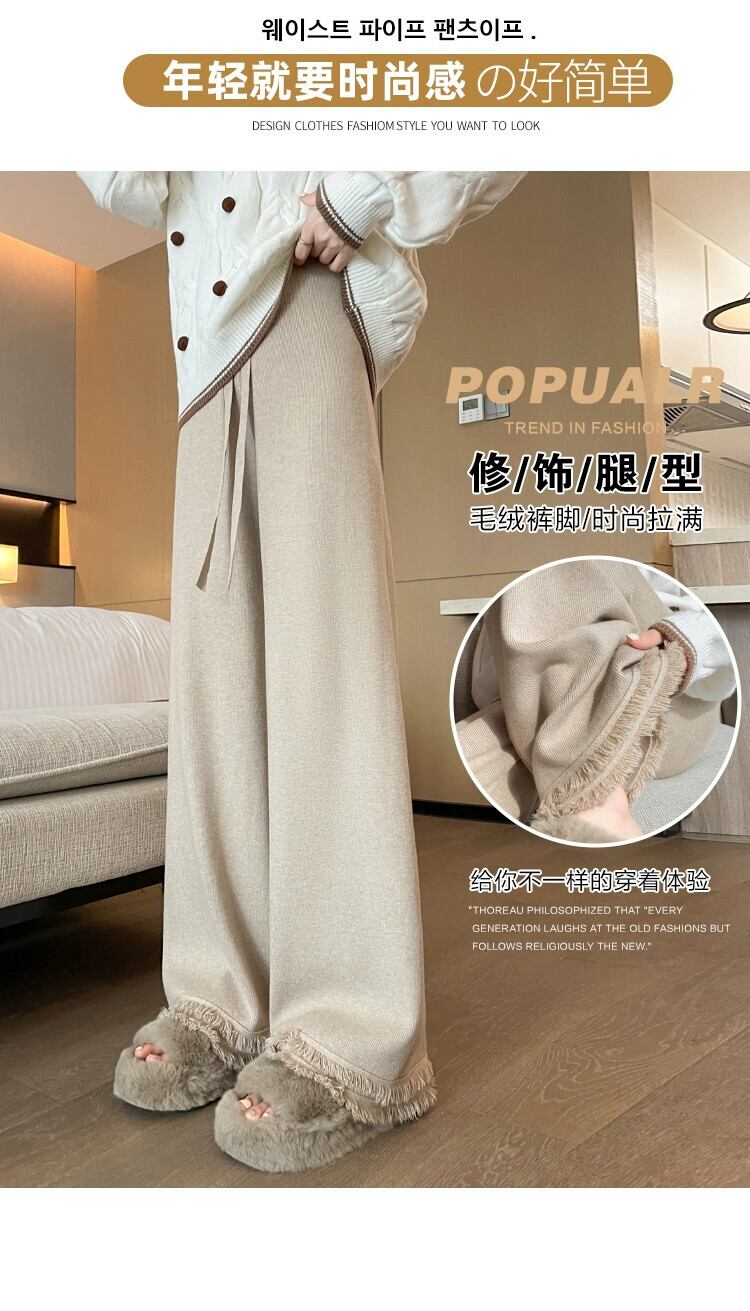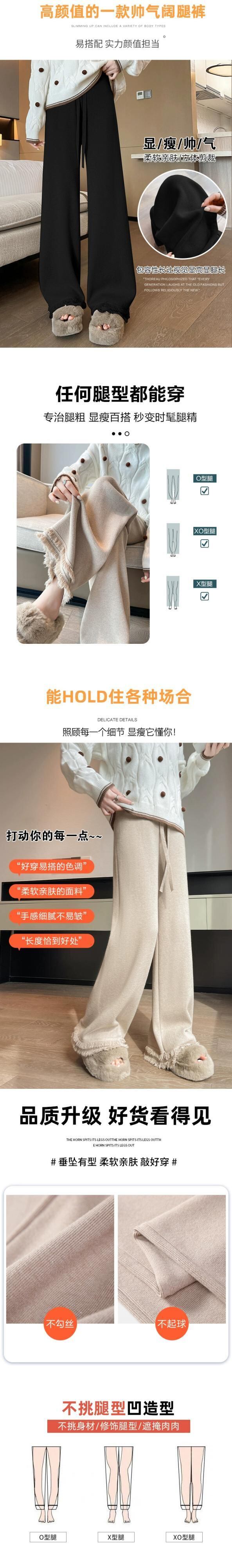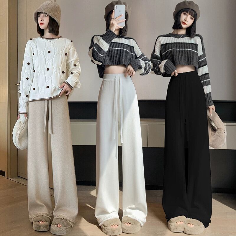 秋と冬の白いテルニットワイドレッグパンツの女性、怠惰なスタイル、柔らかいワックスタオルパンツ、ハイウエストストレートカジュアルもち米パンツ ホワイト オータム 秋物 ウィンター 冬物 7460058676220391 | framboise21