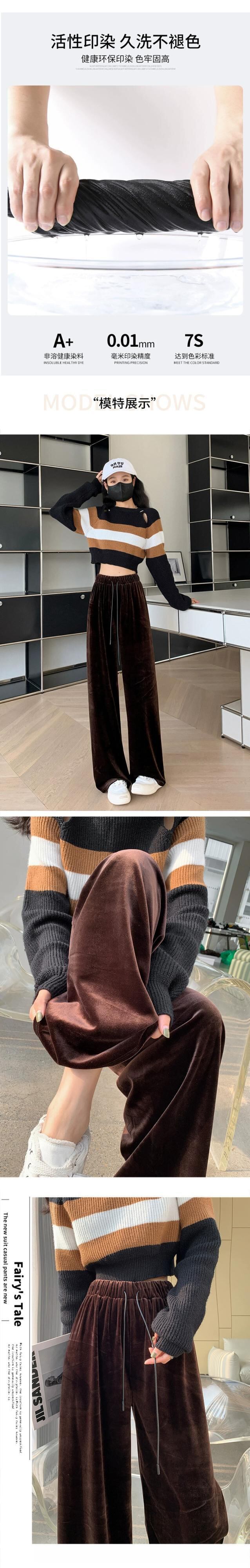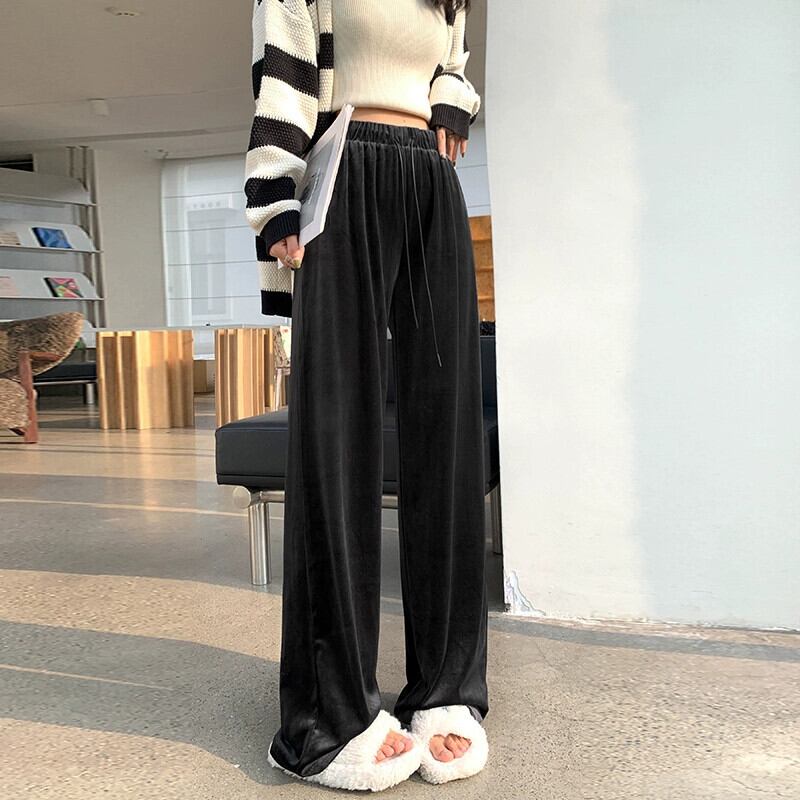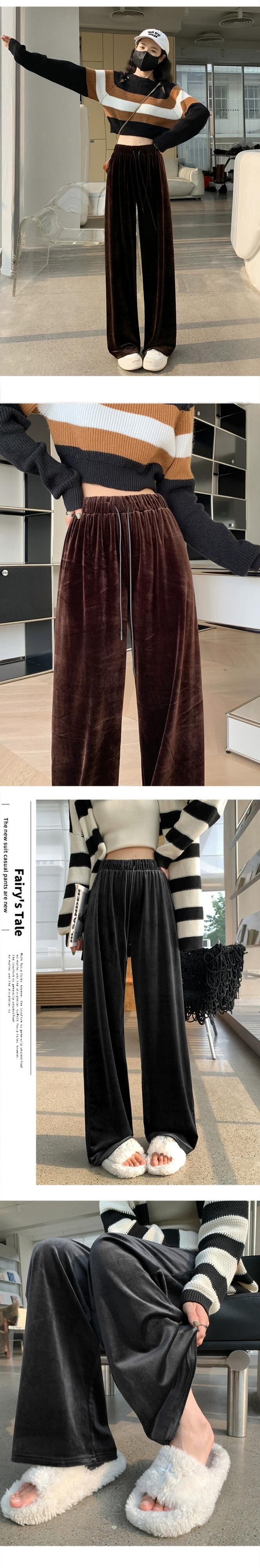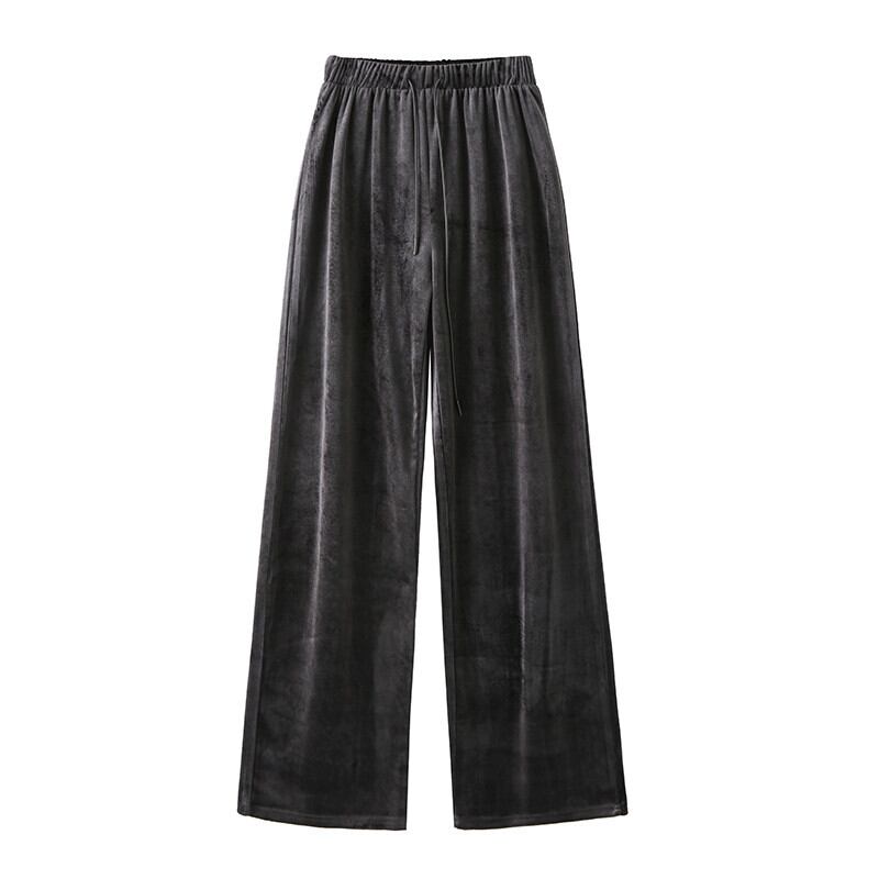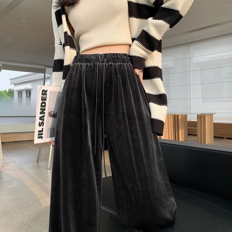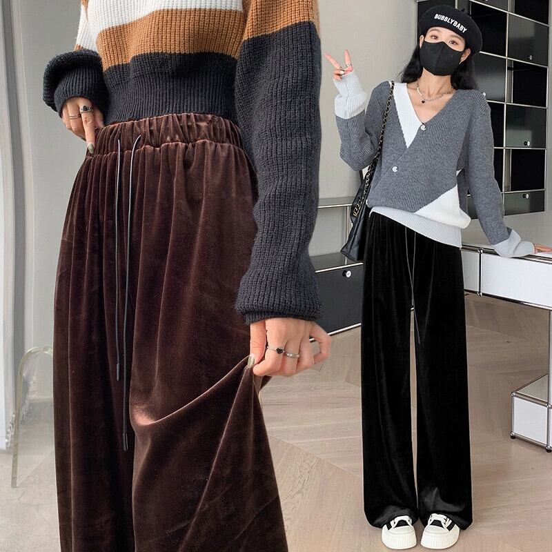 厚みのあるゴールドベルベットのワイドレッグパンツの女性の秋冬 2023 新しいルーズでスリムなナローバージョンハイウエストストレートカジュアルパンツ オータム 秋物 ウィンター 冬物 746003189406191 | framboise21