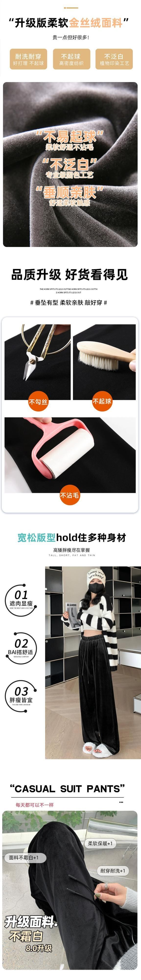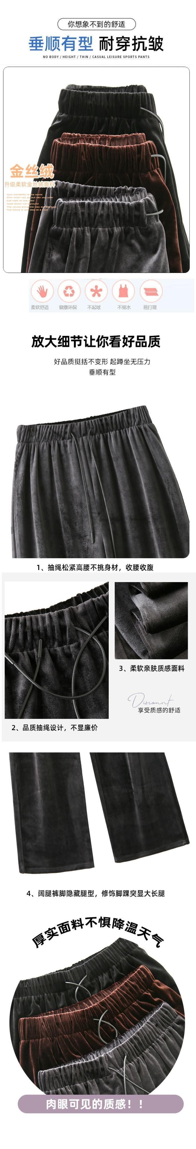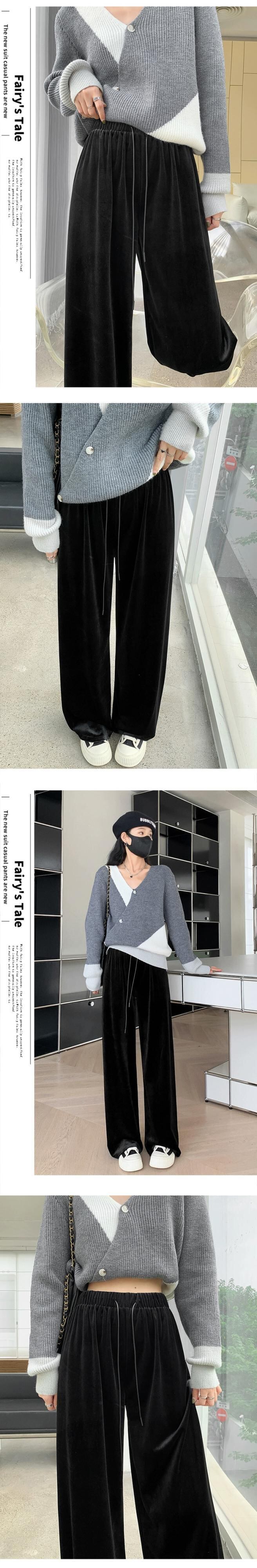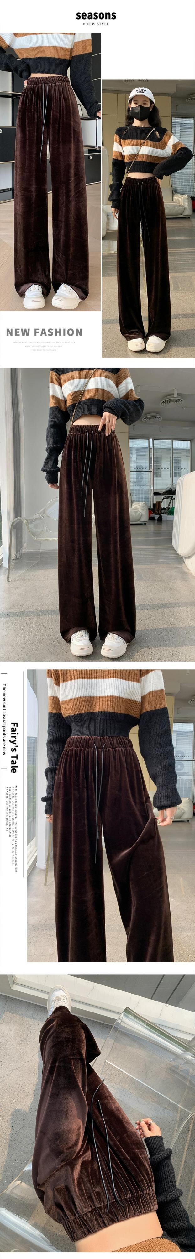 厚みのあるゴールドベルベットのワイドレッグパンツの女性の秋冬 2023 新しいルーズでスリムなナローバージョンハイウエストストレートカジュアルパンツ オータム 秋物 ウィンター 冬物 746003189406191 | framboise21