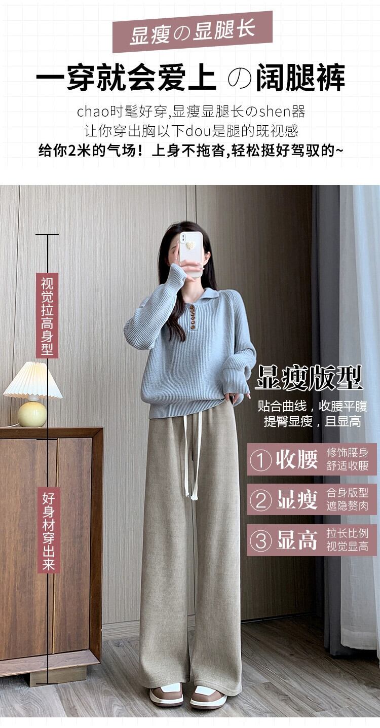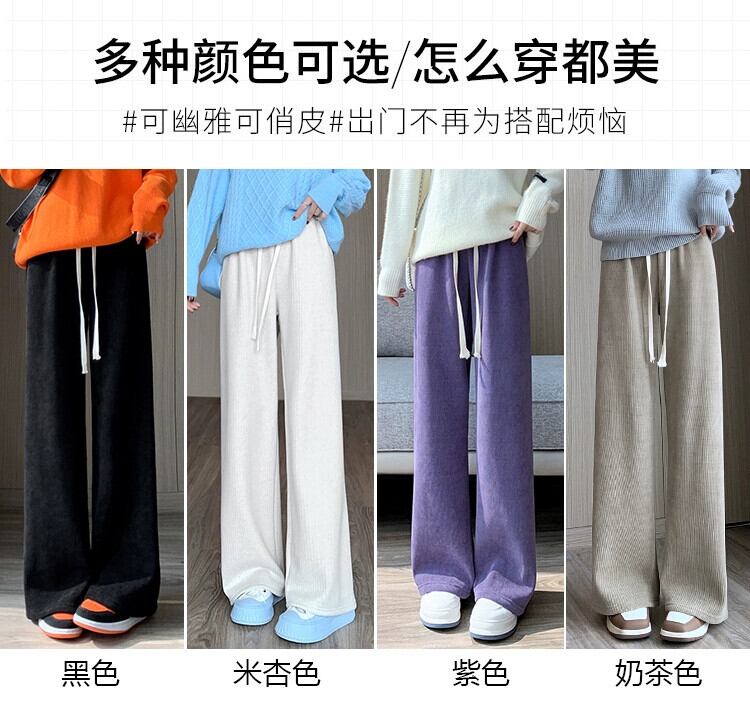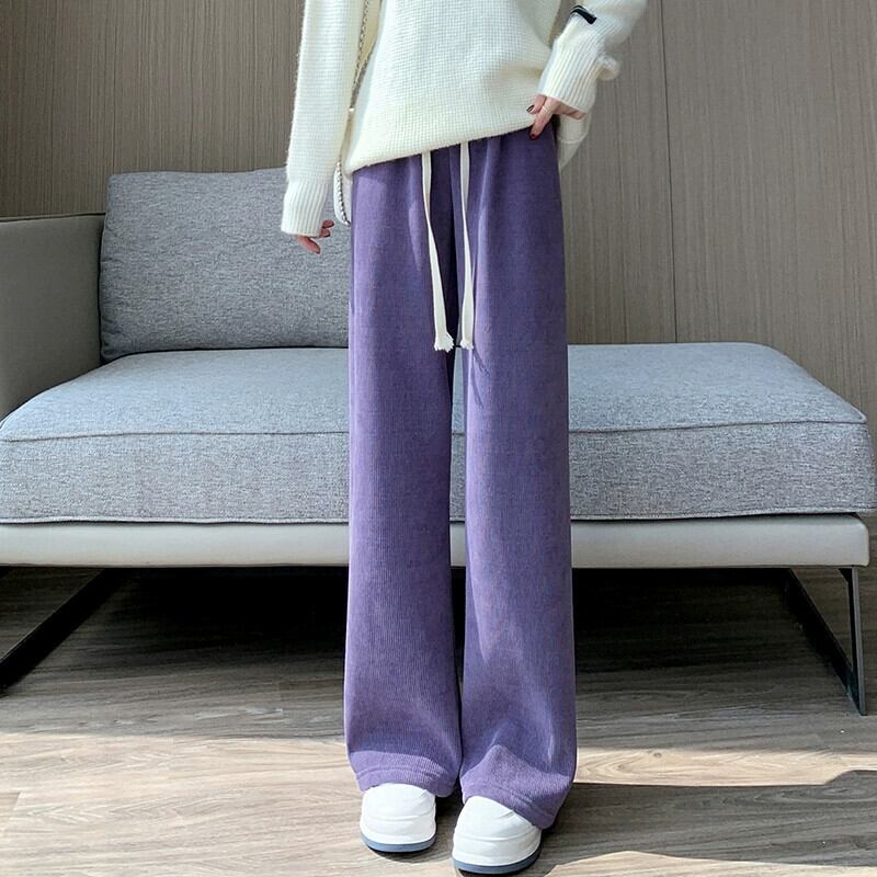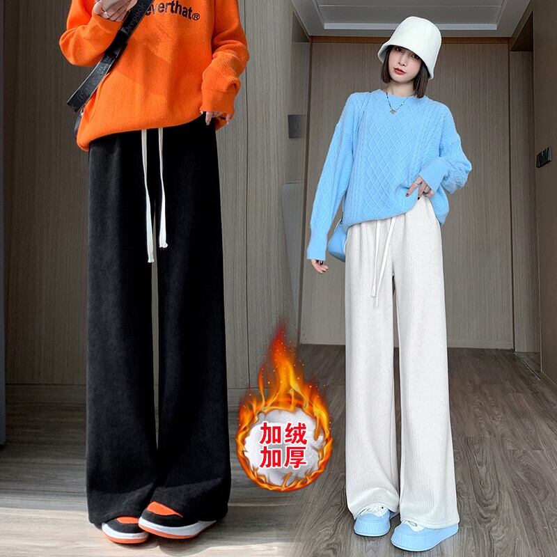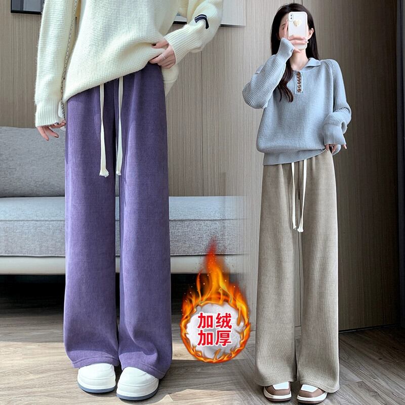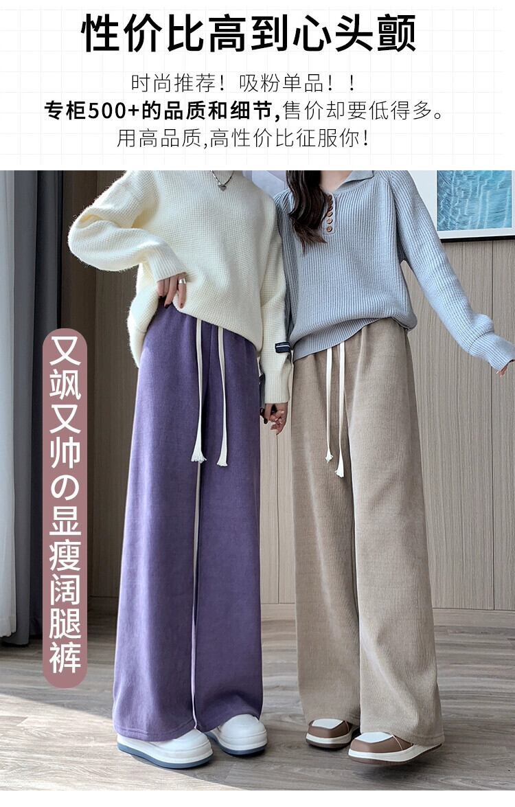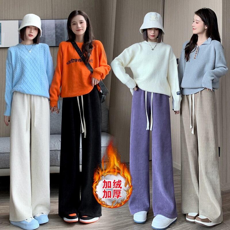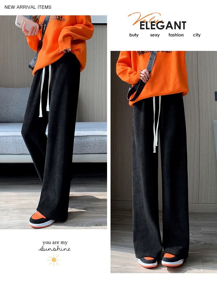 シェニールプラスベルベットワイドレッグパンツ女性の秋と冬の肥厚コーデュロイパンツハイウエスト痩身ストレートカジュアルパンツ オータム 秋物 ウィンター 冬物 7460084737379643 | framboise21